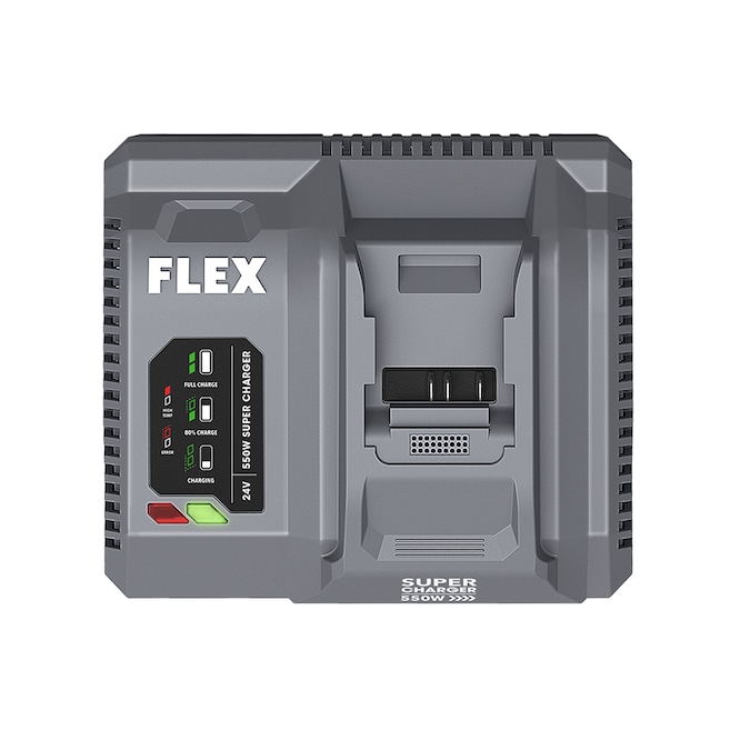 The FLEX 24V Super Charger is lightning fast, because there’s no time for downtime. It charges up to 100% faster than the competition, providing 2.5 hours of power in just 15 minutes. It takes powering up to the next level with a built-in intelligent processor, the only dual fan cooling in the industry and more wattage than a standard charger. Protected by the FLEX Limited Lifetime Warranty when registered within 30 days of purchase at registermyFLEX.com through December 31, 2024.