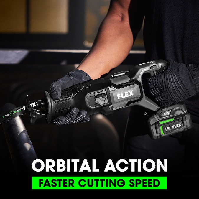 No demo is too tough for the FLEX 24V Reciprocating Saw. This saw features fast, orbital cutting action and delivers more cuts per charge. Vibration suppression reduces fatigue. Switch blades on-the-fly with quick and easy, keyless blade eject. Built-in LED lighting illuminates your site. All this comes with the FLEX Advantage of unmatched 24V battery power, runtime, and faster charging (battery and charger sold separately). Protected by the FLEX Limited Lifetime Warranty when registered within 30 days of purchase at registermyFLEX.com through December 31, 2024.