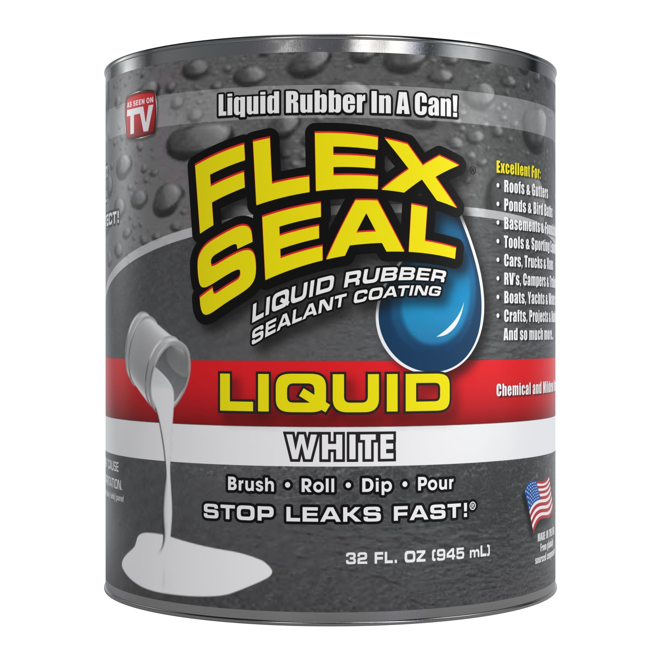 Flex Seal White Aerosol 14 oz & 32 oz White Liquid Rubber Sealant