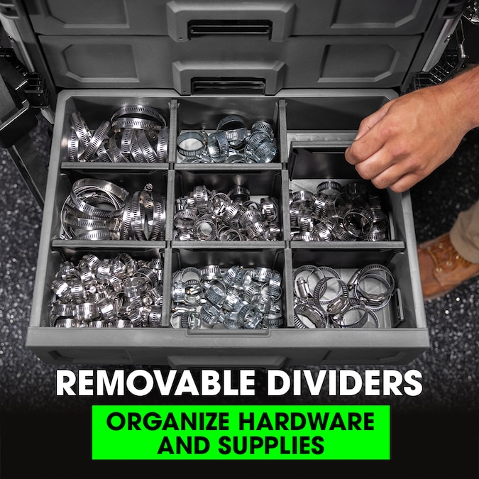 - REMOVABLE DIVIDERS – Organize a variety of hardware or supplies with included removable dividers in each drawer to customize your configuration