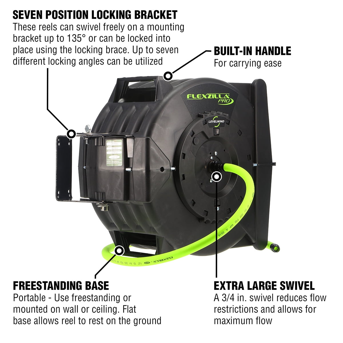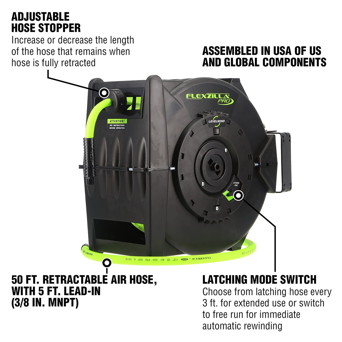 Flexzilla® Pro Retractable Air Hose Reel with Levelwind™ Technology, 1/2″ x 50′, ZillaGreen™