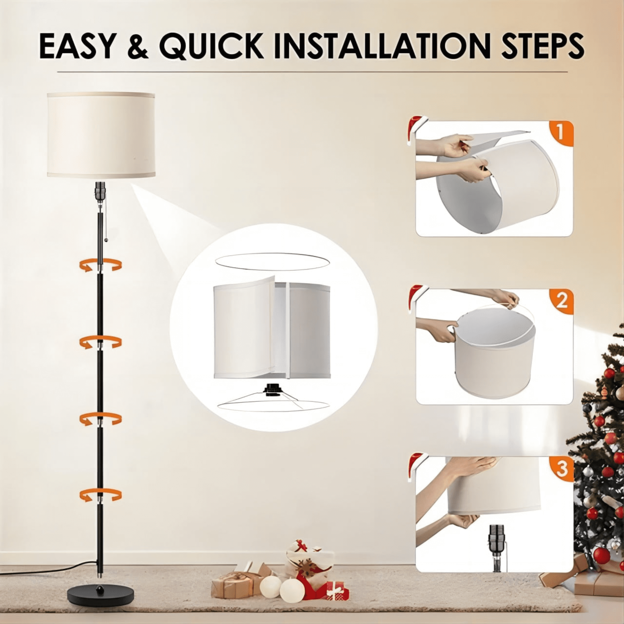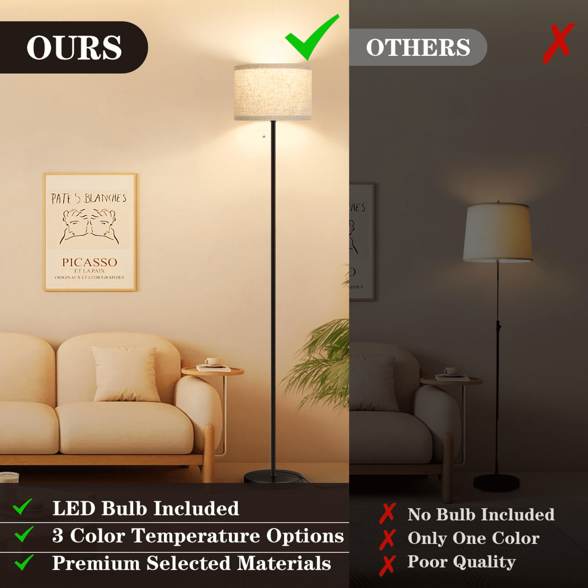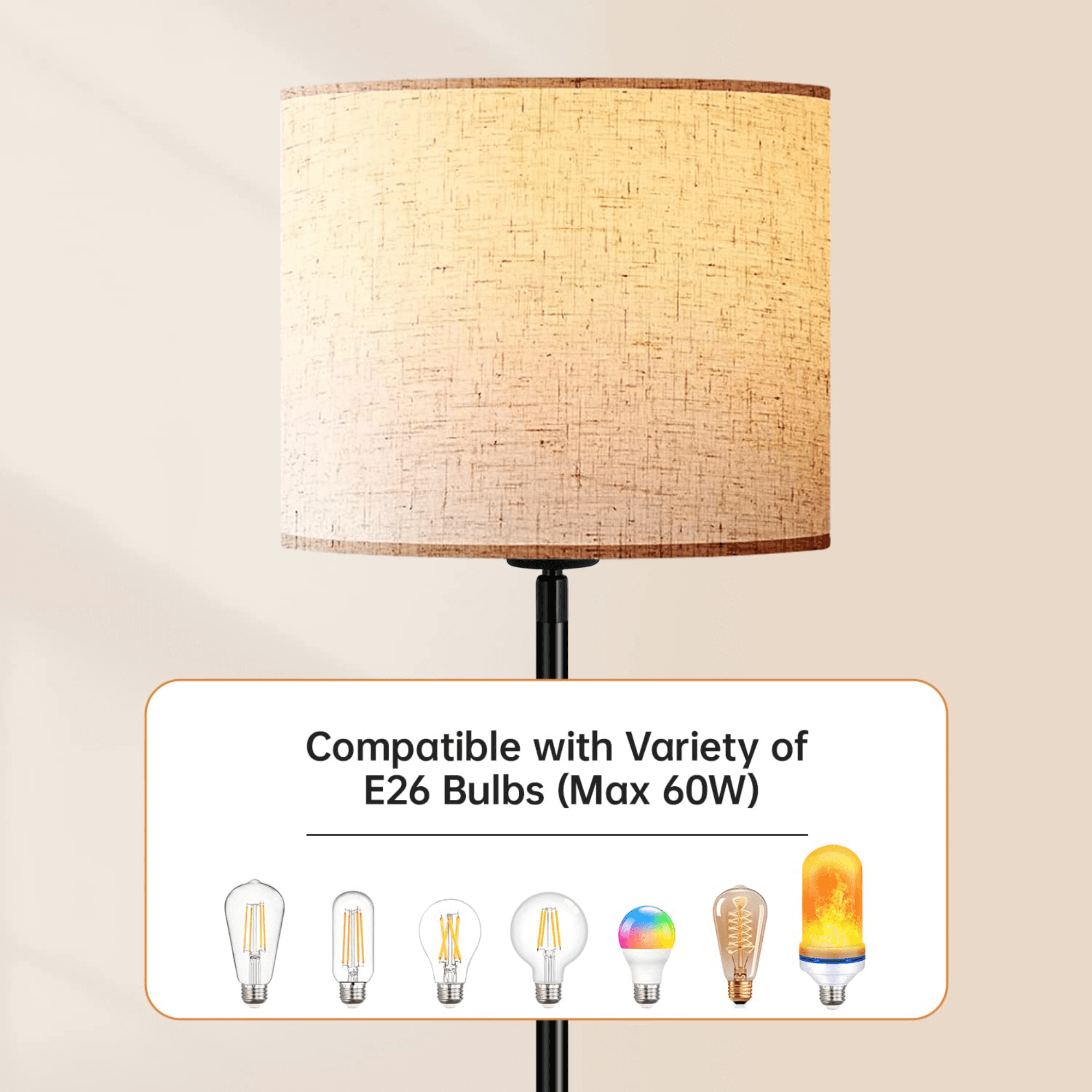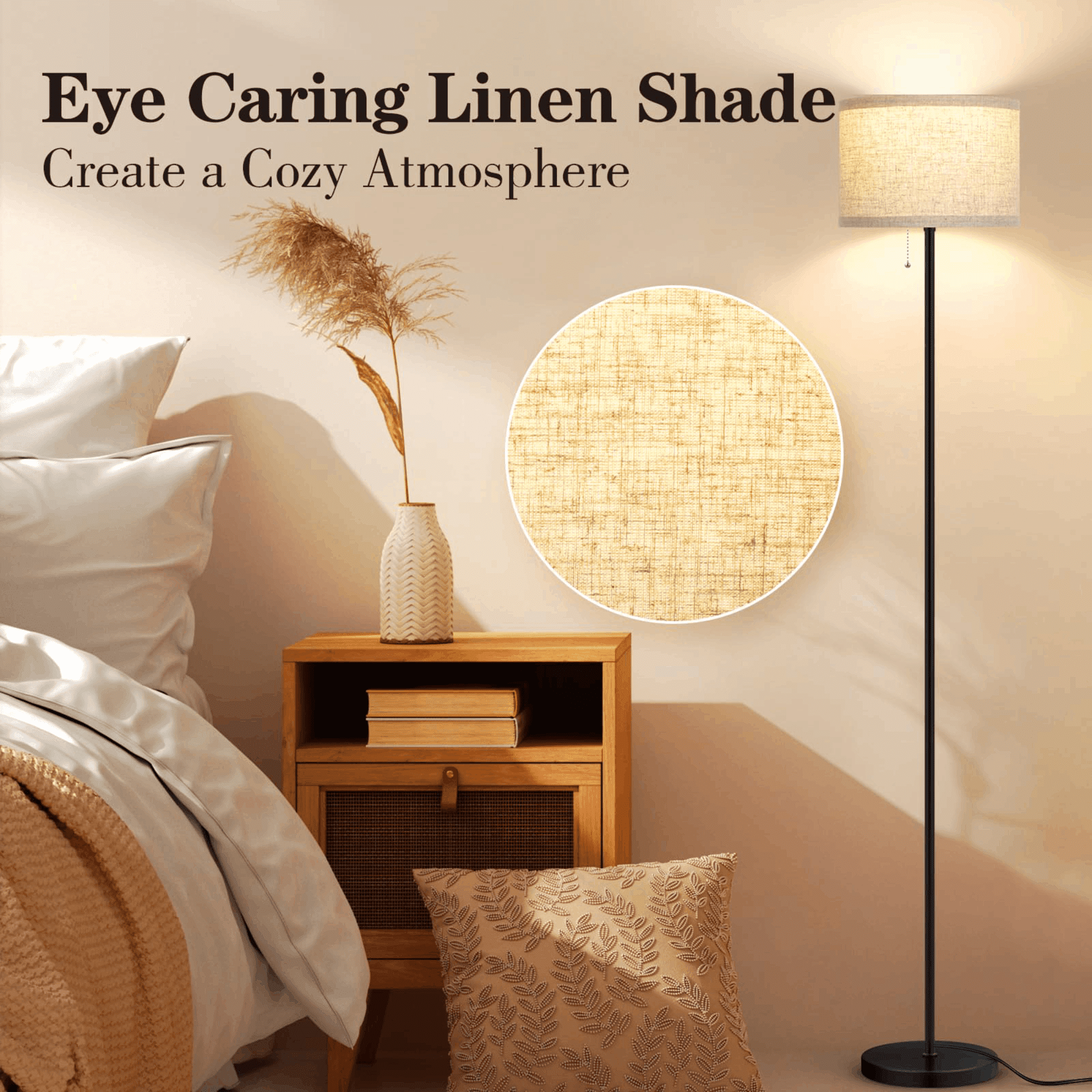 Modern Simple Design & Wide Application: Our floor lamp features a minimalist design and is accompanied by an elegant linen lampshade, providing you with the desired soft and warm lighting. Its simple yet elegant design allows it to seamlessly blend into various decorative styles. Floor Lamps with Pull Chain Design: Our bedroom floor lamp is equipped with a convenient pull chain switch, making it the perfect companion for reading, working, and relaxation. Its unique design is specifically crafted for placement in the living room or bedroom, allowing for easy control of the lighting. 3CCT LED Bulb Included: This standing lamp is equipped with a 15W LED bulb that allows you to choose between 3000k, 4000k, or 5000k color temperatures to meet various lighting needs and personal preferences. There is no need to buy additional bulbs, greatly save your time and money. High-quality Metal Material & Easy to Assemble: Our black pole lamp is made of high-quality metal, ensuring sturdiness, durability, and anti-toppling functionality, providing sufficient safety for you and your family. It also boasts a simple assembly process and comes with a detailed installation manual, allowing you to easily complete the setup. Perfect Gift for Friend & Family: This stand up light not only boasts a minimalist appearance but also features a moderate height that provides an ideal lighting experience. It is suitable as a housewarming gift or a holiday present, adding brightness and warmth to the homes of your family and friends.
