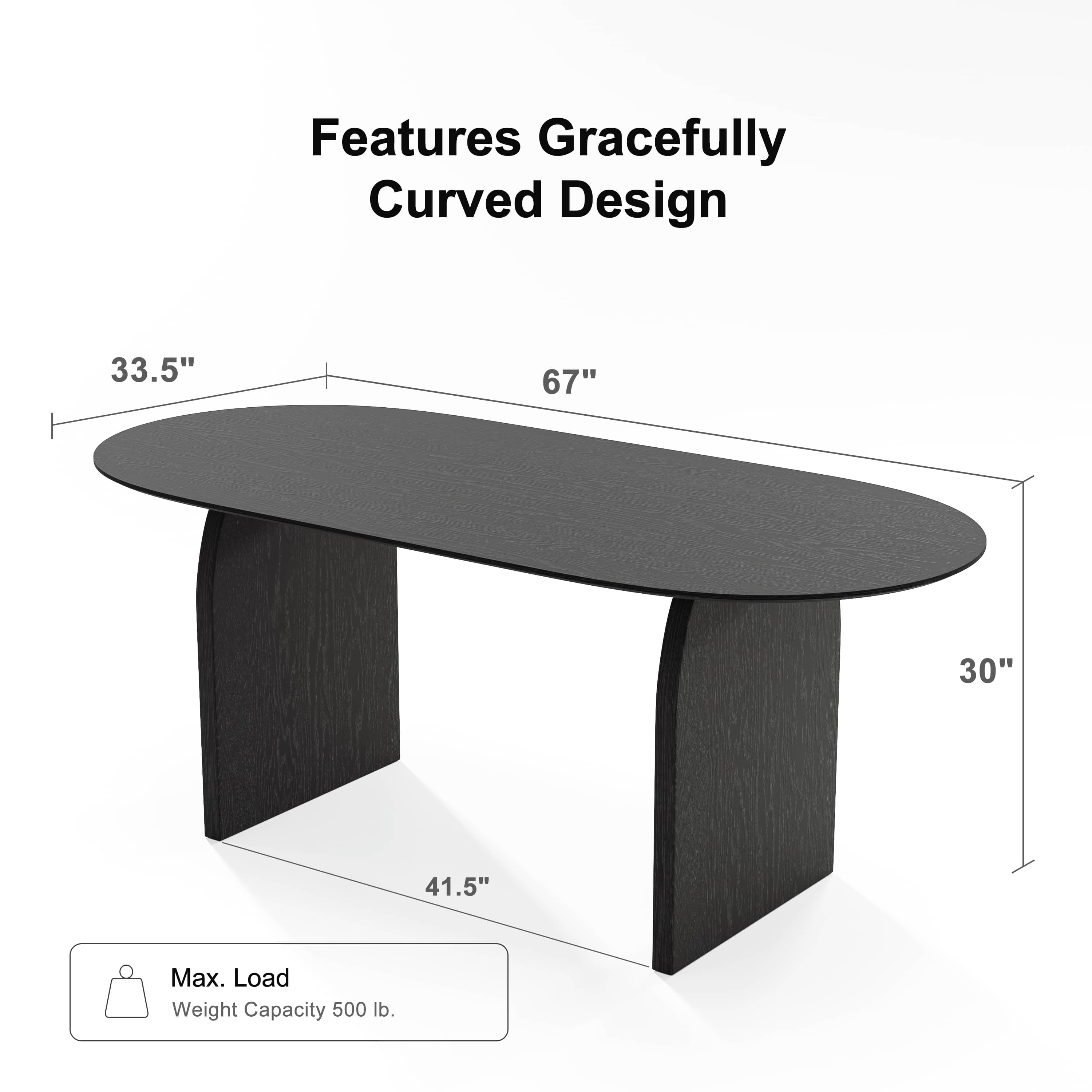 Flora 67″x33.5″ Soild Wood Dining Table Oval Kitchen Table, Black