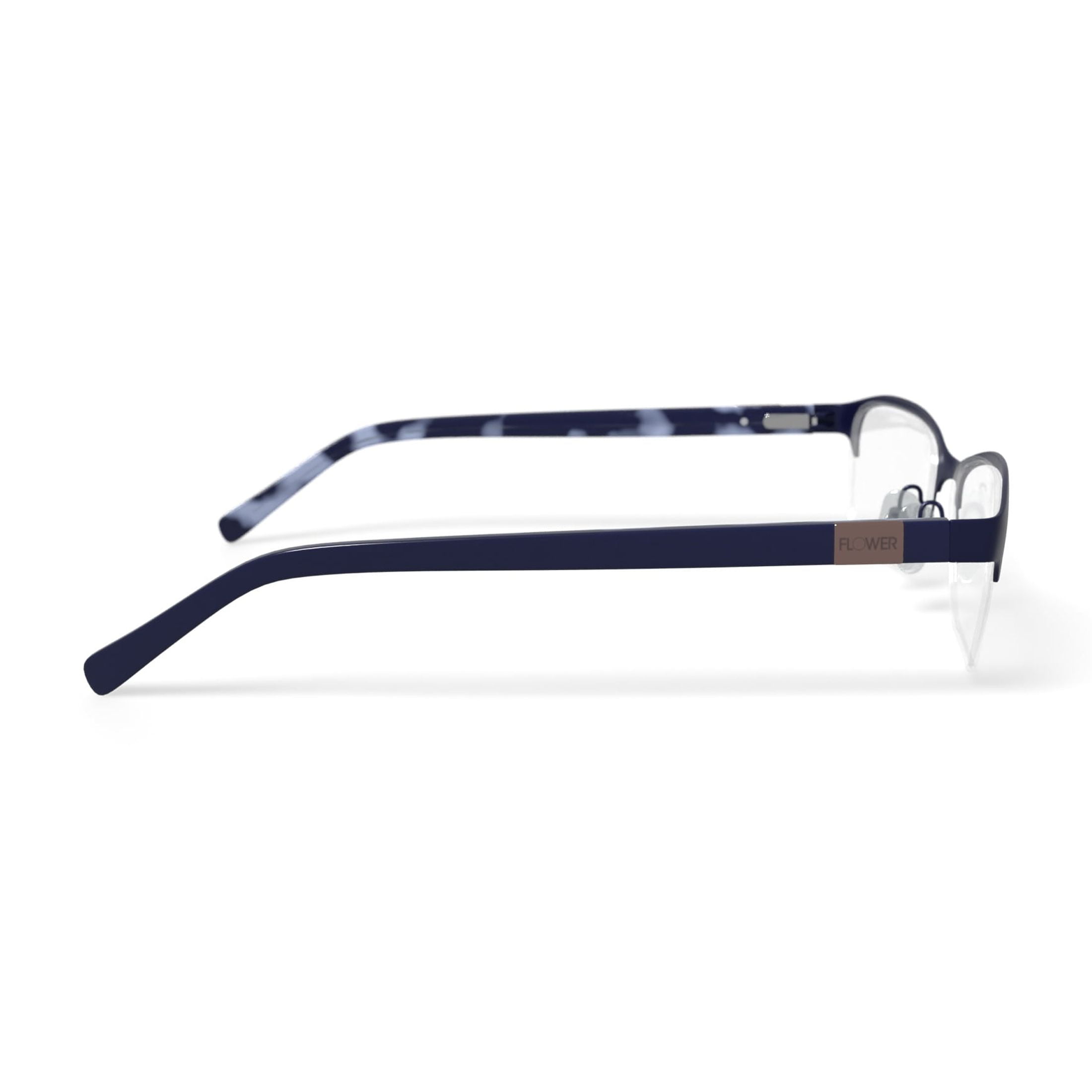 FLR6020 Sally – Navy Includes: Case And Cleaning Cloth Spring Hinge Gender: Women’s Category: Eyeglass Frames Color: Navy Frame Size: 54-17-140 Shape: Rectangle Style: Semi-Rim