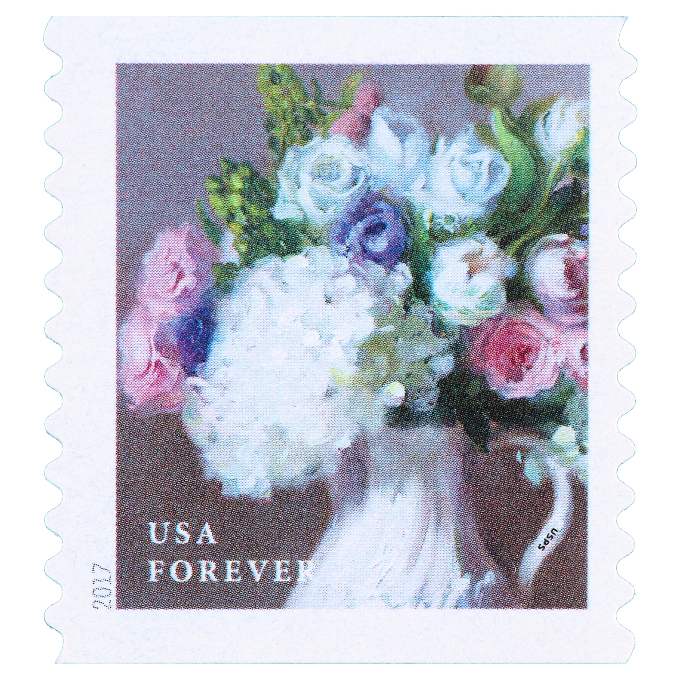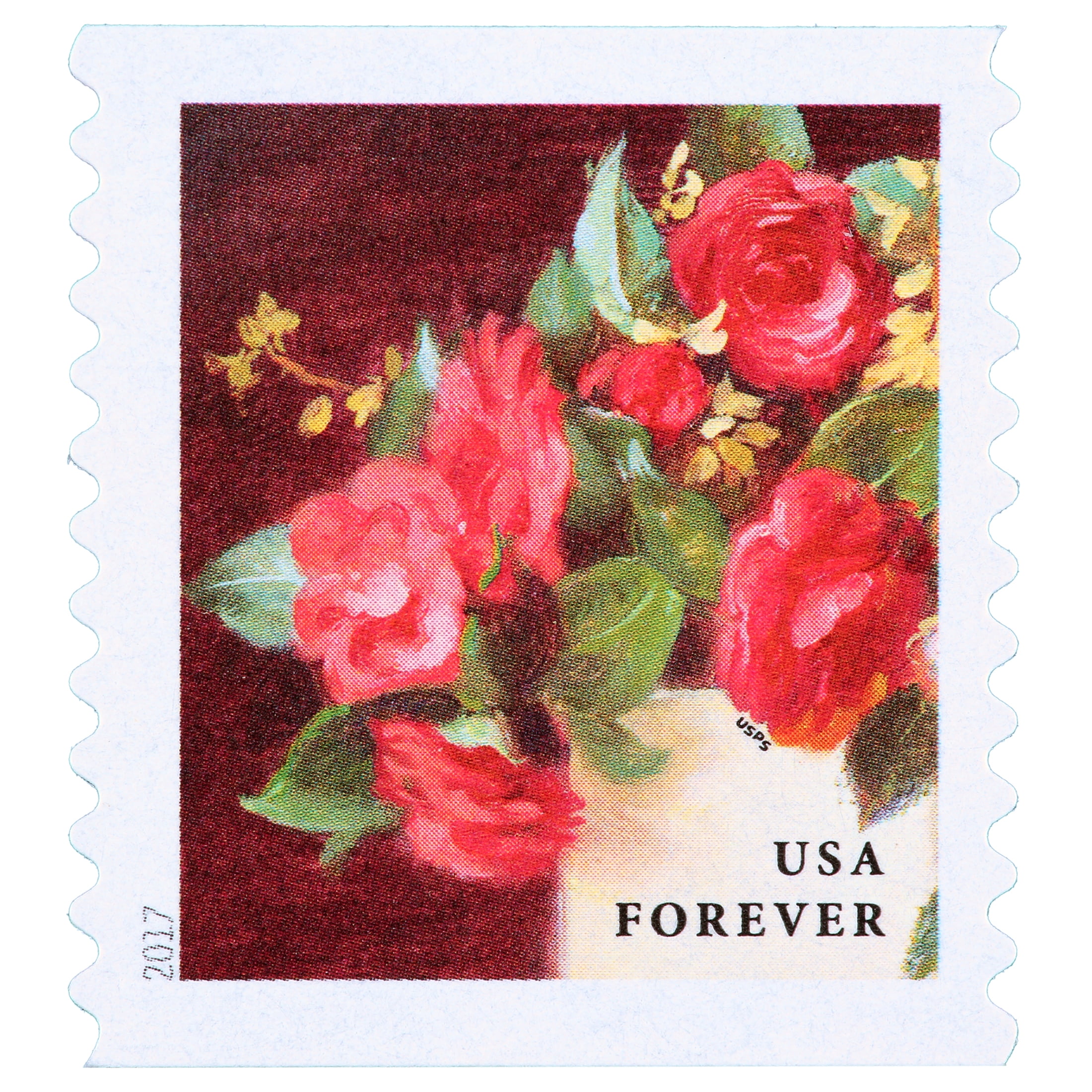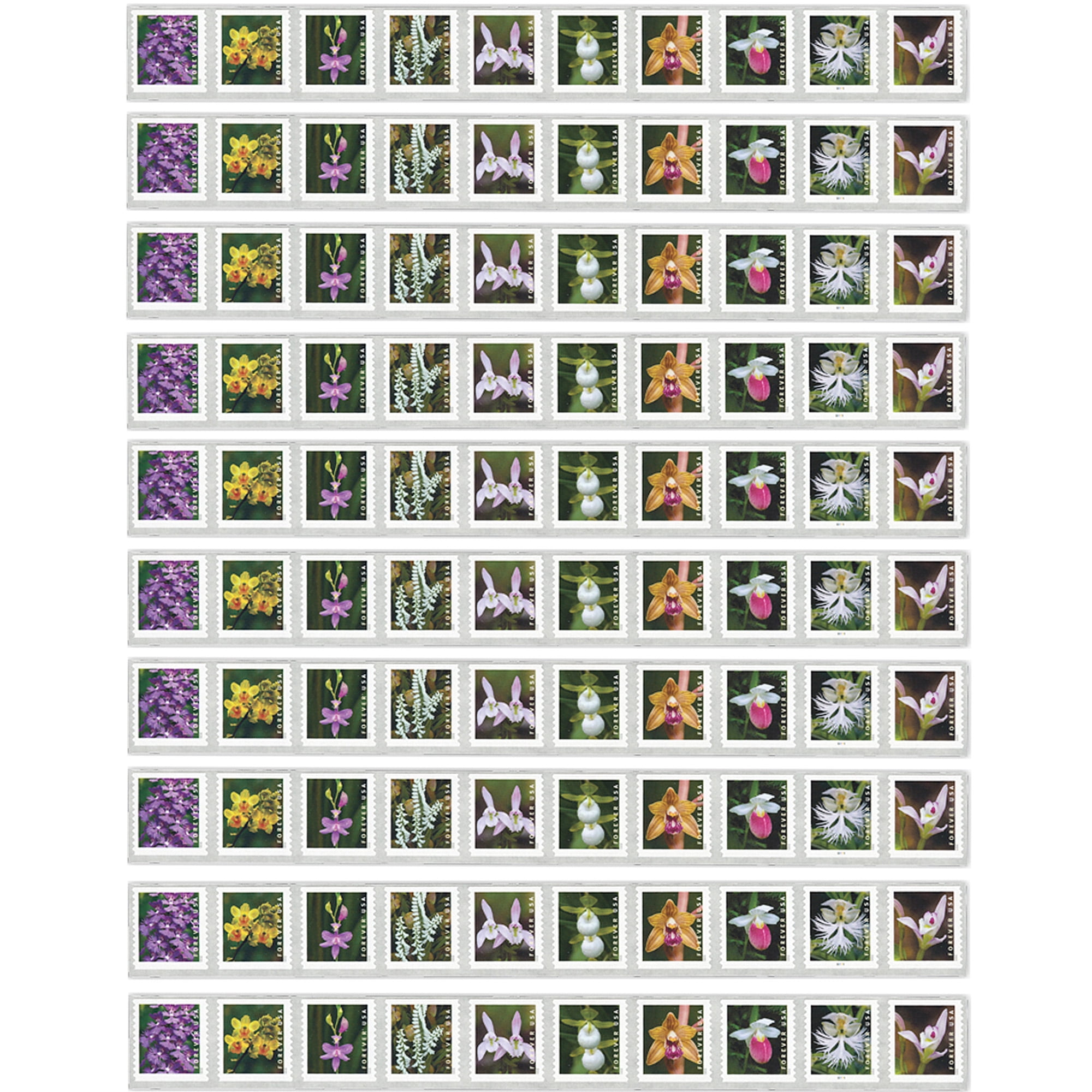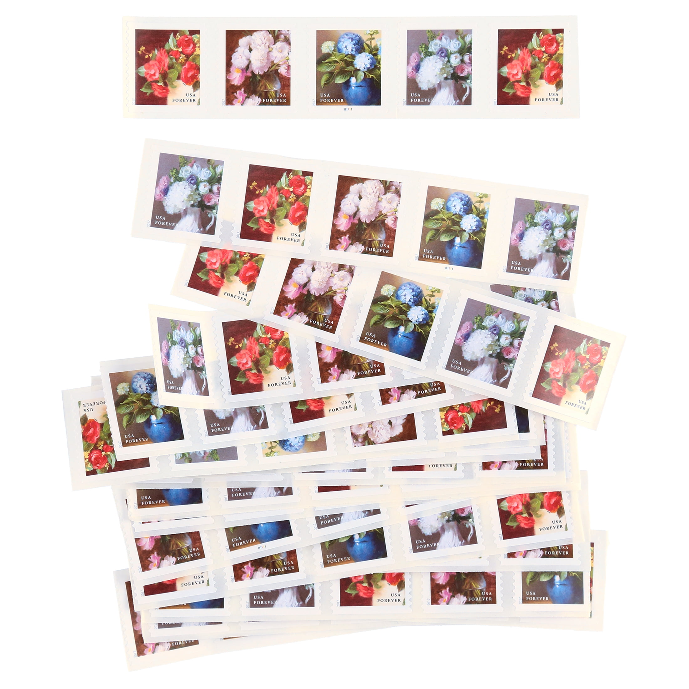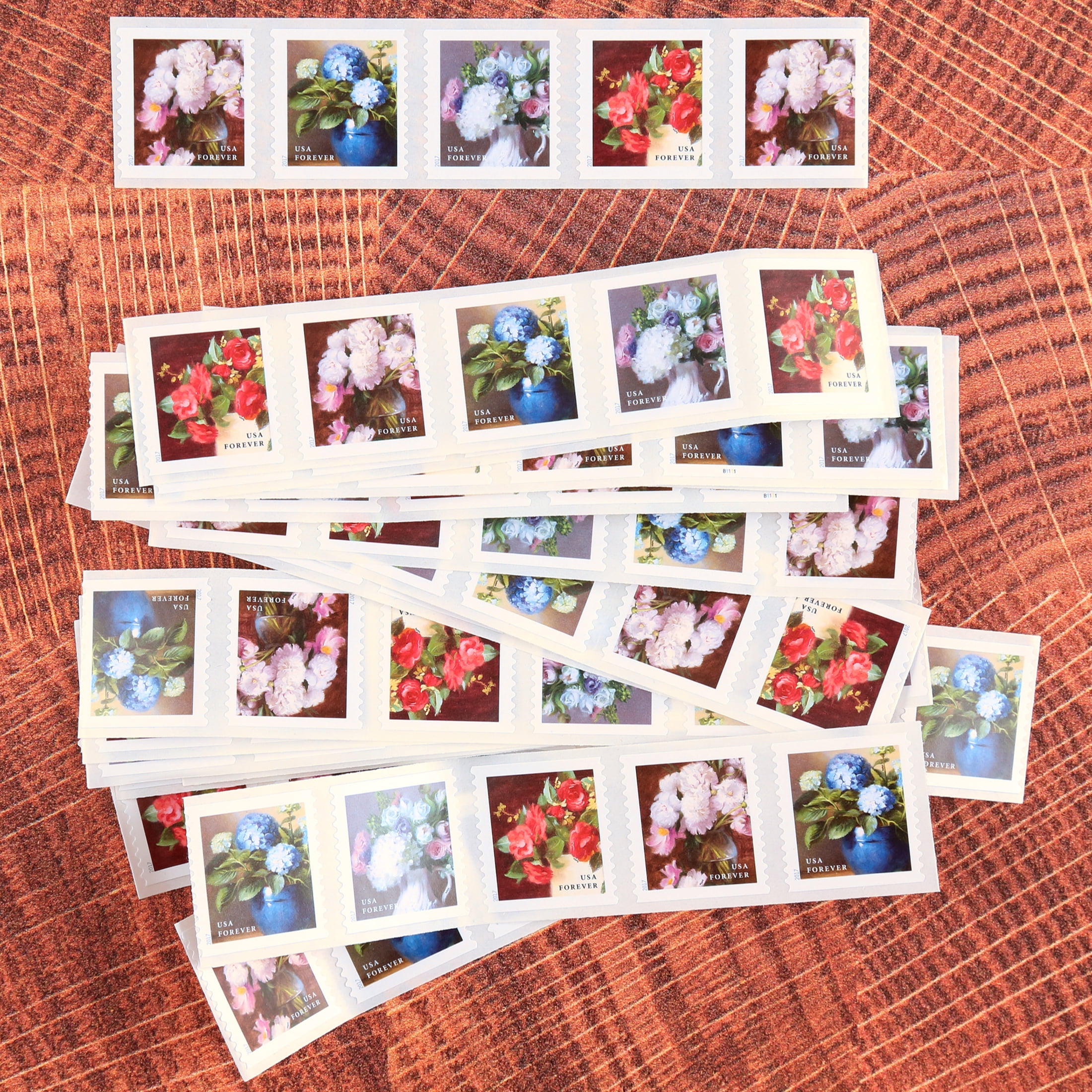 Strip hand cut from a larger coil for customer convenience Always equal in value to the current First-Class Mail One Ounce rate These self-adhesive stamps are being issued in rolls of 10,000 stamps. We hand-cut them to the length described for customers
