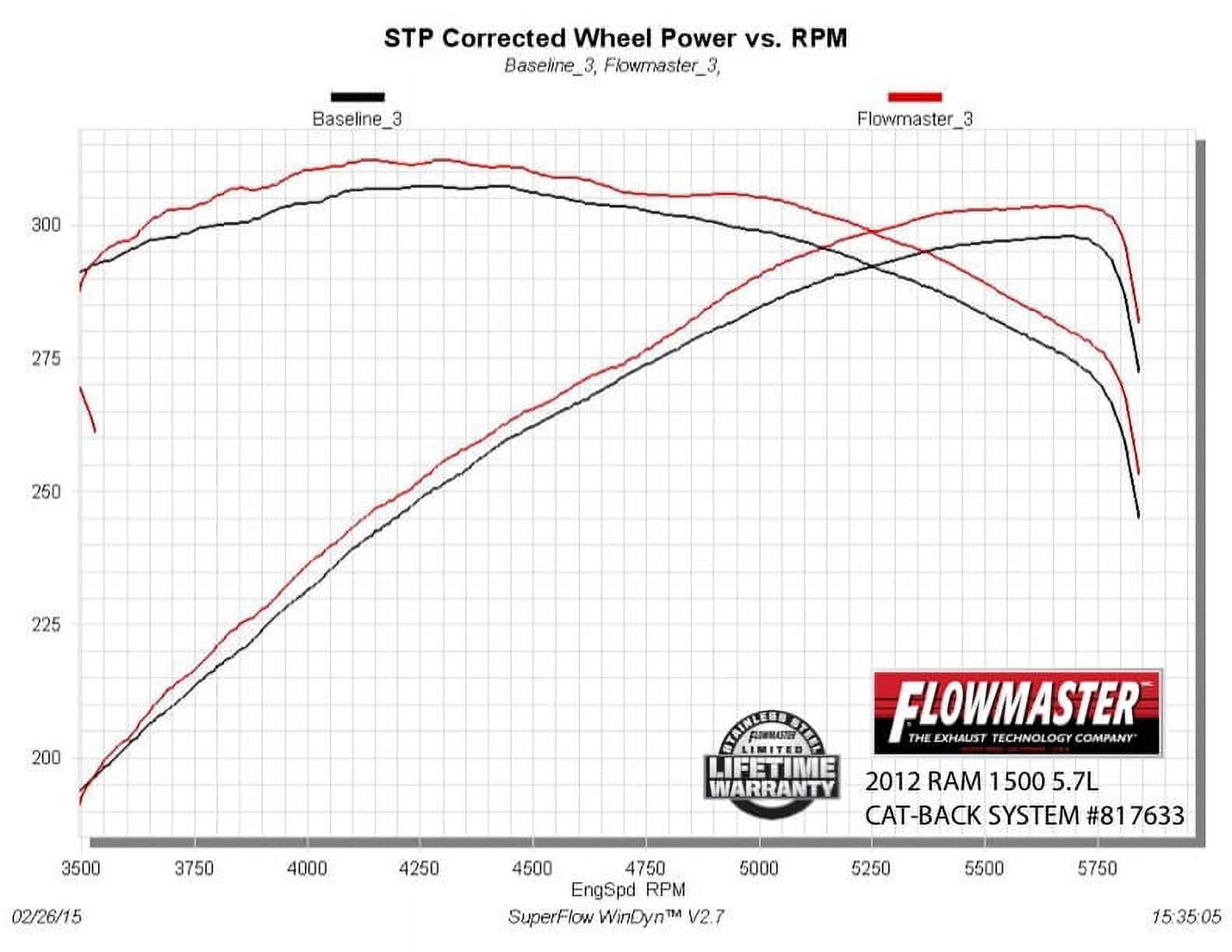Compatible with 2009-2024* (*Classic body) RAM 1500, 5.7L Hemi, 2/4 Wheel Drive and all Wheelbases; The Flowmaster Outlaw® direct-fit muffler for 2009-2024* (*Classic body) RAM 1500 trucks with the 5.7L Hemi and factory dual tailpipes, is perfect for the person looking for a very deep and aggressive sound level inside and outside the vehicle. This system is not for the faint of heart! This bolt-on stainless steel system gives you all the performance benefits and sound that you’ve come to expect from Flowmaster® and features a 3.00 in. mandrel-bent inlet tube flowing into a specially designed Outlaw muffler and exits into dual 2.50 in. outlet pipes which connect perfectly to the factory dual tailpipes. The system uses the factory hanger locations for a quick and easy installation you can do at home. Includes all necessary parts, hardware and easy to follow instructions. Covered by our Lifetime Limited Warranty.;