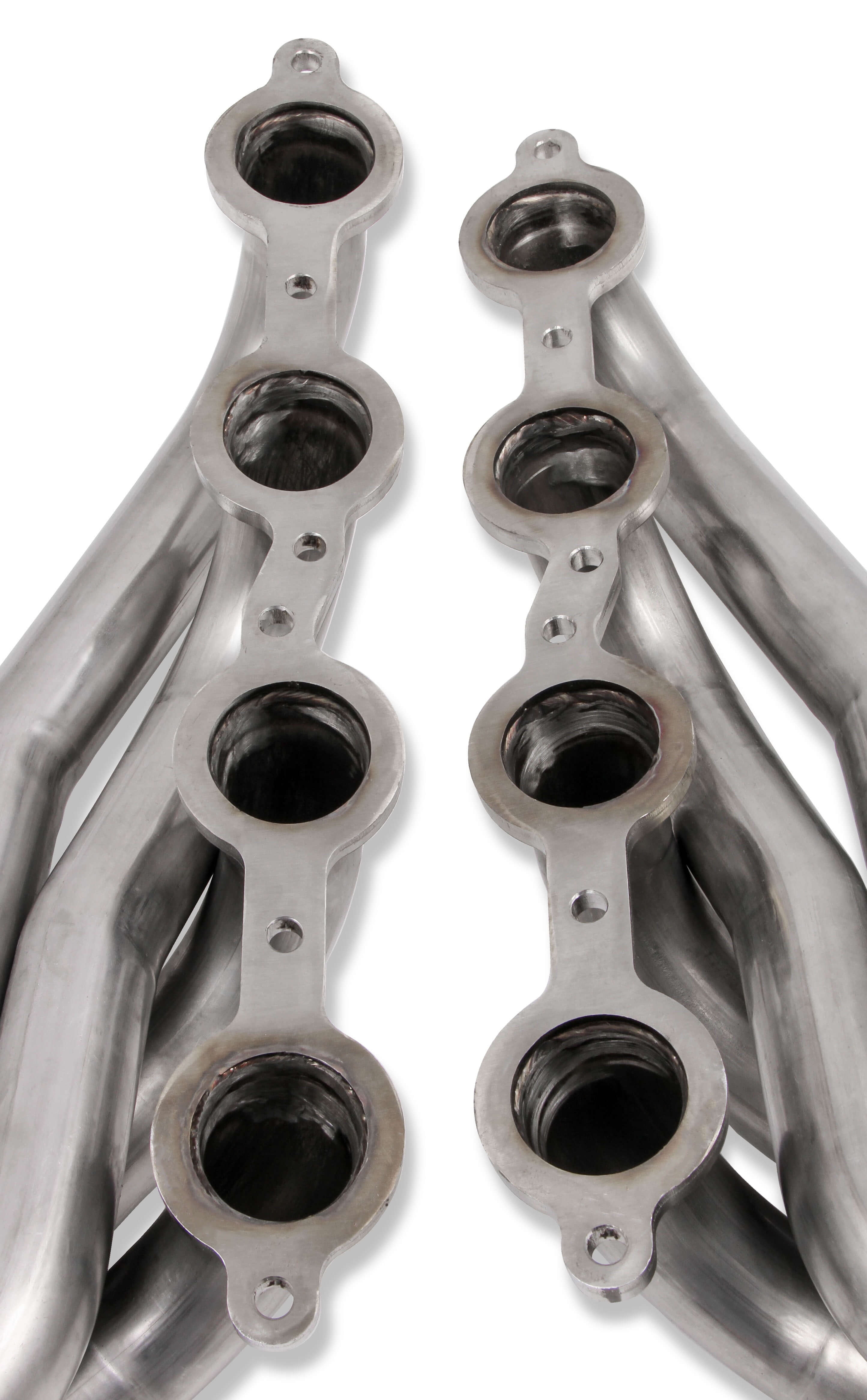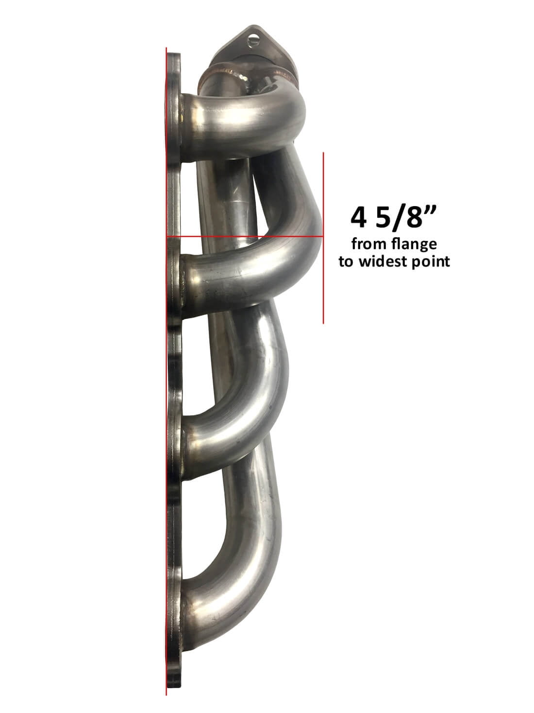 Universal rear exit shorty headers for GM LS1, LS2, LS3, LS6, LSX engines 1-5/8†mandrel bent primary tubes and 2-1/2†collectors 3/8†thick header flanges for a leak-free seal Premium gaskets and hardware included 2-1/2†reducers with oxygen sensor bungs included Available in natural 304 stainless steel and polished 304 stainless steel