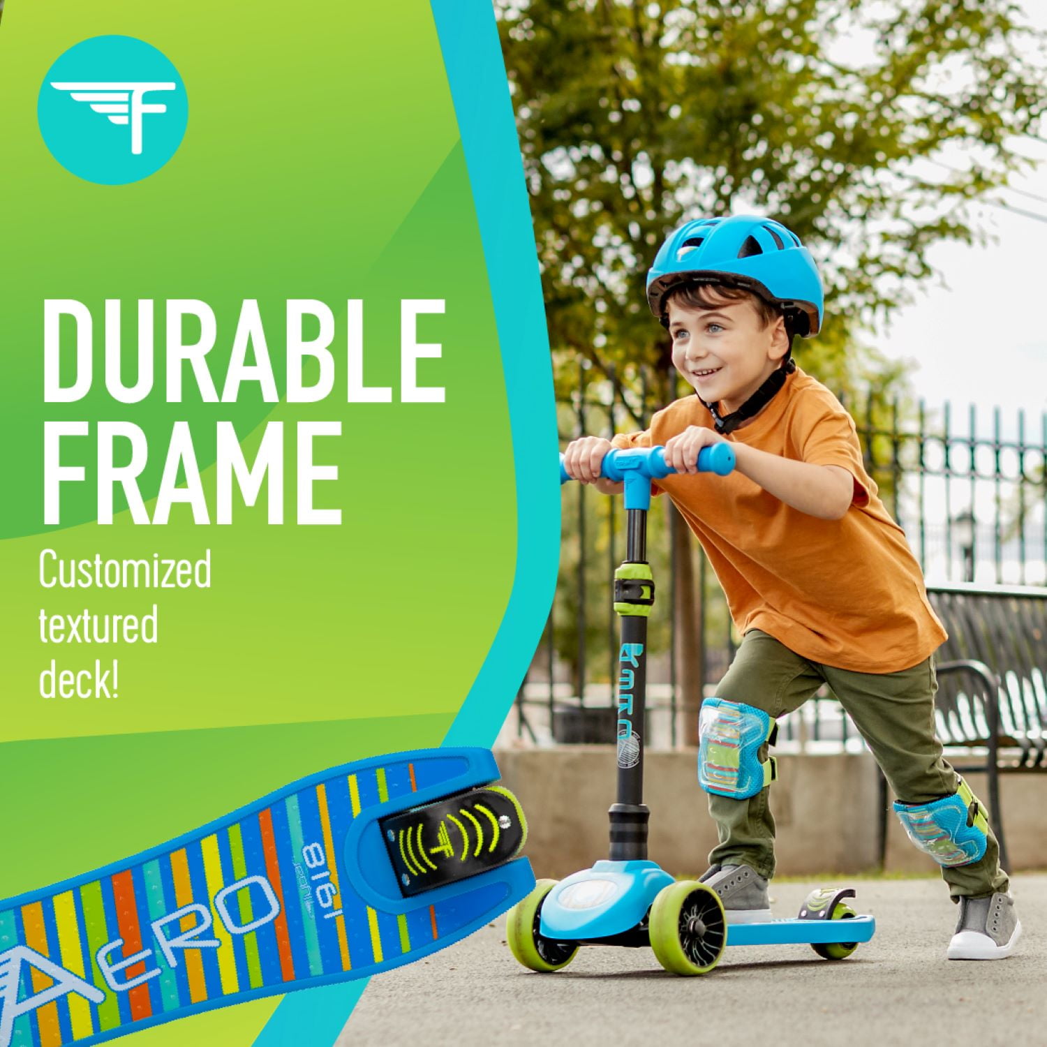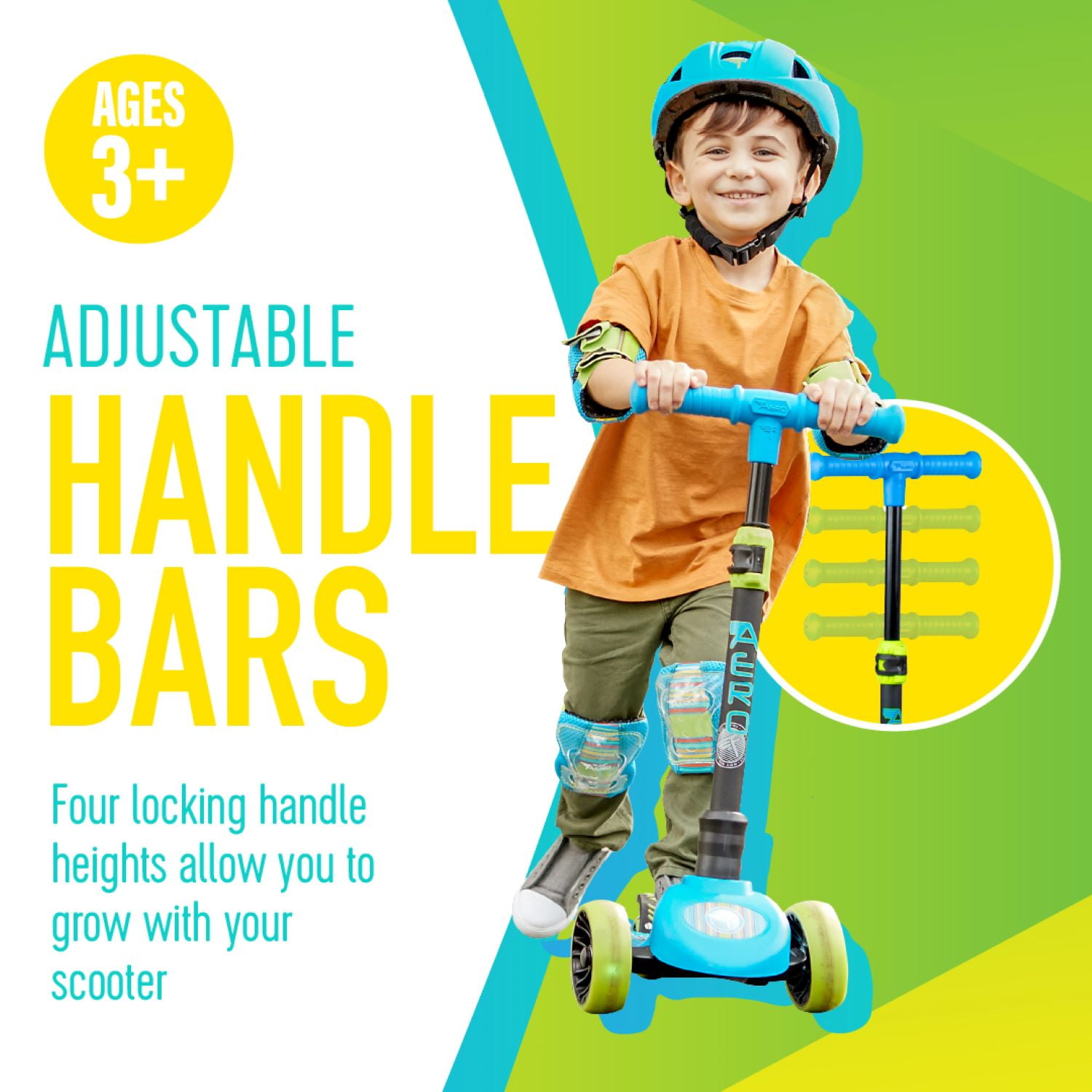 Flybar Aero 3 Wheel LED Kick Scooter for Boys and Girls, Ages 3+, Adjustable Handles, Blue