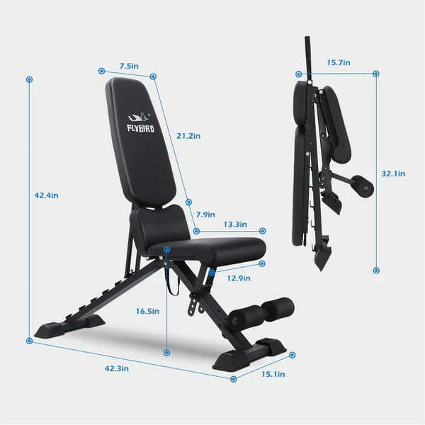 FLYBIRD Adjustable Weight Bench with Lumbar Support WP129