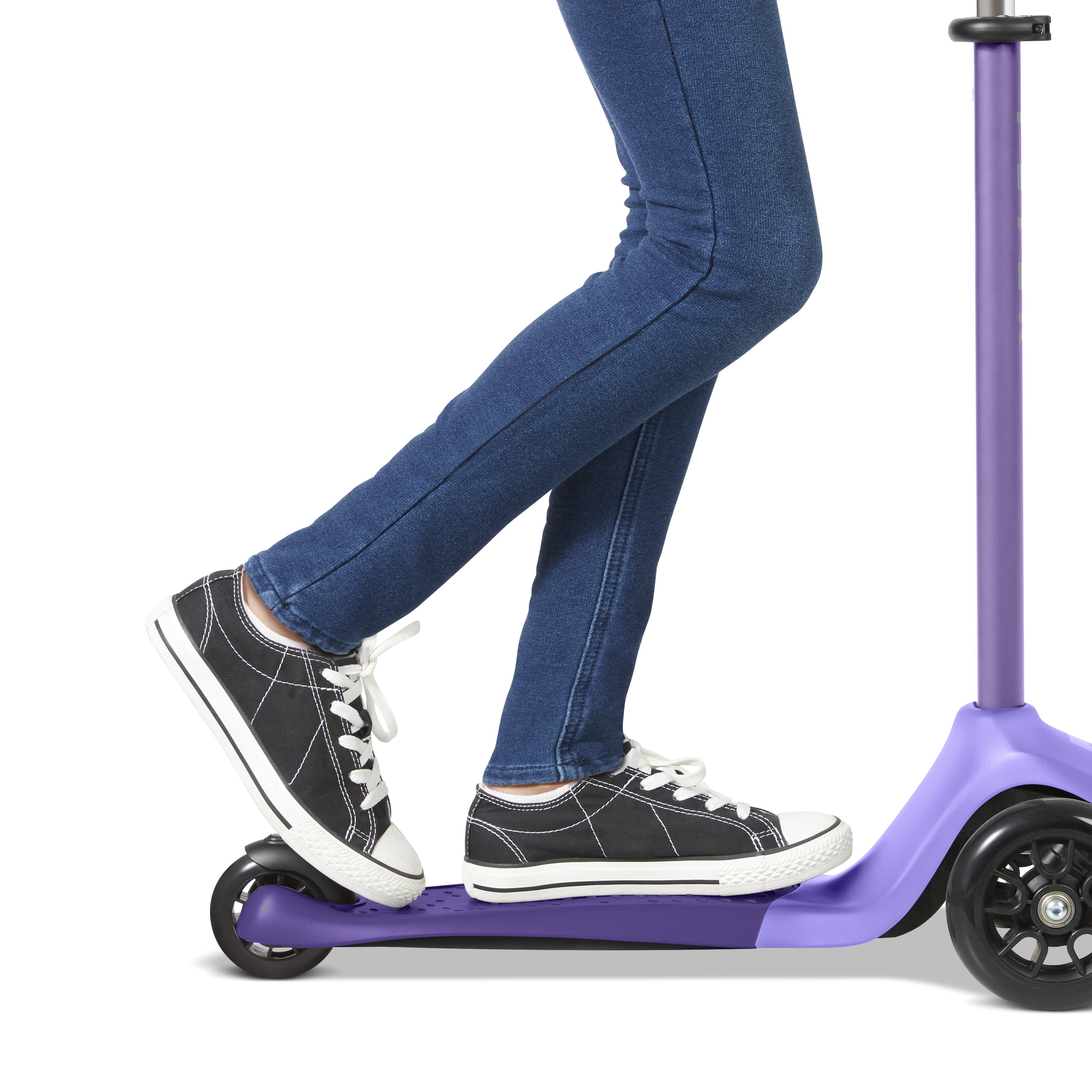 Gender-Neutral Design: Perfect for both boys and girls, this scooter is ideal for children aged 6 and up. High-Quality Build: Engineered for long-term use, featuring a flexible deck that holds up to 110 lbs. Smooth Ride: Premium polyurethane wheels with high-performance bearings ensure a safe and speedy glide. Adjustable Heights: The handlebar adjusts for growing kids, ensuring ergonomic usage with every ride. Size Dimensions: Scooter measures 23.23”L x 9.84”W x 37.40”H, ideal for long-lasting performance. Product Net Content: 1 complete scooter optimized for endless fun and available in several colors like purple. Environmental Compliance: A Certified B Corp status assures buyers of sustainable and socially responsible manufacturing processes.
