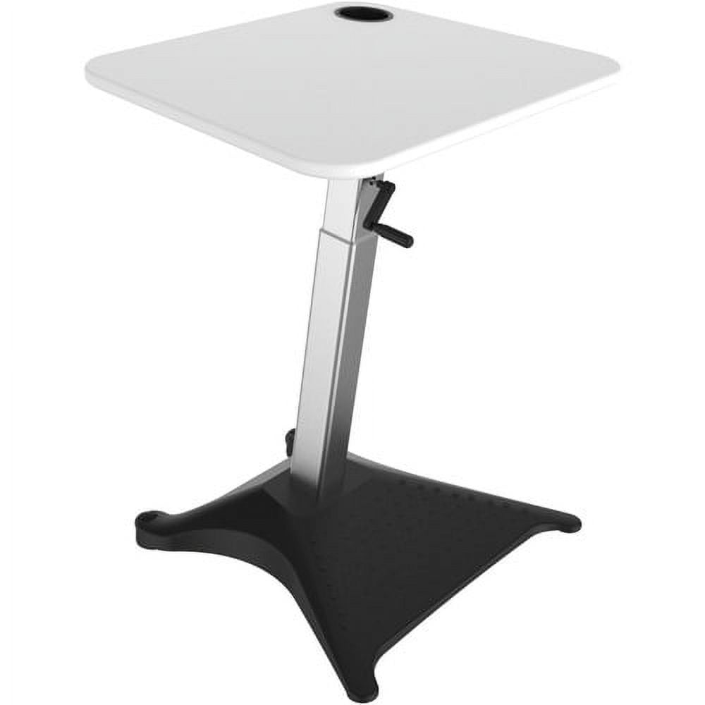 Focal Brio Adjustable Standing-Height Desk is designed to help promote a more active working environment. It is height-adjustable from 33-1/4″ to 47-3/4″ with a precision hand crank. Hidden wheels allow easy mobility. Top slants downward 3 degrees for easy use. Wheels and top-pull handle allow the compact desk to be moved to wherever is desired for increased flexibility while working. Anti-skid feet provide stability.