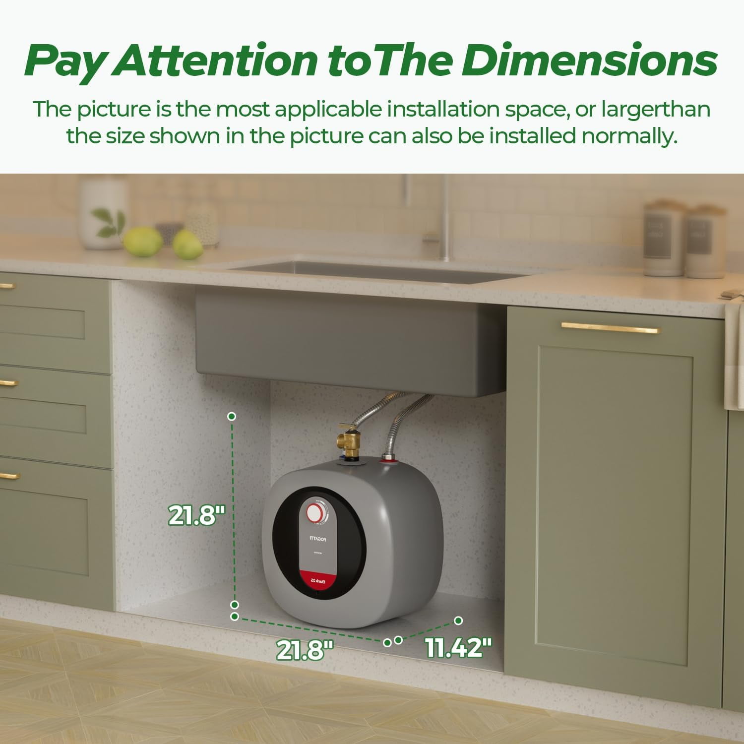 Compact and efficient solution for providing hot water in small spaces, designed to be installed directly under kitchen sink, bathroom sink, or commercial sink Allows for instant hot water access, with a 2.5 gallon water heater ideal for use in small apartments, cabins, RVs, and other areas where space is limited Thoughtful safety protection makes your family feel more secure, with a liner that has been pressure tested over ten thousand times Built-in anode rod for better protection of the heating tube