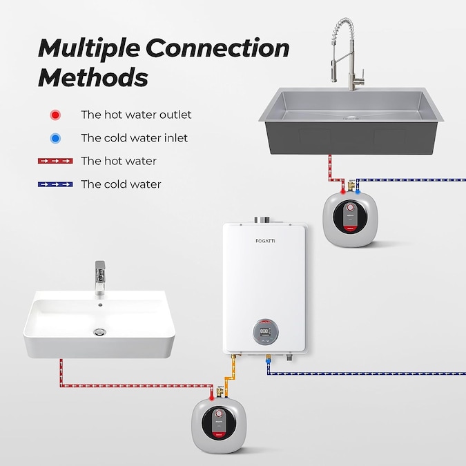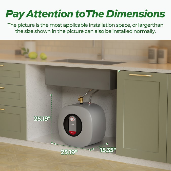 FOGATTI mini tank water heater electric is a compact and efficient way to provide hot water in small spaces. It is designed to be installed directly under the kitchen sink, bathroom sink or commercial sink, allowing for instant hot water access. The 8.0-gallon water heater is ideal for use in the areas where space is limited. Smaller and more convenient solutions for hot water supply and suitable temperatures can be selected all year round. Thoughtful safety protection of this on-demand water heater makes your family feel more secure. Excellent quality CSA certified in the USA and Canada, top safety and durability using the latest technology. It equipped with plug. Water connection: 1/2 inch NPT. Electrical requirements: 120V, 1440W. Maximum water pressure: 150 PSI. Recommended circuit breaker: 15A.