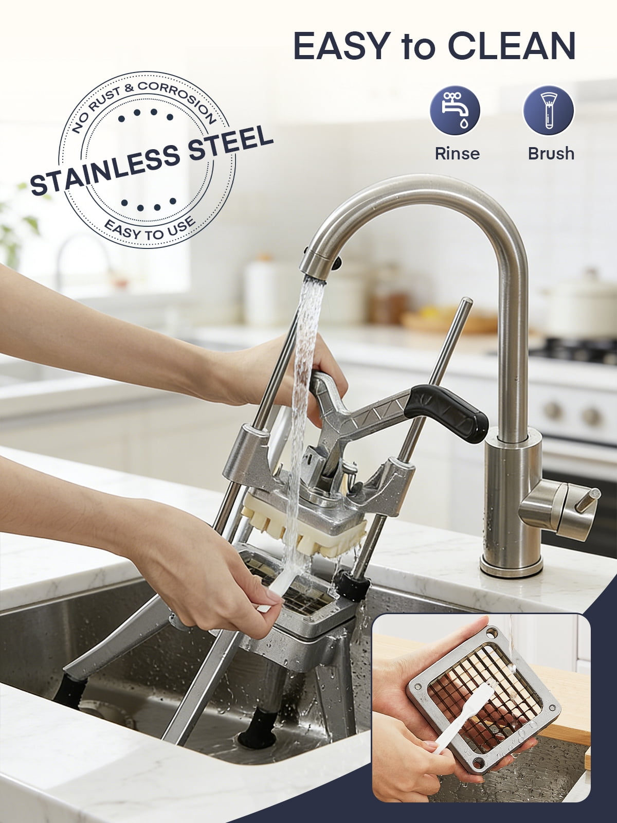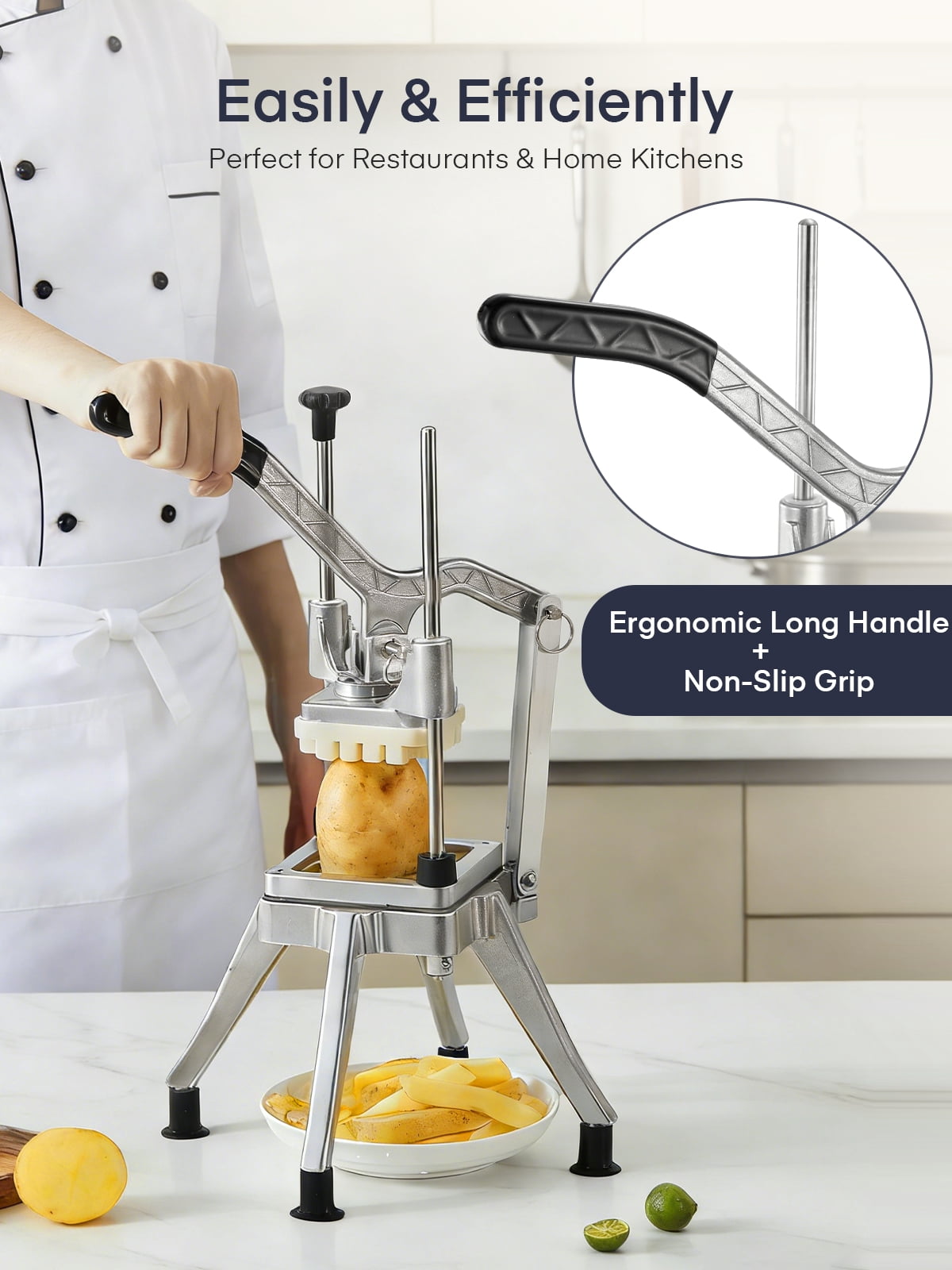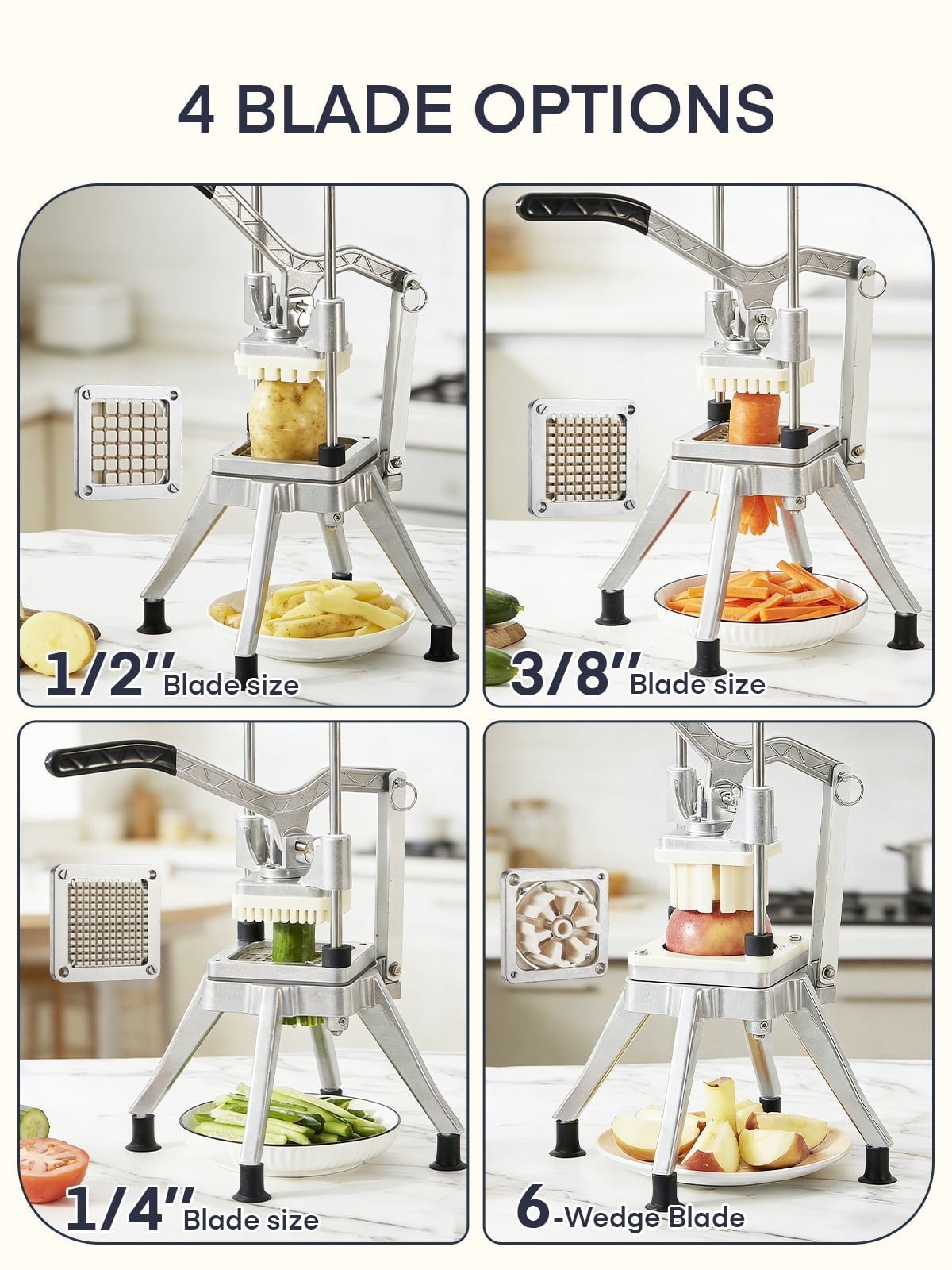 FOHERE Commercial Vegetable Fruit Chopper, W/6-Wedge Slicer&1/4″&3/8″&1/2″ Blade Professional Food Dicer French Fry Cutter Onion Slicer Stainless Steel For Tomato Peppers Potato Mushroom