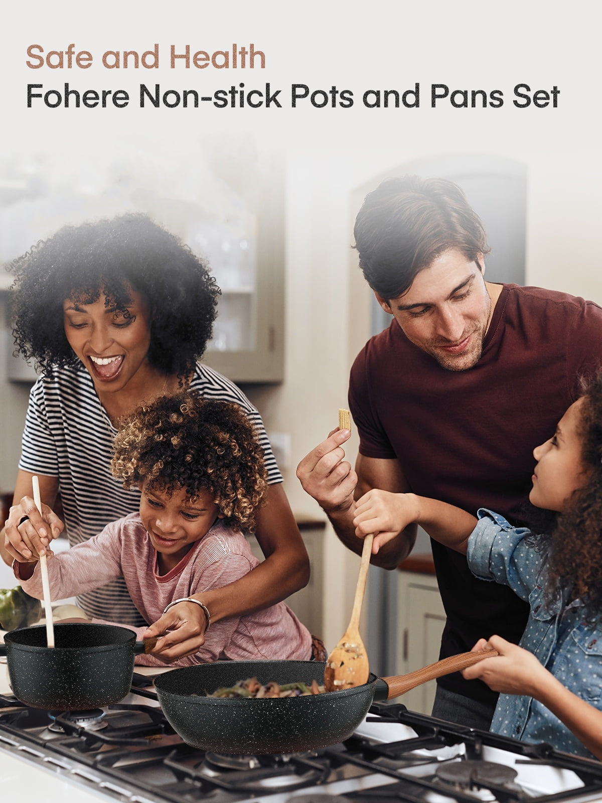 Fohere 15-Piece Pots and Pans Set Non Stick, Induction Kitchen Cookware Sets, Aluminum, Black