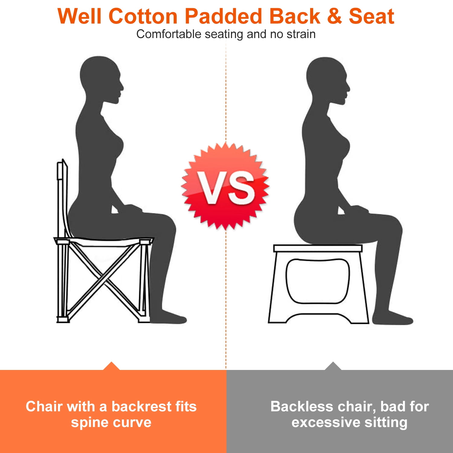 ❤ 【Fully Cotton Padded Back & Seat】: 22.04×18.89in Spacious seat area allows you to relax while sitting; high back seat design and armrest ensure maximum comfort due to padded cotton. Let’s enjoy the fun and leisure time in outdoor life. ❤ 【330LBS Max Load Chair】: Come with thickened steel frame with 16mm in diameter, reinforced connection and strong 600Dx300D Oxford fabric, creates the perfect balance between comfort and functionality, this folding chair’s max weight capacity is up to 330 lbs. Perfect for adult, teen and elder using. ❤ 【Multi-Functional Collapsible Folding Chair】: Our padded camping chair is perfect for camping, fishing, picnic, hiking, concerts or other outdoor activities, also can be used as heavy duty lawn chair, collapsible folding chair. ❤ 【Quick To Fold & Unfold】: Folding camping chair is easy to set up and fold in seconds. This hands-free beach chair come with a mesh cup holder, everything is within arm’s reach. Rest on the camping chair, drink a cup of coffee, and enjoy sunbathing. ❤ 【Easy Storage & Transport】: The Camping chair folds down to 8.07×35.43×5.9in and Weights only 6.39 lbs, can be packed into a carry bag that comes with it. You can easily store it almost everywhere and take it anywhere you want by putting it in your trunk. Specification: TeqHome Product Type: Foldable Camping Chair Color Available: Red/Grey/Blue Materials: 600x300D Oxford Fabric; Inner Sponge Padding; Steel Tube Max Load: 150kg/330lbs Tube Parameter: 16mm (Diameter) x 0.8mm (Tube Wall Thickness) Cup Holder Diameter: 7.6cm/2.99in Arm Rest Size: 12x57cm/4.72×22.44in Seat Size: 56x48x1.5cm/22.04×18.89×0.59in Carry Bag Size: 30.5x108x0.3cm/12×42.52×0.12in Folded Item Size: 20.5x90x15cm/8.07×35.43×5.9in Extended Item Size: 85x57x104cm/34.64×22.44×40.94in Item Weight: 2.9kg/6.39lbs Package Size: 98x18x16cm/38.58×7.08×6.29in Package Weight: 3.35kg/7.39lbs Package List: 1 x Folded Camping Chair 1 x Carry Bag
