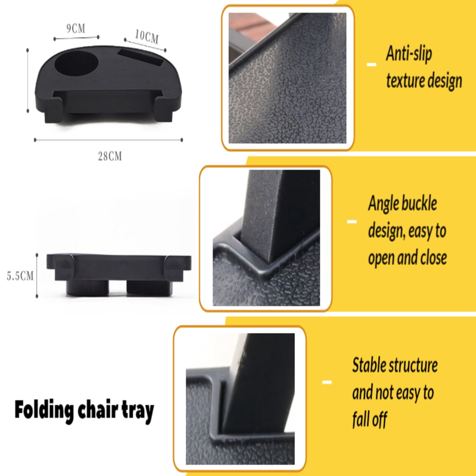 Foldable Reclining Chair Clip on Side Table Cup Drink Lounger Tray Clipfor Outdoor Fishing Camping Beach Camping Equipment black.The attachable cup holder is big enough, and can easily hold your phones, food, water, mug, bottle or coffee mugs.This arm chair cup holder is made of the high strength aba material, which is sturdy, durable, wear resistant.This chair accessory fits most leisure loungers, recliner, feet, and other chair.Our lounger tray ideal for camping, yard, sports, beach, patio and other outdoor activities.Install on the chair easily, clips on to the tubular sections of the side, stay attached. with drain design at the slots bottom.Foldable Reclining Chair . Side Drink Cup Holder for Beach Garden Lounger. Leisure Recliners Storage Clip On Outdoor Lounge. Universal Chair Cup Holder Recliner Beverage. with Mobile Device Slot Snack Tray Beach.
