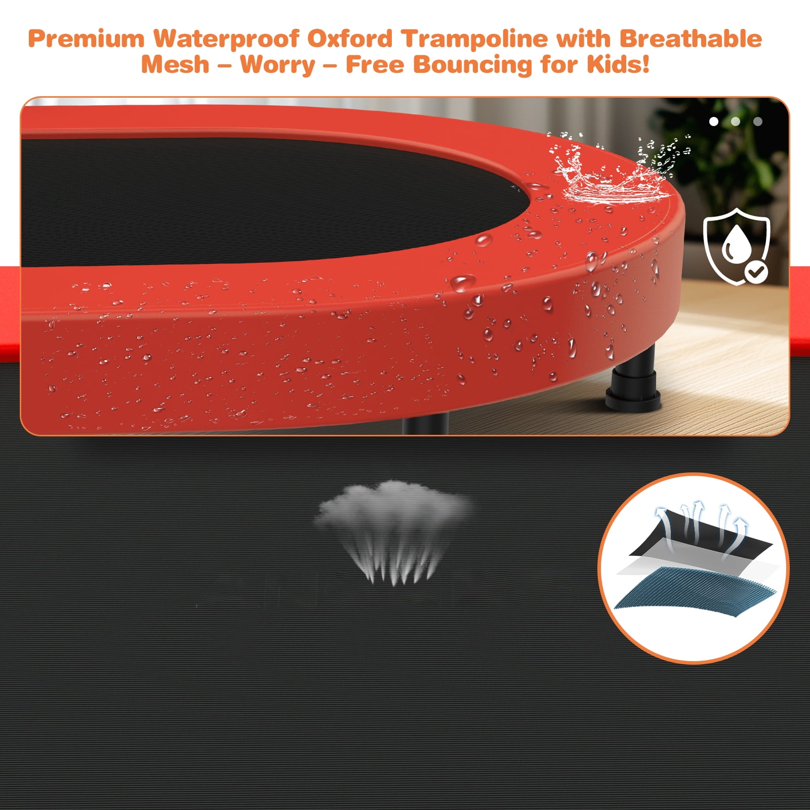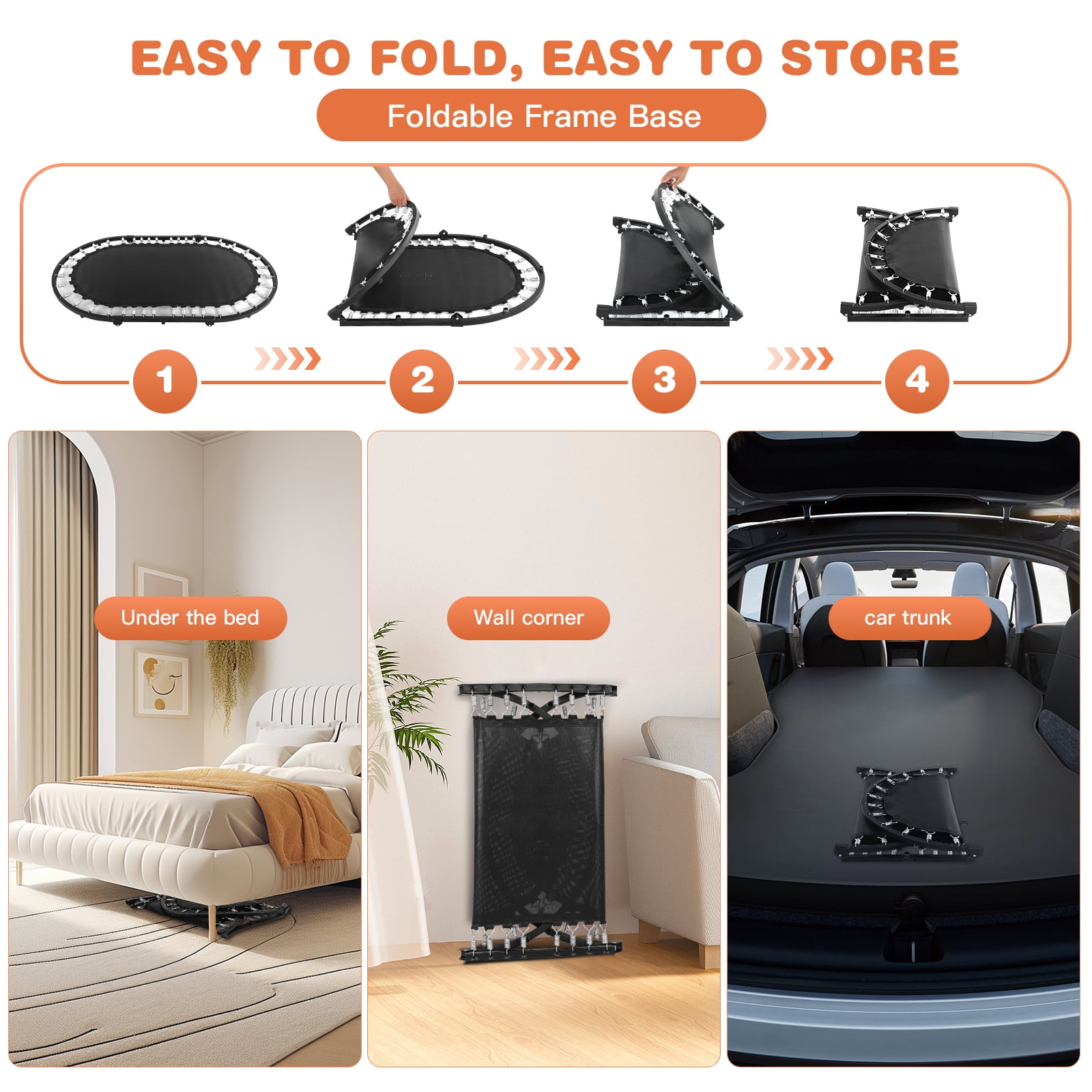 Foldable Trampoline Features: [Special Design] Oval rebounding surface offer big enough space, perfect for parent-child or two kids’ activities [Adjustable Handle Bar] 5 levels heights, adjustable from 32 to 42 inch, more stability, and suitable for any height of kids to keep balance [Easy Installation] Detachable foldable design, saving storage space, making assemble done within half an hour [Good Quality] Heavy-duty frame, PP jumping mat, PVC safe pad cover, stainless steel springs, rubber-tipped leg tube and foam covered handle, offers a much safer environment for kids, better for age 3+ [Benefits] Strengthen skeletal system and increase bone mass, help kids grow taller, improve circulation and make parents and children closer