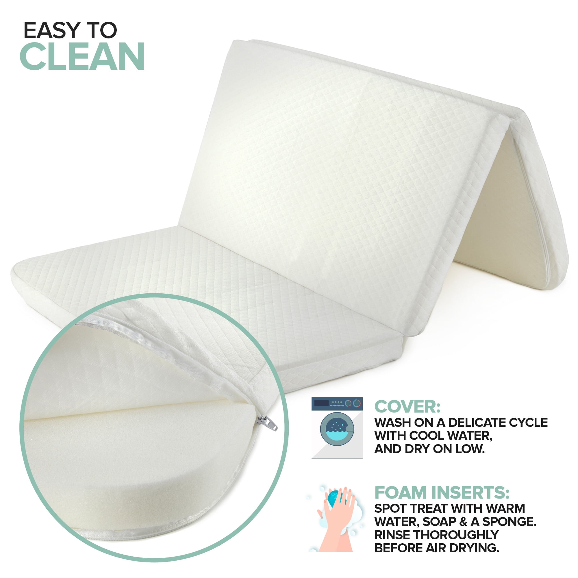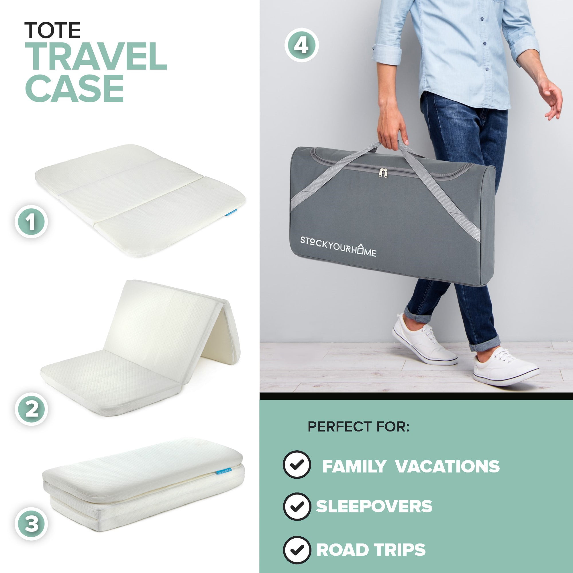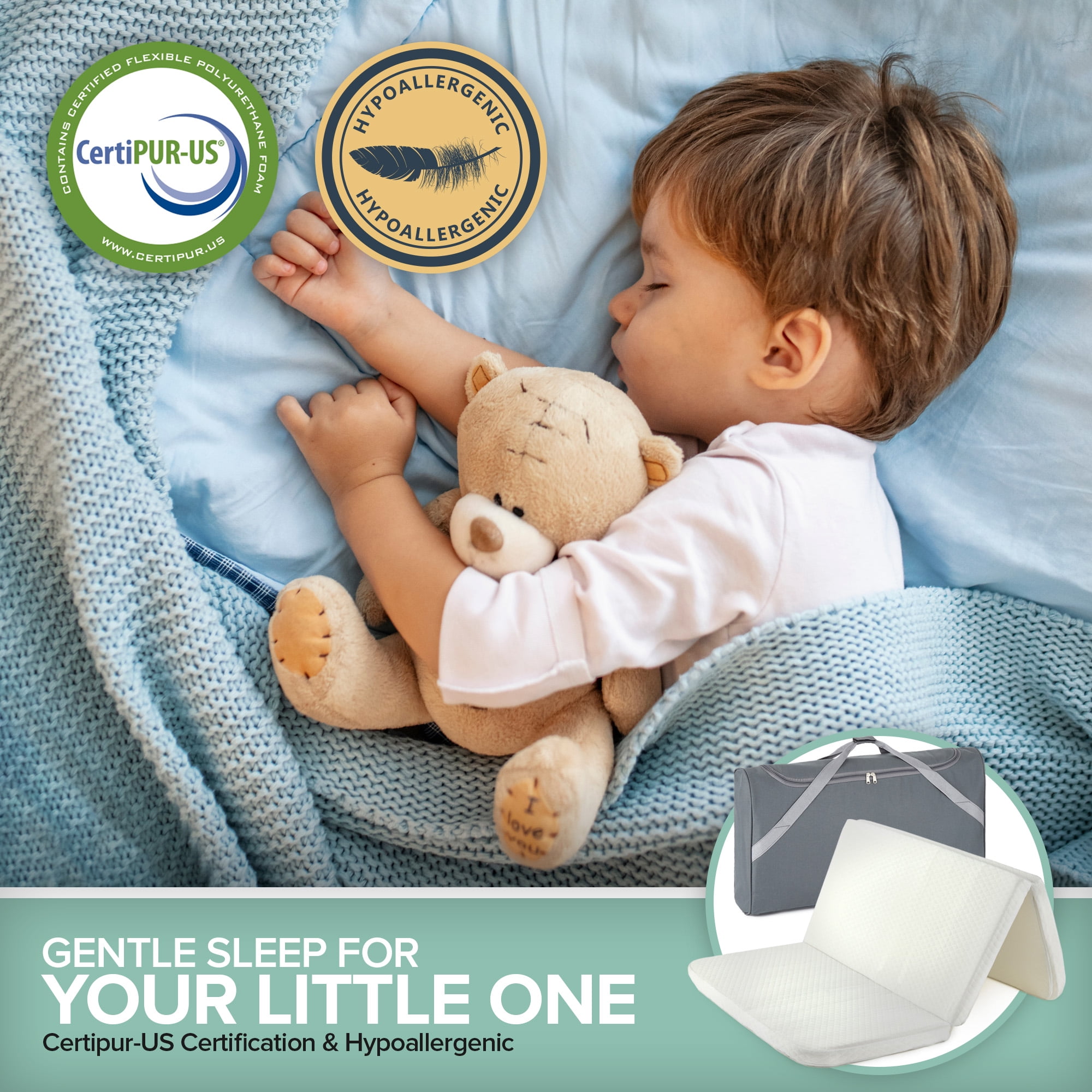 Foldable Travel Pack n Play Mattress Pad with Bag, Waterproof Portable Mini Crib Mattresses, Baby Bed Playpen Memory Foam Topper, Playard Pen Accessories, Traveling Case Included