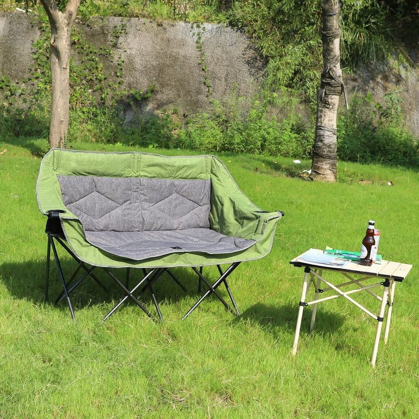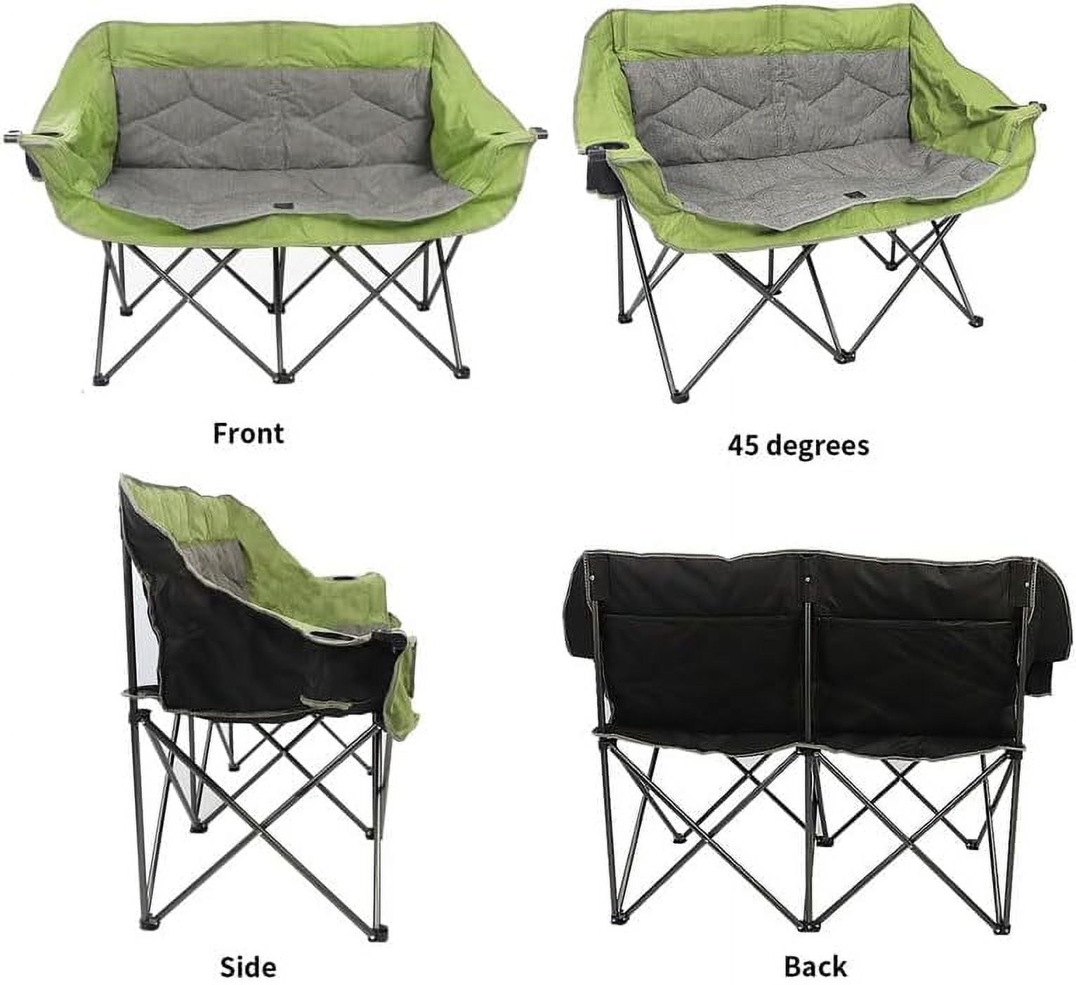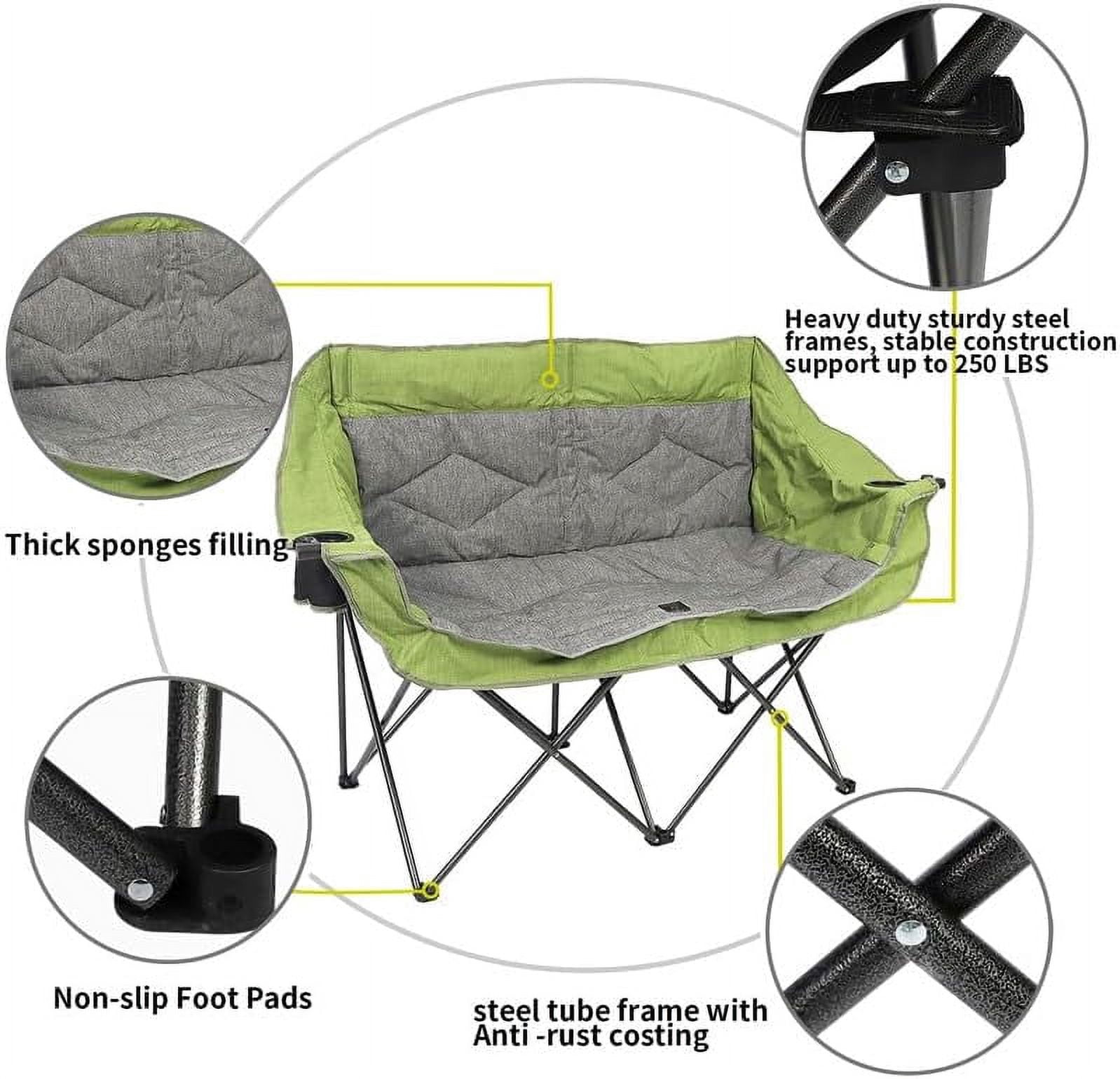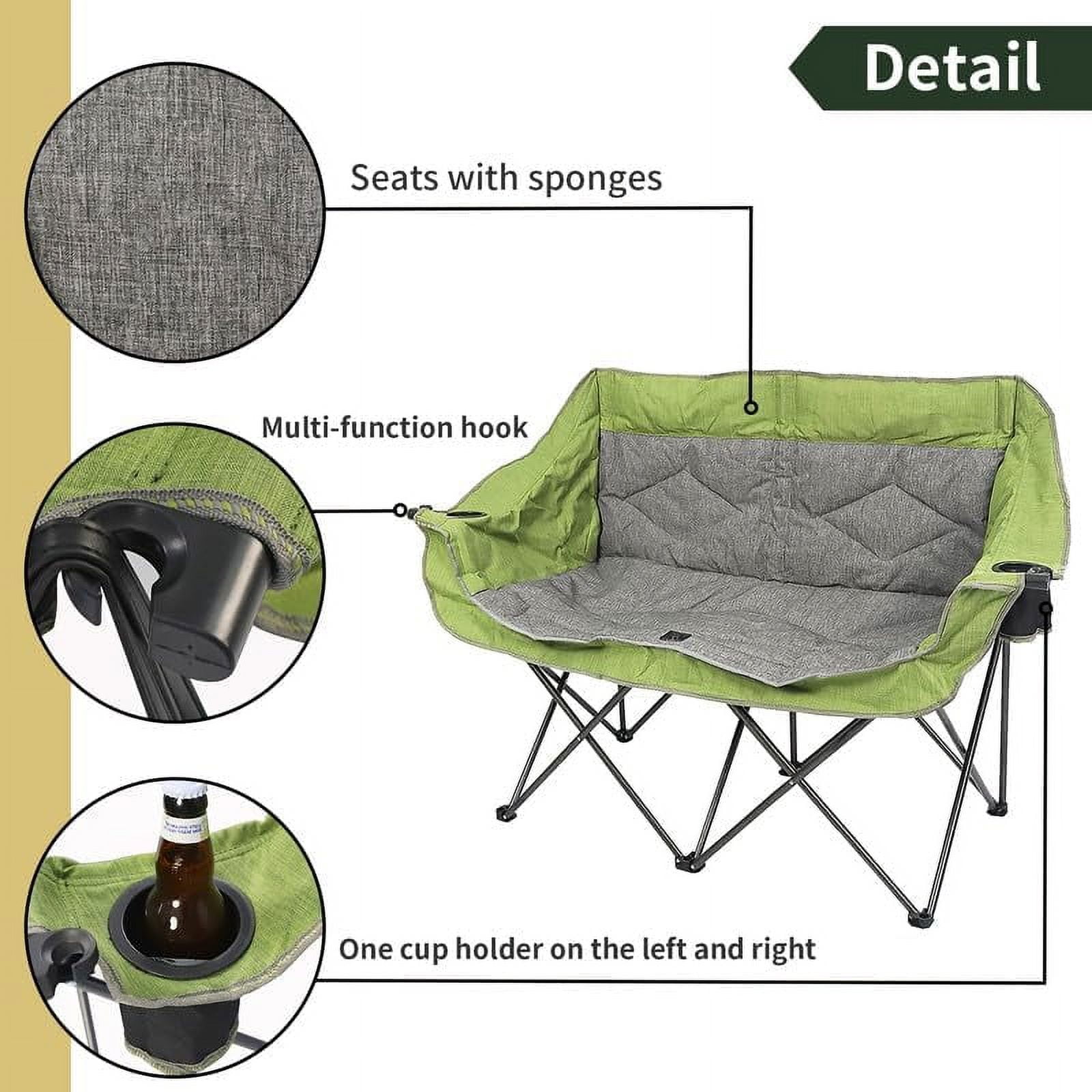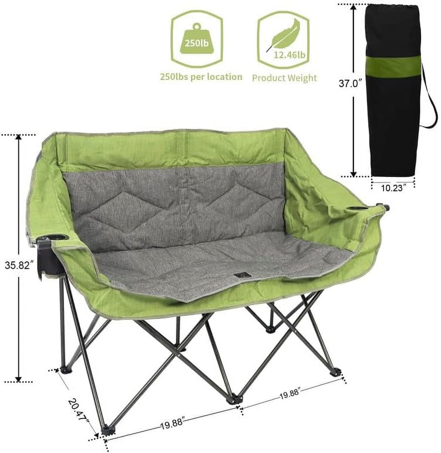 Folding Loveseat Camping Chair Portable Double Duo Full Padded Garden Chair for 2 Person Sofa w/ 2 Cup Holder,Wine Glass Holder,Mesh Storage,Support 600lbs for Picnic Beach Travel (Green)