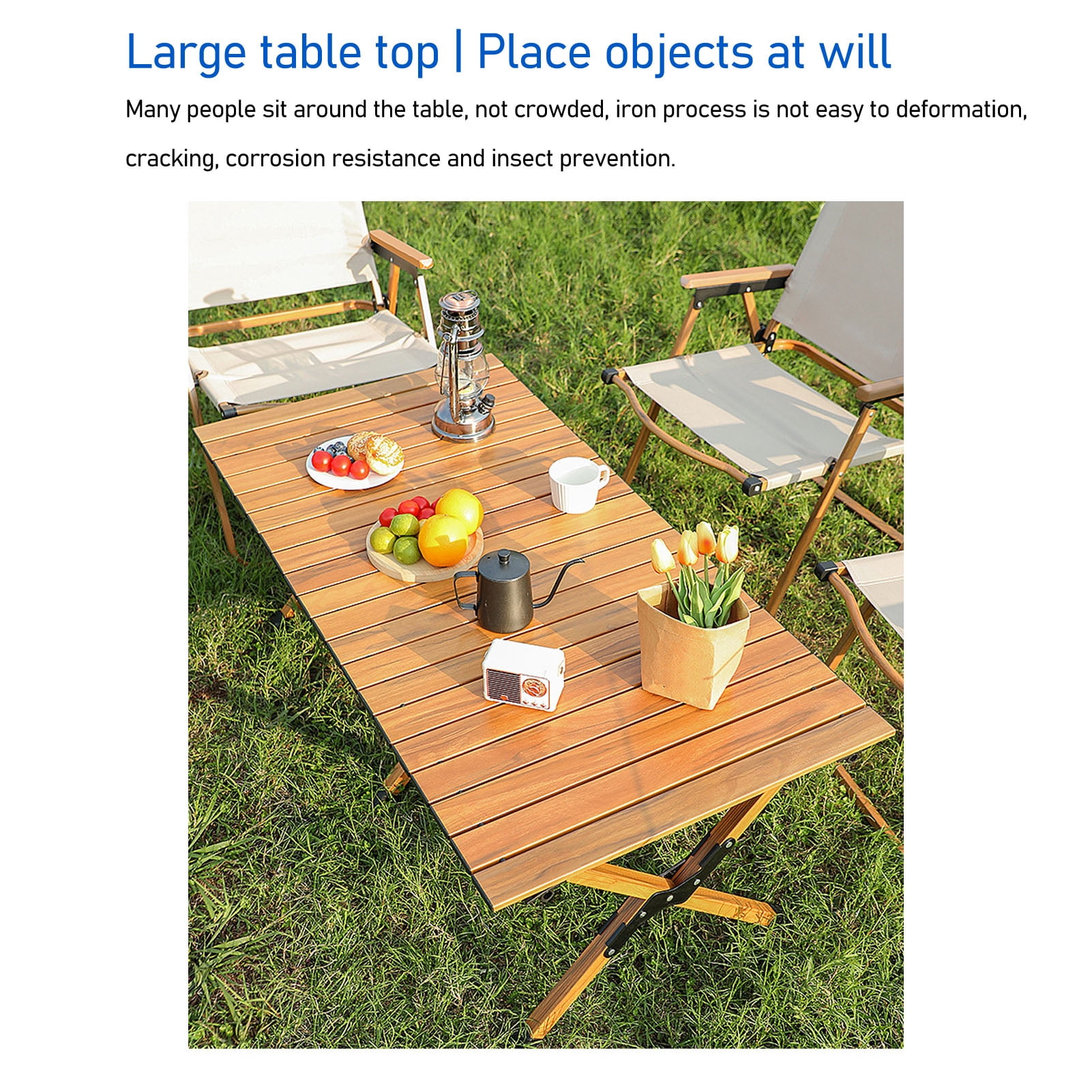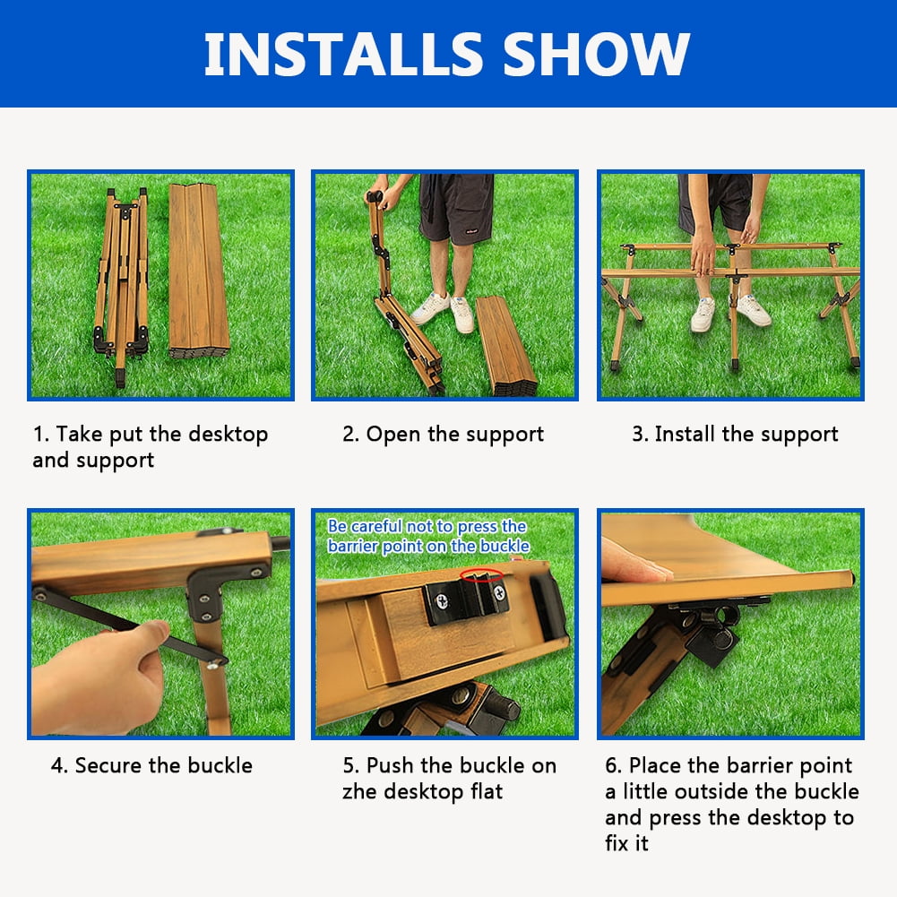 ✅【Lightweight and Durable 】: Crafted from alloy material, this folding table is both lightweight and durable. It can withstand significant weight and pressure, making it ideal for outdoor use while remaining sturdy and reliable. ✅【Portable and Foldable 】: The outdoor folding table is designed to be easily portable and foldable. With a convenient carrying bag and straps, it can quickly fold into a compact size for effortless transportation to camping trips, picnics, backyard barbecues, and other outdoor activities. ✅【Stable and Safe 】: Featuring a stable three leg support structure, this folding table ensures stability during use. Its anti slip design provides a secure platform for items, preventing sliding or tipping and ensuring safety during all your activities. ✅【Simple and Stylish 】: The outdoor folding table boasts a simplistic and stylish design, adding an aesthetic touch to any environment. Whether in the great outdoors or your own home kitchen, it elevates the ambiance with its wood color appearance. ✅【Multifunctional 】: This versatile outdoor folding table is not limited to camping and picnic activities. It can also be used as a temporary dining table, a convenient workstation, or a study desk in your home kitchen or any other setting. It adapts to various needs and occasions.