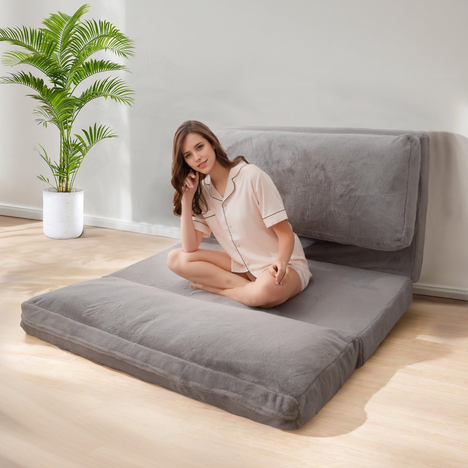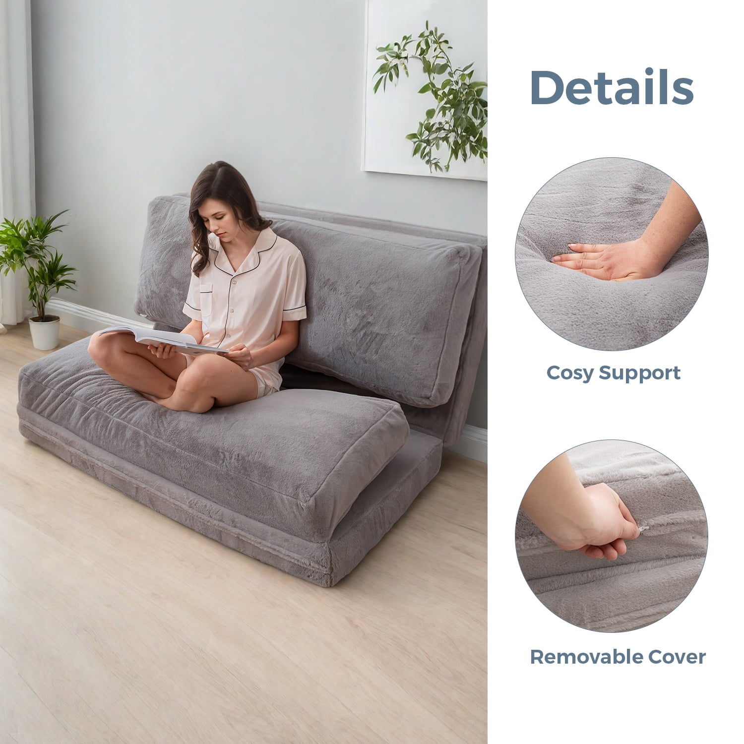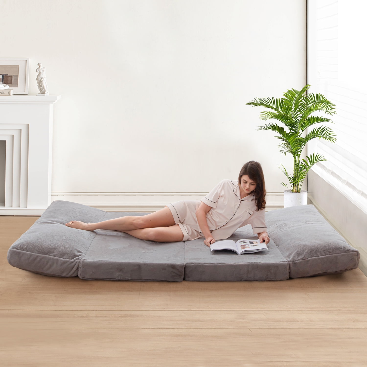 【Unique Design】: Chair easily converts into a bed – The best multi-purpose chair!The foldable mattress is consists of four parts and the filling can be independently disassembled. The unique design is conforms to ergonomics, brings you comfortable experience。 【Fluffy Fabric】:The floor mattress is made of faux fur fabric, which is ultra-cozy for stylish comfort. 【High Density Foam Filling】: The bean bag chair filled with fluffy foam chunks and high-density base support foam, which are strongly supportive and not prone to collapse. And the fluffy foam chunks avoid the creaking sound that traditional beans make, having a peace and quiet space. 【Wide Versatility】: It’s perfect for family gatherings, picnics, overnight guests, college dorms, living rooms, attics, apartments, camping, traveling, napping, massages, yoga, exercise or anywhere where space is limited.