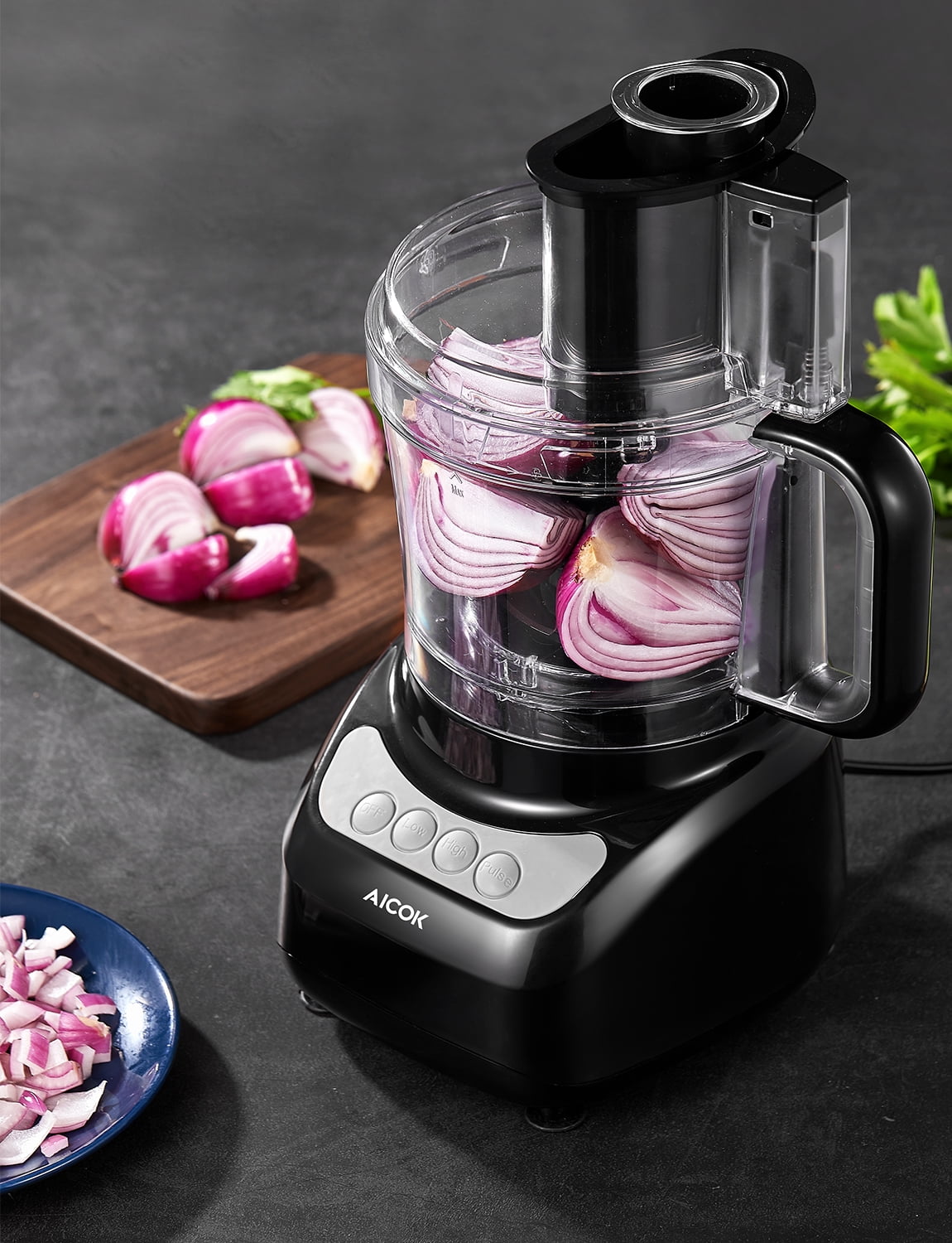【2L Large Capacity】 2L large capacity bowl allows you to prepare your family’s food as you like, and the exquisite 6 accessories allow you to easily handle small things such as chopping small amounts of herbs or making a small amount of sauce. 【Multifunctional Accessories】 The multifunctional food processor comes with an entire assortment of accessories intended to maximize your use of the machine. It has 2 feeding tubes, 2 pushers,1 reversible disc,1 stainless steel S-blade, and 1 plastic S-blade which can be used to shred cheese, make biscuit dough, puree baby food, grind spices, and chop up salsa ingredients. 【Safety Working】 To ensure the safety of customers, 3 safety nodes are set up, the food processor can only work when the base and bowl, bowl and lid, lid, and black push rod are firmly locked. solid-built body and a wider base, 4 suction cups can prevent it from moving on your kitchen counter. (Please follow the instructions to ensure that you have installed it correctly, otherwise, the machine will not turn on) 【Thoughtful Design】 Simple controls, detachable parts and dishwasher-safe parts. When slicing or chopping your ingredients it’s important to not only be safe but stable. With a solid-built body and a wider base, 4 suction cups can prevent it from moving on your kitchen counter.