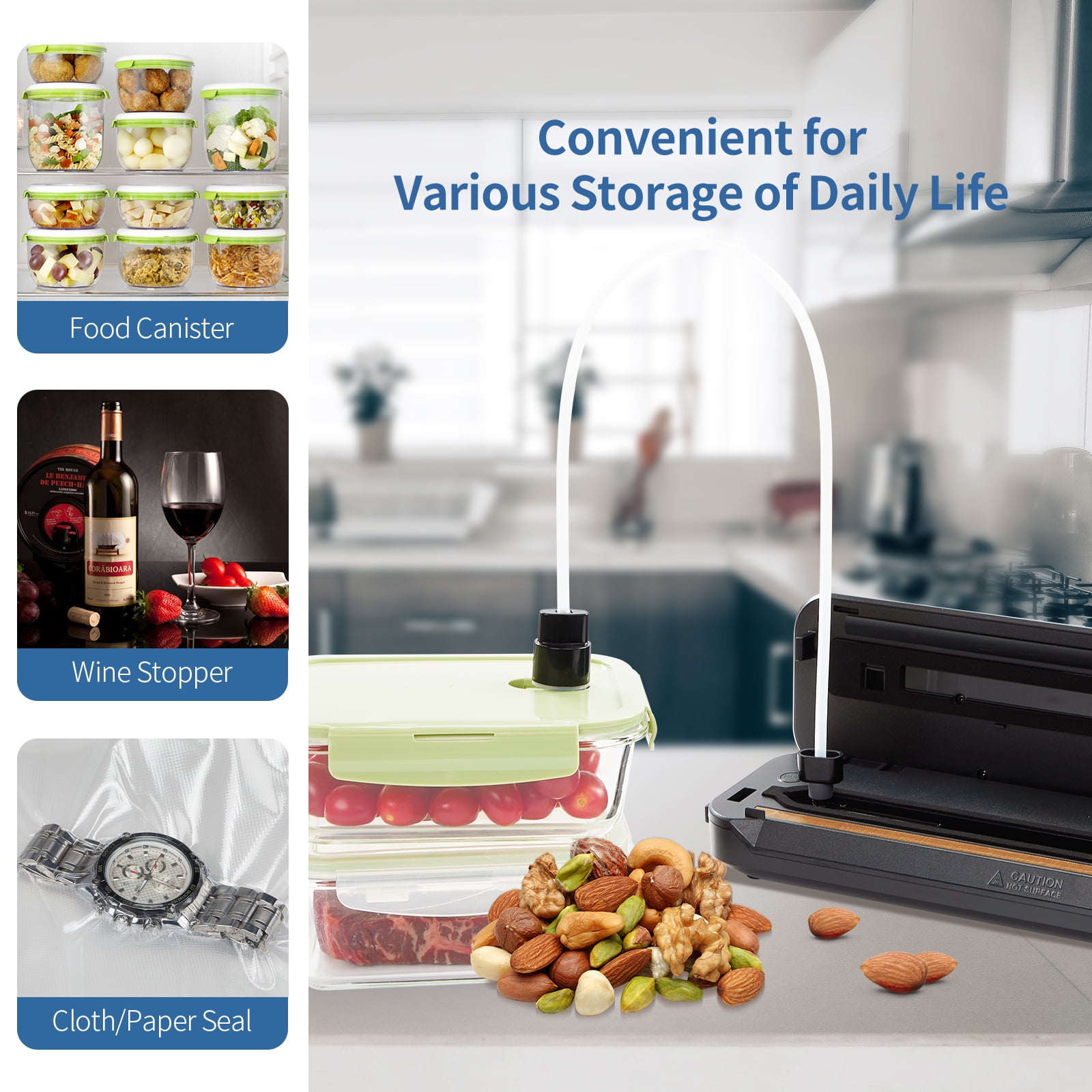 ➤Package Contents ✅Food Vacuum Sealer*1 ✅Air Suction Hose*1 ✅8″x11.8″ Sealer Bag*5 ✅8″x79″ Bag Roll*1 ✅User Manual*1 ✅Specifications ■ Model: INK – VS01 ■ Size: 38210462mm/15.04in4.09in2.44in ■ Net Weight: 1.05kg/37.04oz ■ Gross Weight: 1.33kg/46.91oz ■ Rated Frequency: 50Hz – 60Hz ■ Rated Power: 110V ■ Sealing Time: 8 – 12 Seconds ■ Vac/Seal Time: 10 – 20 Seconds ■ Vacuum Level: – 80kPa ■ Waterproof: Not waterproof ■ Scene: Sous Vide ✅7X Longer Preservation ✅Dual Sealing Modes & Cutter ✅Custom – Sized Bag Compatibility ✅Wide – Range Usability & Ease – of – Use ✅Complete Starter Kit