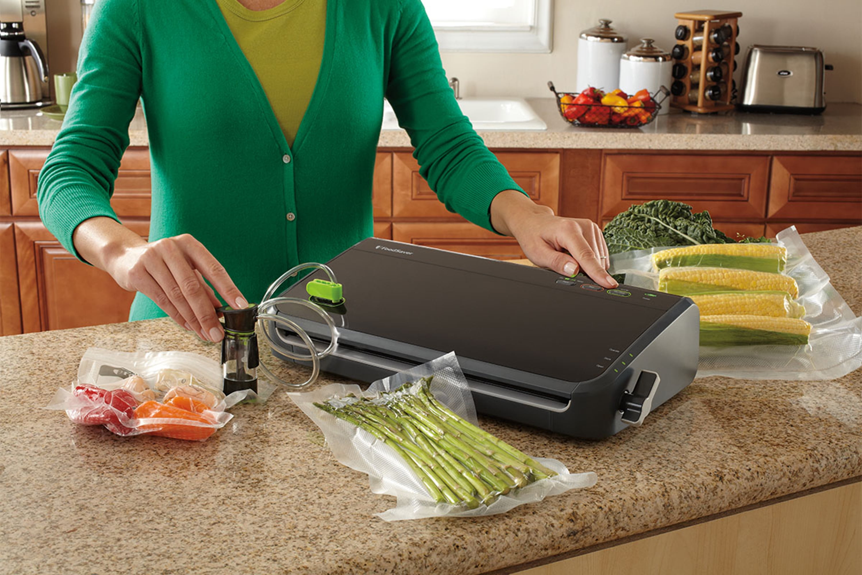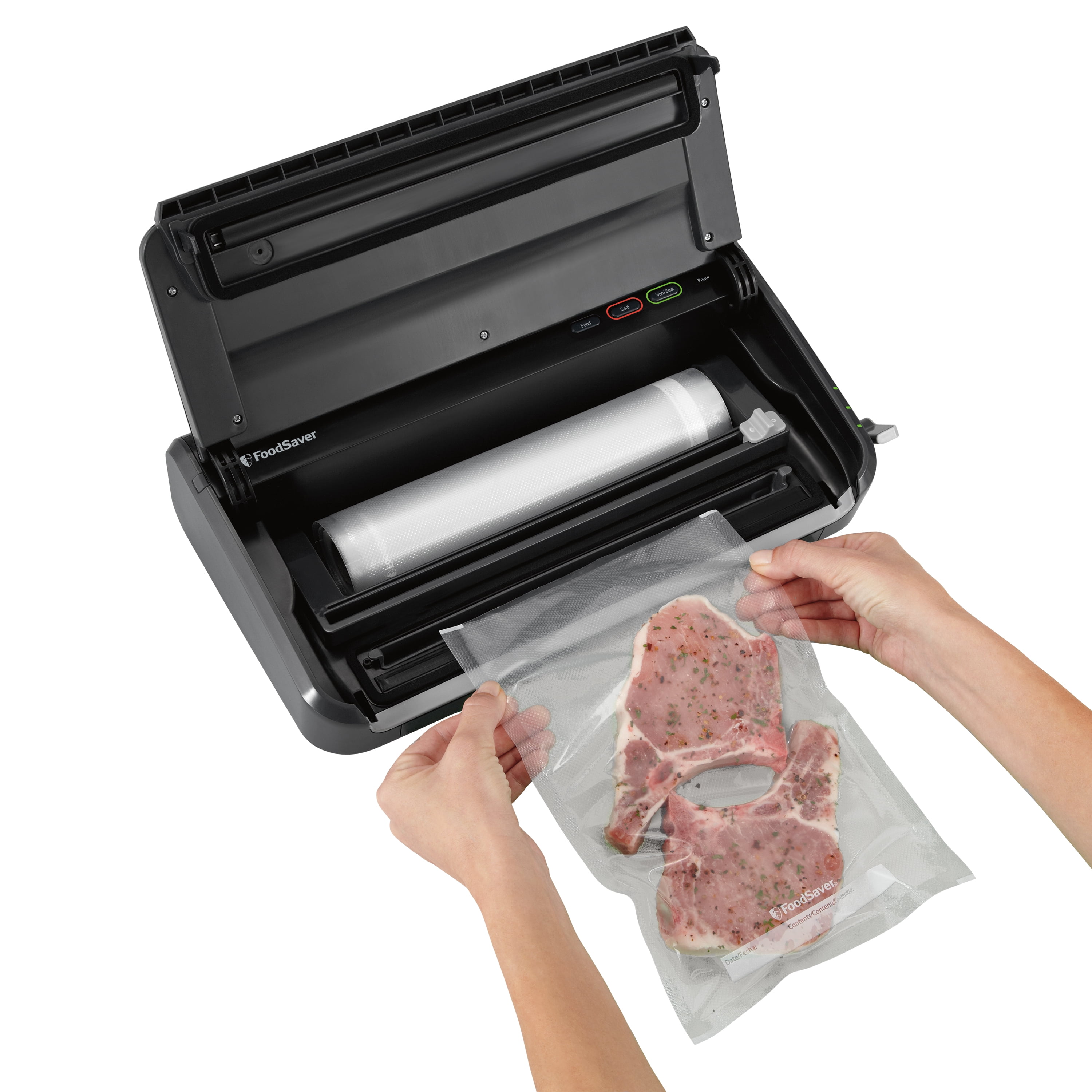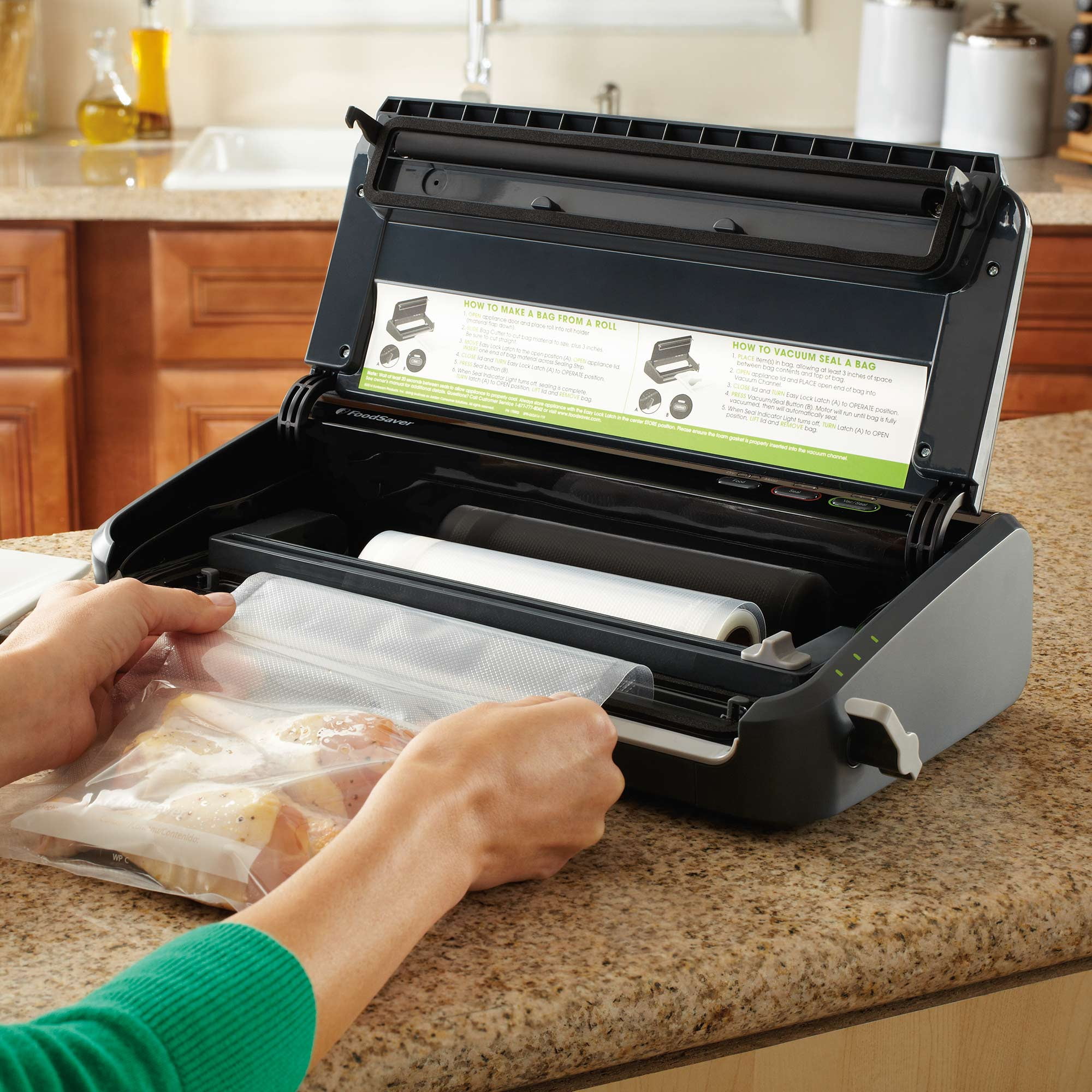 Keep food fresh in the freezer up to 5x longer and in the fridge or pantry up to 2x longer, compared to ordinary storage methods Features technology that uses 40% less bag material when compared to traditional FoodSaver vacuum sealer models Convenient rolls storage keeps your counters neat while the integrated roll cutter lets you make custom-sized bags
