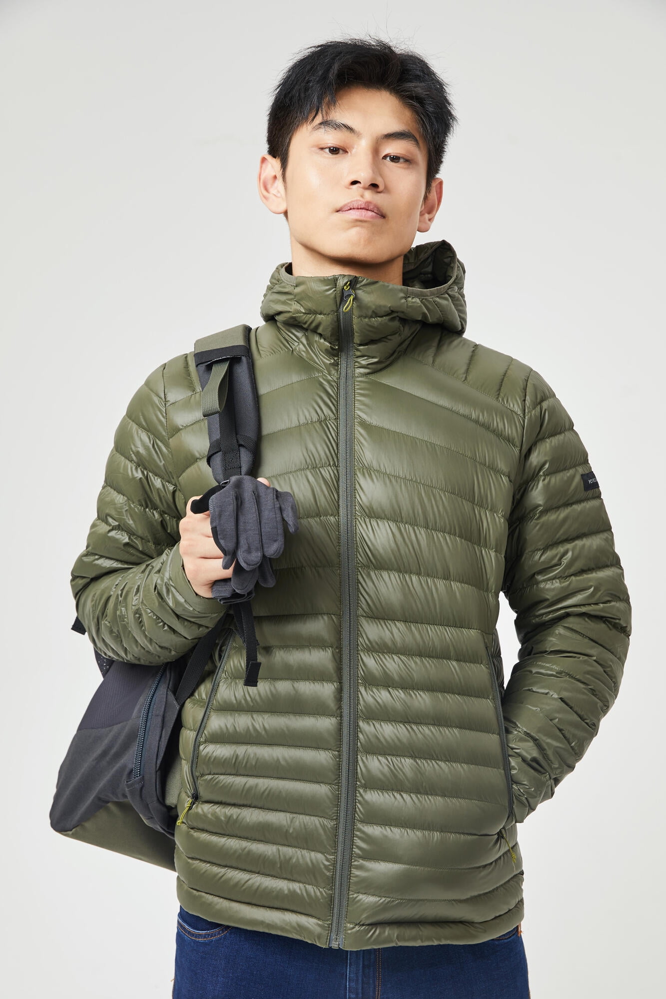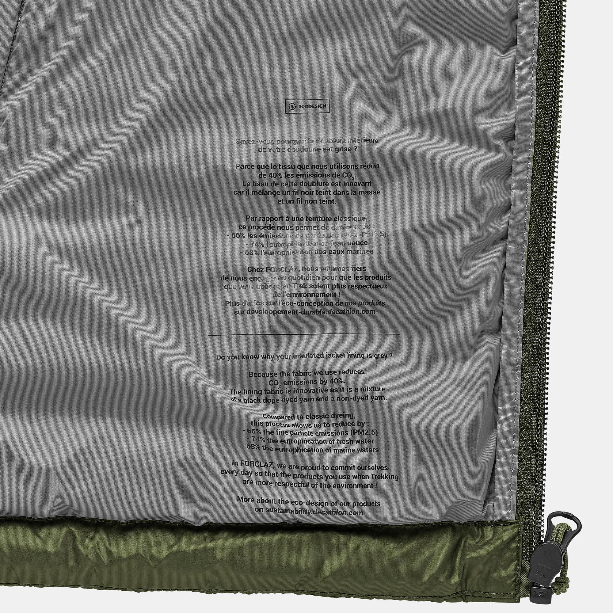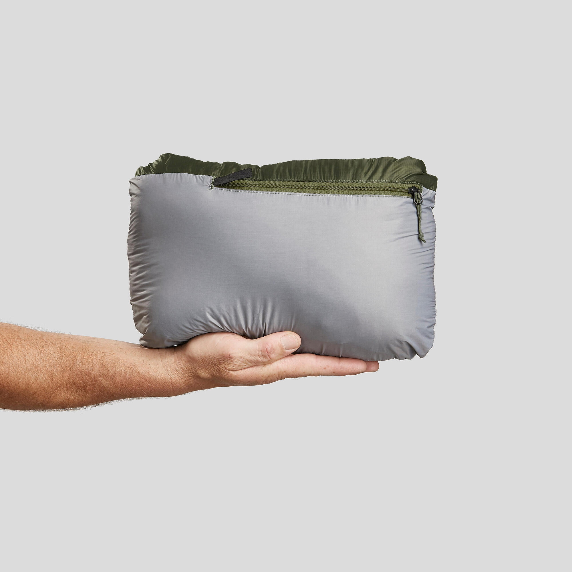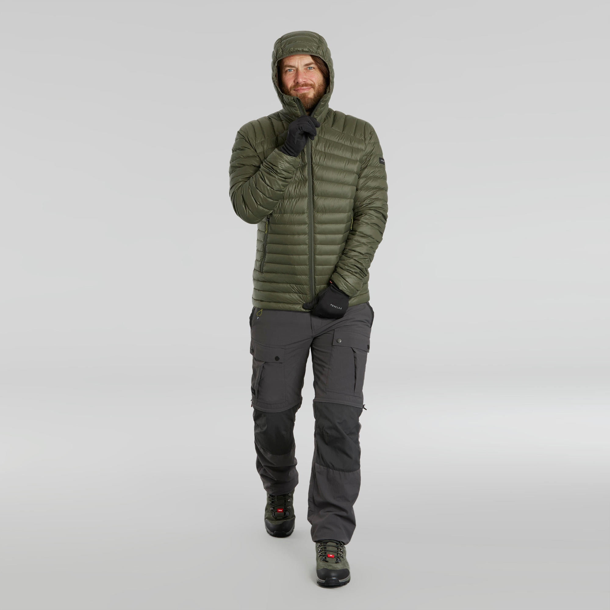 Decathlon Forclaz Trek 100, 23°F Real Down Packable Puffer Backpacking Jacket, Men’s, Green, Small Warmth Comfortable between 23°F and 41°F. RDS ethical down with a fill power of 800 CUIN. Worn as a 3rd layer, it has been certified for an active comfort temperature of 23°F during a standardized test in a thermal chamber. Compact design/Weight of the fill It easily folds away into its left-hand pocket using a zipper with a double pull. XS: 2.7 oz. S: 2.9 oz. M: 3.1 oz. L: 3.3 oz. XL: 3.5 oz. 2XL: 4 oz. Water repellent Surface-treated outer fabric to prevent water from getting in. The water-repellent property of a fabric is its ability to make water run off its surface without absorbing it. We recommend wearing a waterproof jacket if exposure to rain prolongs. We recommend that you restore it after each wash. Down benefits Thermal insulation is provided by the air trapped in the down and feathers. Ultra-low weight: Down is lighter than synthetic fill while offering the same degree of warmth. This saves even more weight in your backpack. Ultra-compressible. Caring for your jacket 1. Machine wash, 30°F, with 2 or 3 tennis balls. Gentle spin cycle. 2. Tumble dry with 2 or 3 tennis balls. Repeat 2 or 3 times until it is completely dry.