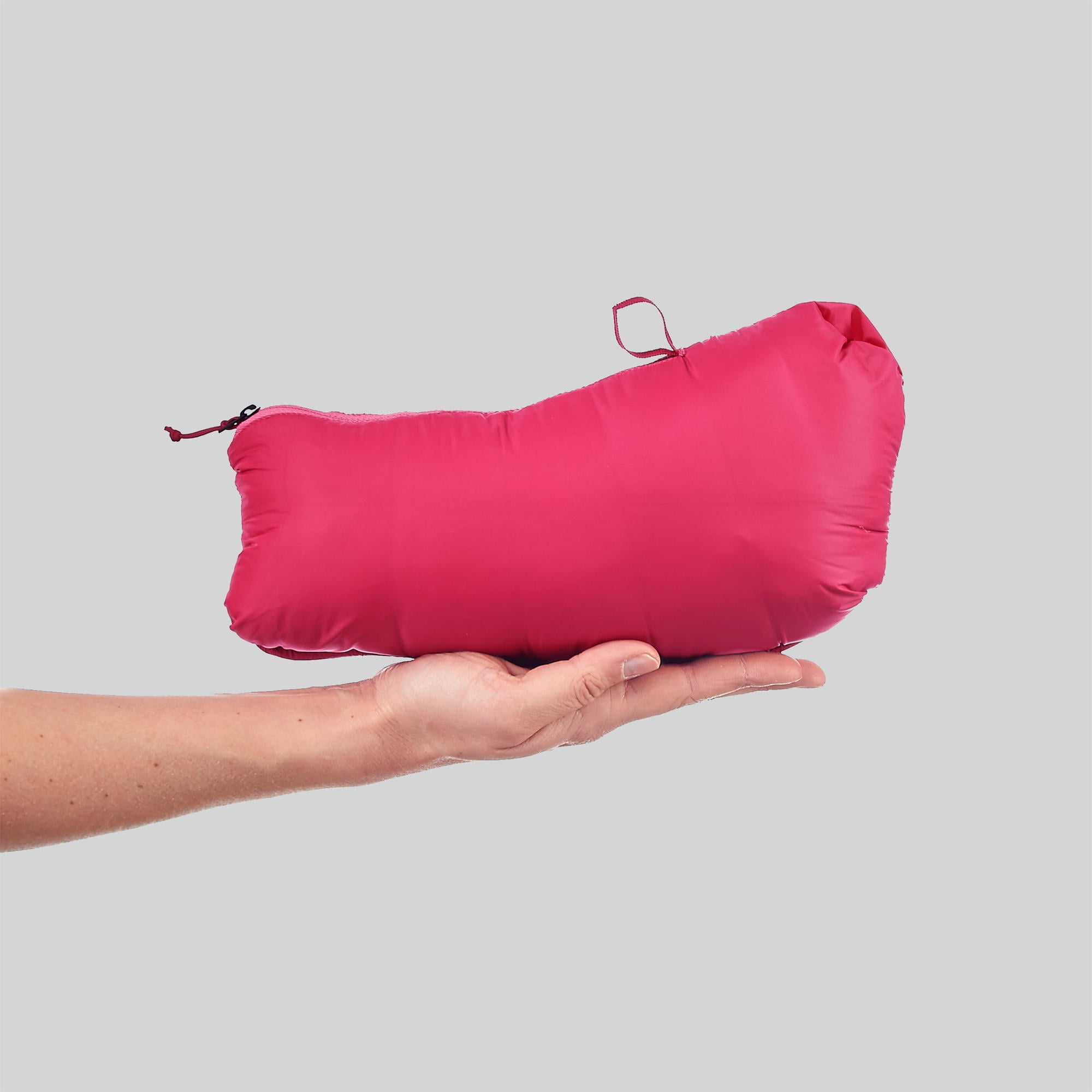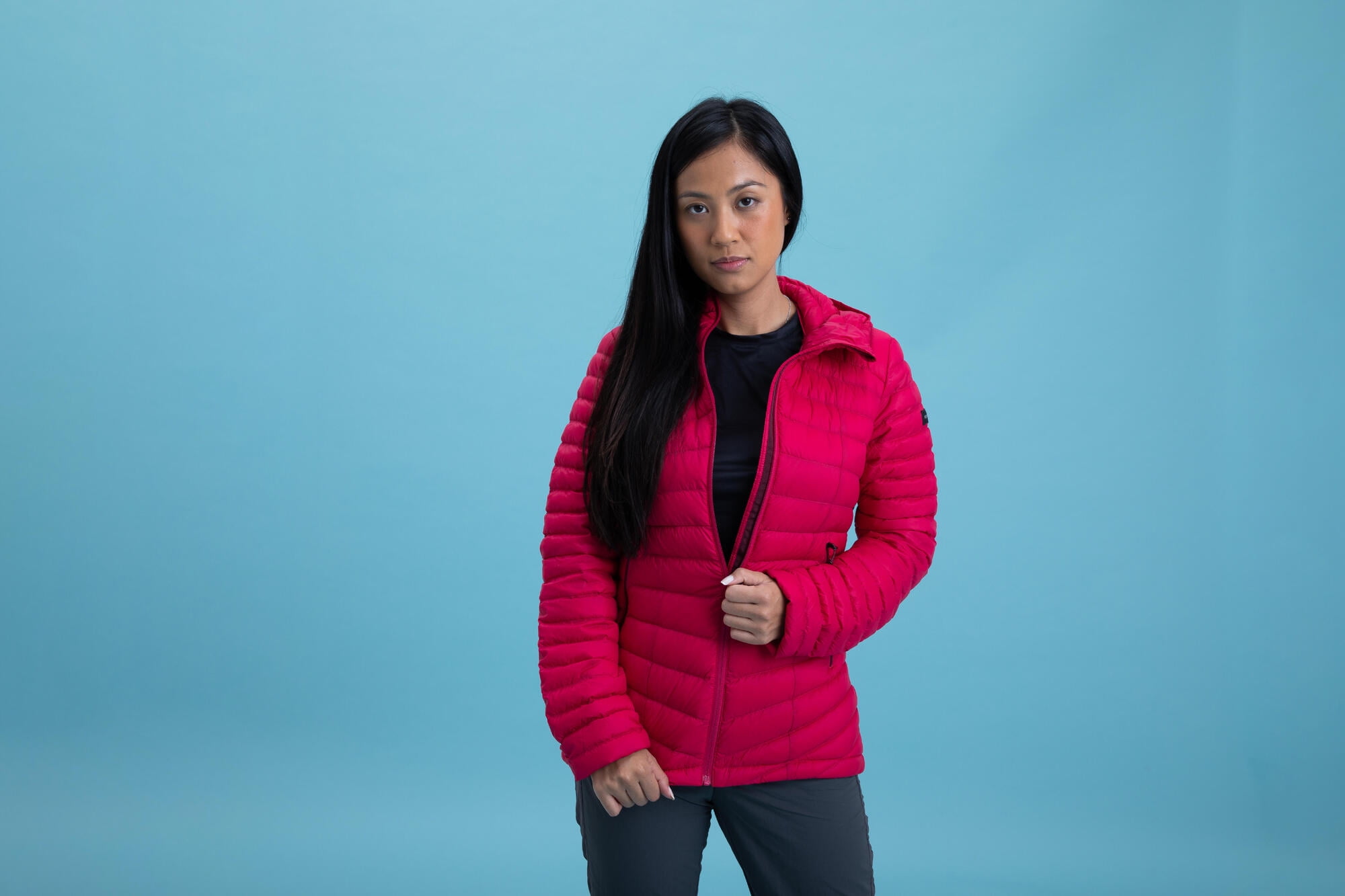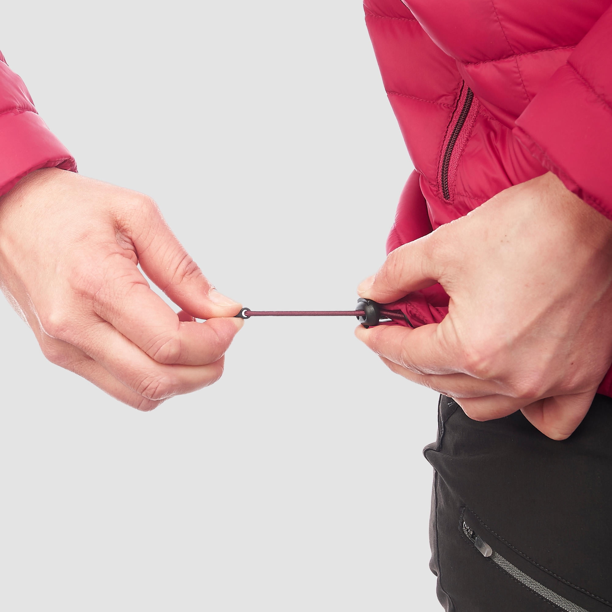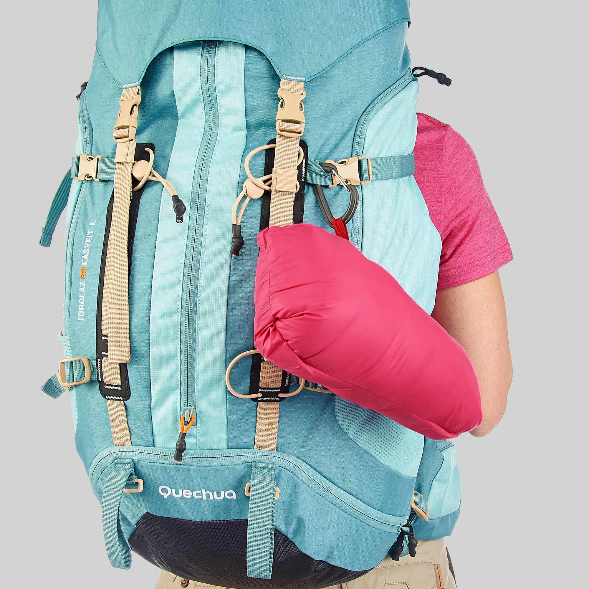 Decathlon Forclaz Trek 100, 23°F Real Down Packable Puffer Backpacking Jacket, Women’s, Pink, Large Warmth The pufferer jacket is comfortable between 23°F and 41°F RDS ethical down with a fill power of 800 CUIN. Worn as a 3rd layer, it has been certified for an active comfort temperature of 23°F during a standardized test in a thermal chamber. Compact design/Weight of the fill Easily folds away into its left-hand pocket using a zipper with a double pull. XXS: 2.5 oz. XS: 2.6 oz. S: 2.9 oz. M: 3.1 oz. L: 3.3 oz. XL: 3.5 oz. Water repellent Surface-treated outer fabric to prevent water from getting in. The water-repellent property of a fabric is its ability to make water run off its surface without absorbing it. We recommend wearing a waterproof jacket over if exposure to rain prolongs. We recommend that you restore it after each wash. Down benefits Thermal insulation is provided by the air trapped in the down and feathers. Ultra-low weight: Down is lighter than synthetic fill while offering the same degree of warmth. This saves even more weight in your backpack. Ultra-compressible. Caring for your jacket 1. Machine wash, 30°F, with 2 or 3 tennis balls. Gentle spin cycle. 2. Tumble dry with 2 or 3 tennis balls. Repeat 2 or 3 times until it is completely dry.