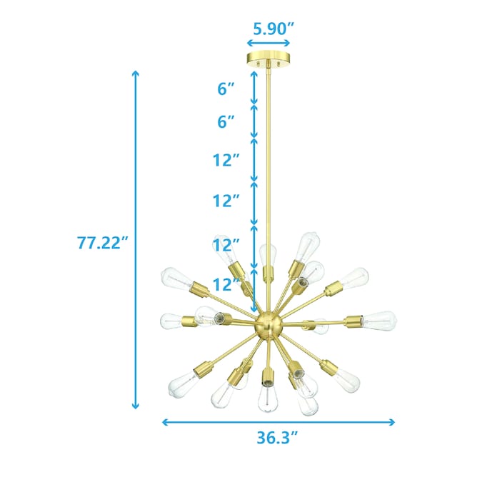 - Farmhouse and contemporary styles: the charming 18-light interior sputnik chandelier in a soft gold finish matches any contemporary style room, in addition the fixture matches any farmhouse style room
