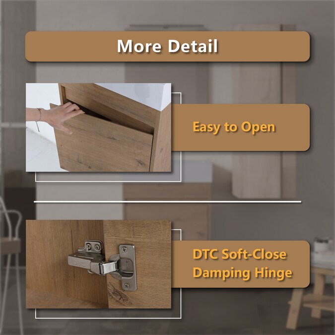 - Quiet-Close Vanity with Ergonomic Design: Our vanity is designed with a soft-closing mechanism to ensure doors close quietly and gently, preventing slamming and extending the furniture’s lifespan; Additionally, it features a user-friendly 45° inclined edge, making the opening of drawers and doors more comfortable and effortless