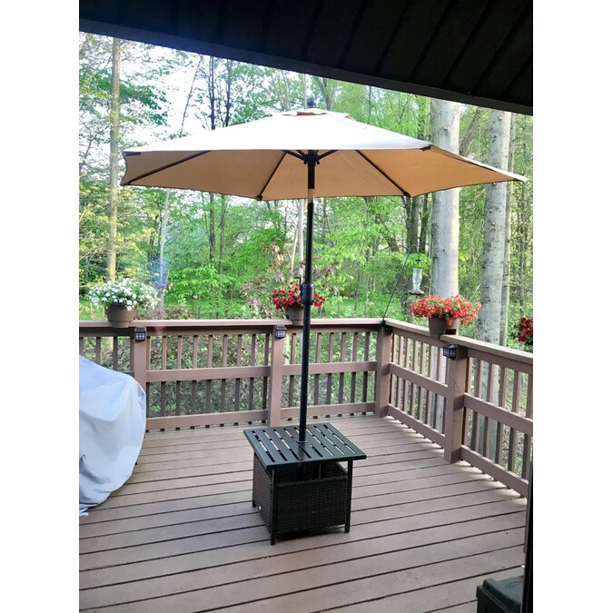 - There is storage underneath the tabletop which is made of premium artificial PE wicker and steel bottom, it’s originally used to hold the umbrella poles, and you can add additional sandbags on it to increase the overall stability of the structure