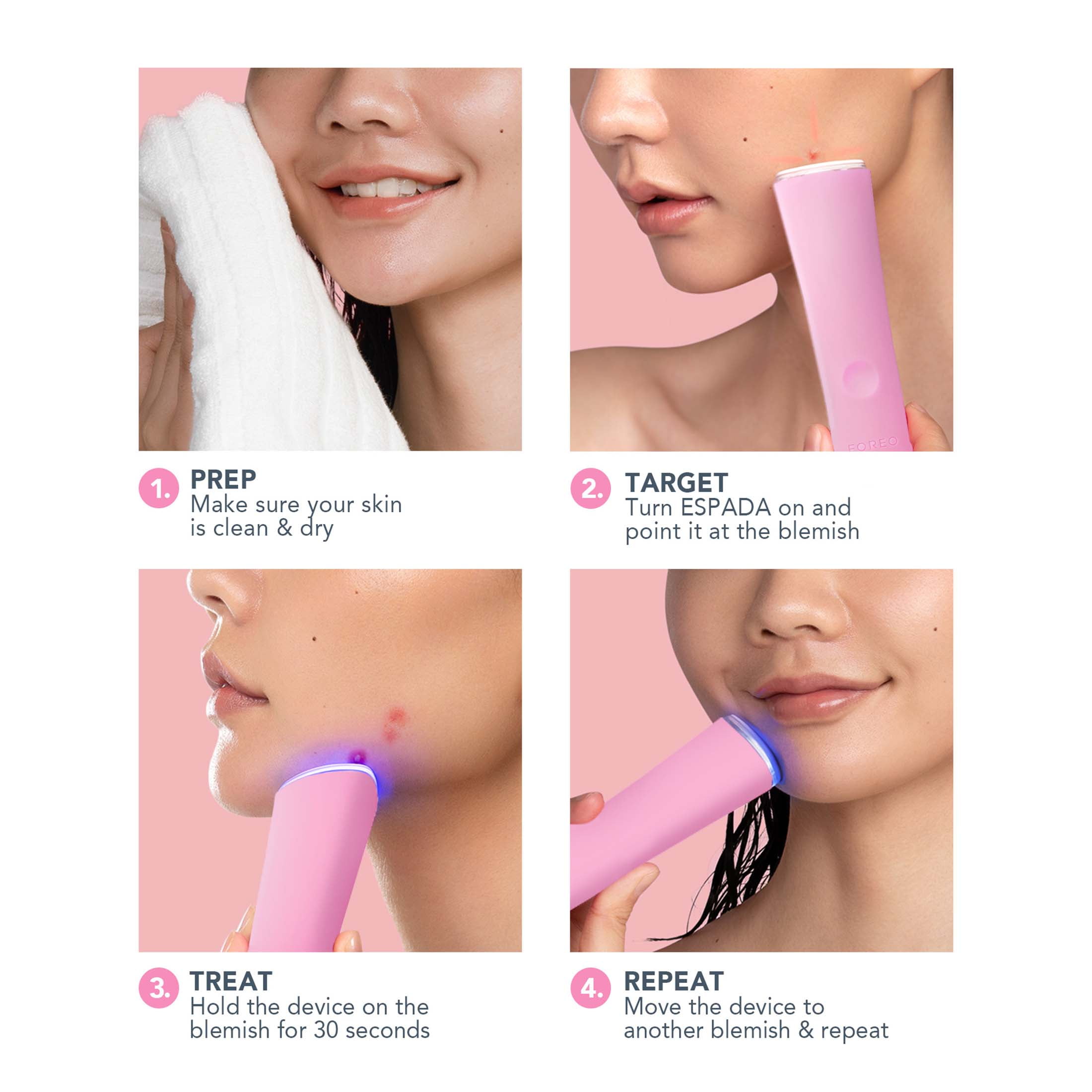 Foreo ESPADA Acne Clearing Blue LED Light Pen, Pink