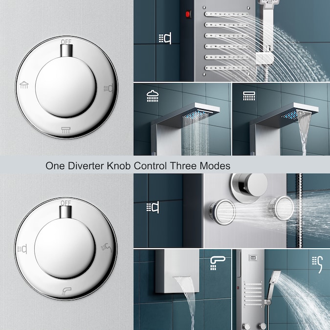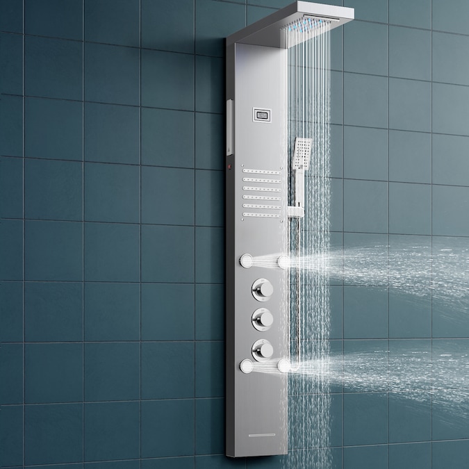Multi-functional shower panel from takes an all-in-one shower system-wall mounted design with a timeless stainless steel design that complements modern bathroom design. This multi-functional shower system has a variety of showering options to choose from, including a rain and waterfall LED overhead showerhead, a 3-mode handheld wand, and an adjustable body sprayer, and all shower functions work independently as well as multi-outlet switches to control a variety of combinations of water effects. In addition, the all-in-one shower system design includes a waterfall tub spout that makes it easy to fill the tub or bathtub shower space. If you’re looking for a comfortable shower, the can definitely fulfill your needs.