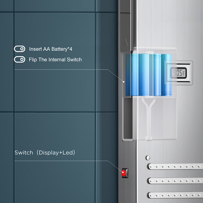 - The display shows the temperature directly to help you monitor the water temperature at all times,LED and temperature display work by batteries The shower panel reaching a max temperature of 176 °s Fahrenheit and the recommended hot water temperature of 149 °s Fahrenheit.
