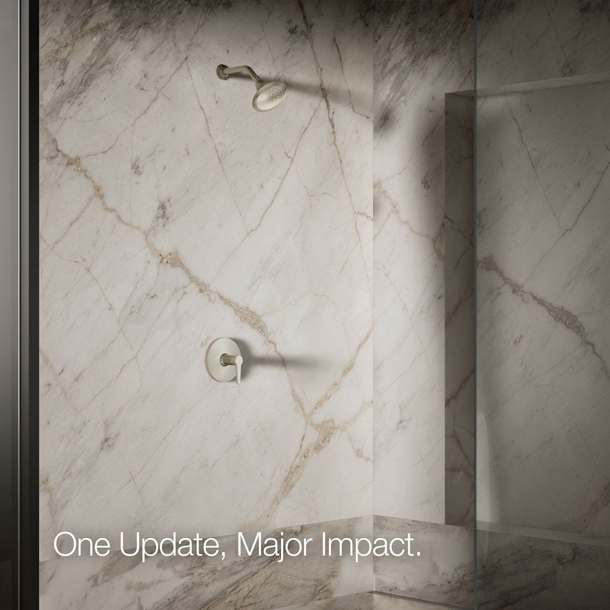 This Forté single-function showerhead brings innovation to your bathroom with Katalyst, a cutting-edge technology that intensifies the flow of water for a completely indulgent showering experience. With a new nozzle pattern, internal waterway design, and air-induction system, this technology maximizes every water drop and creates a richer, more intense flow of water that heightens the shower’s sensory experience. By infusing two liters of air per minute, Katalyst delivers a powerful, voluptuous spray that clings to the body with larger, fuller water drops.