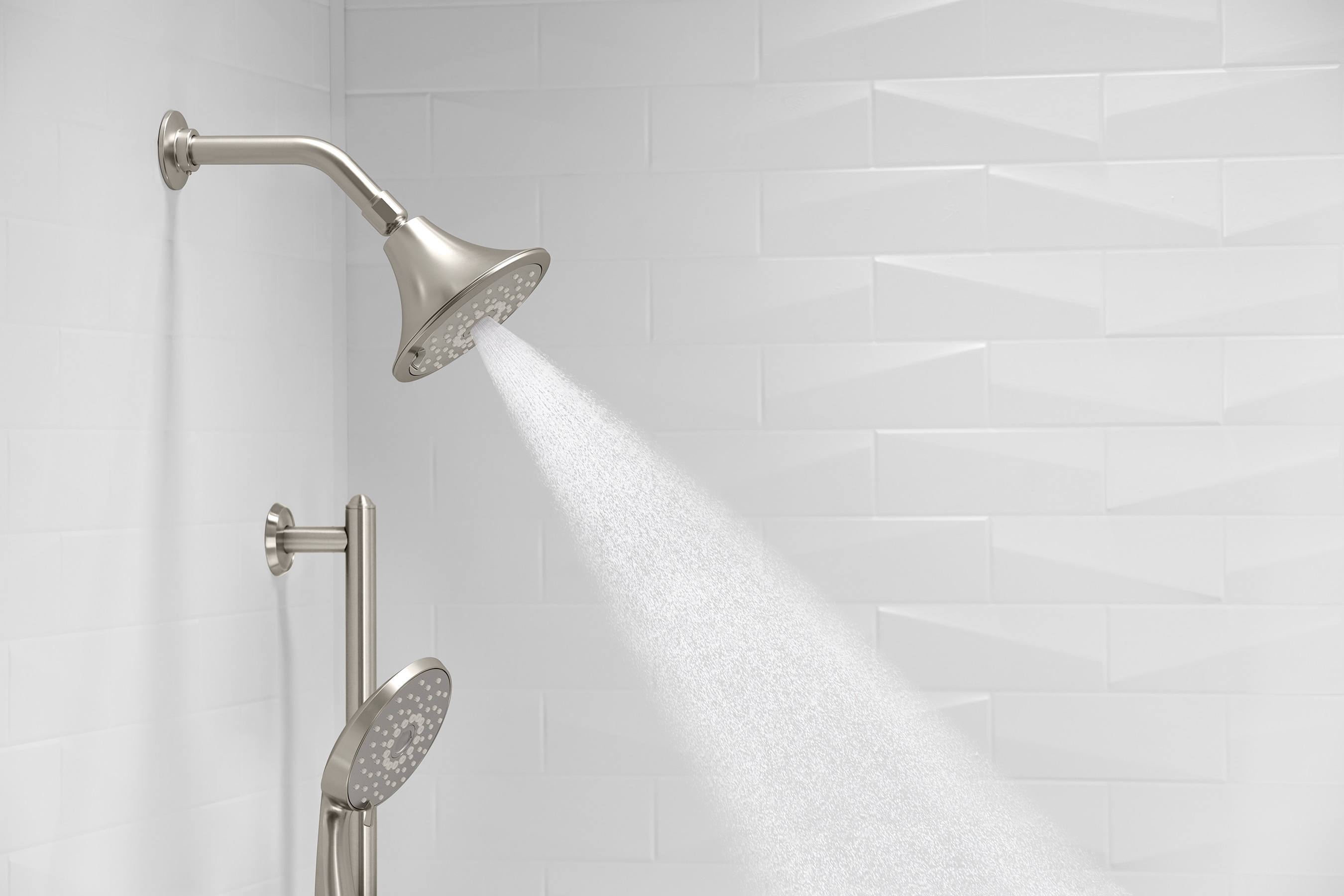 Bringing classic style to your bathroom, this Forte multifunction showerhead provides three distinct sprays – full coverage, pulsating massage, or silk spray – all enhanced with Katalyst technology for a completely indulgent showering experience. By infusing two liters of air per minute, Katalyst delivers a powerful, voluptuous spray that clings to the body with larger, fuller water drops.