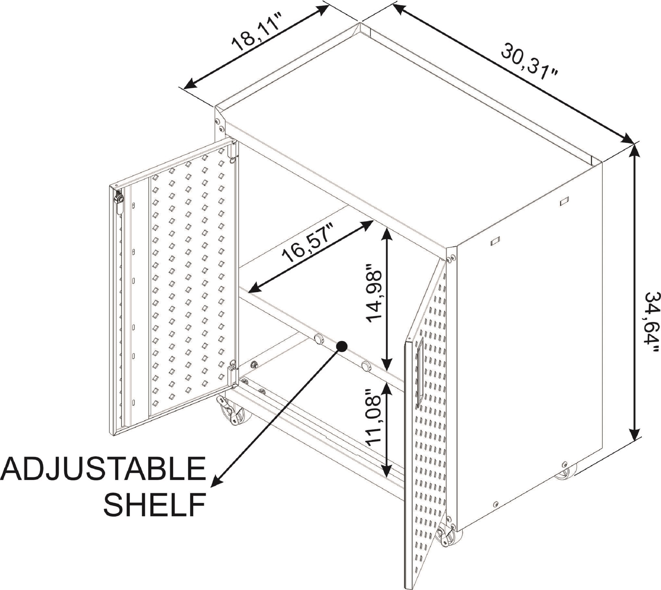 The Fortress 31.5 Mobile Garage Cabinet with Shelves, features an adjustable shelf and two doors to help keep items safe and organized. Perfect for storing garage tools and accessories, stainless swivel casters allow for easy mobility and a door lock and key protect tools from tarnishing. Durable and built to last, this piece is a highly functional unit that belongs in any garage.