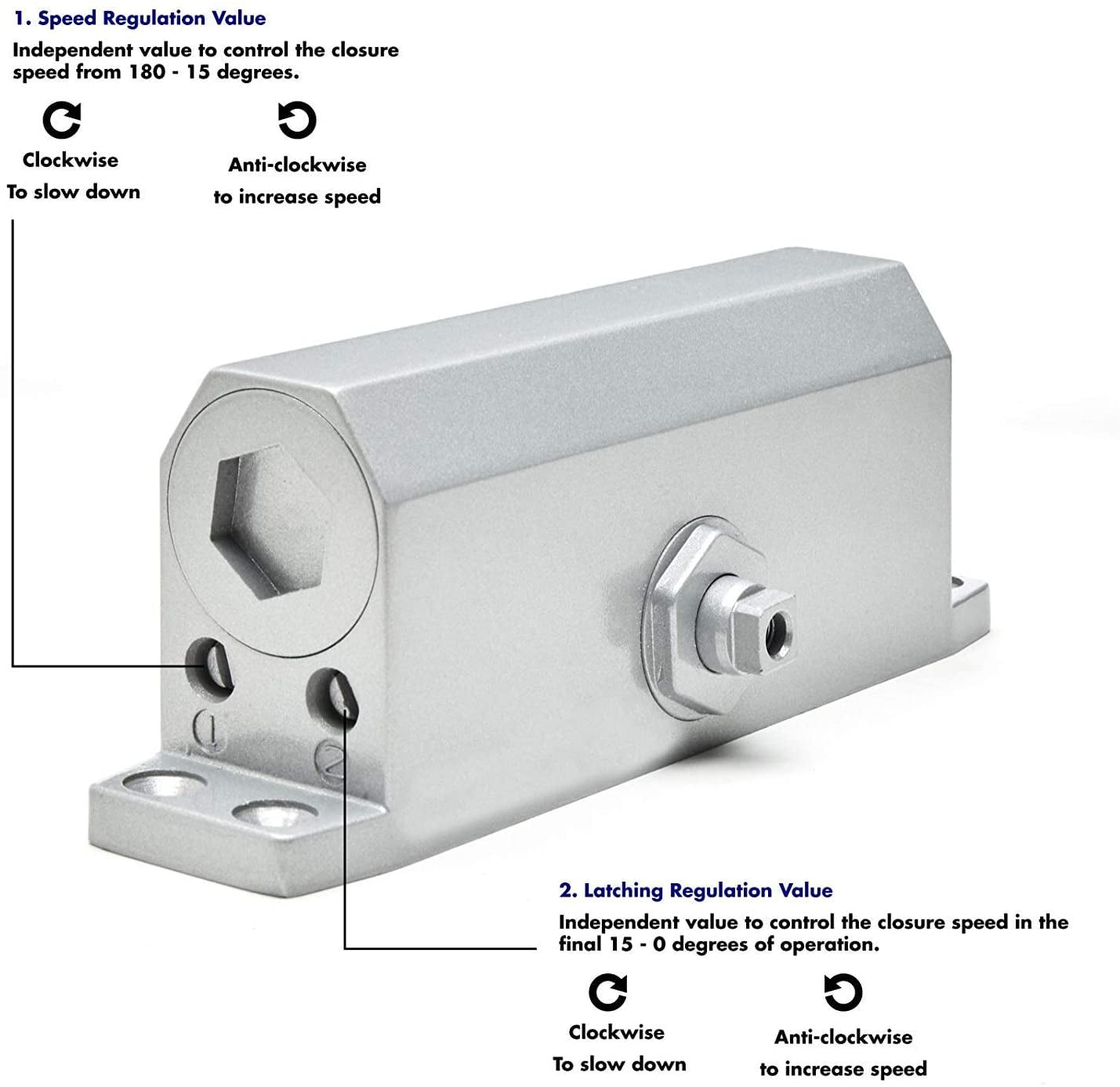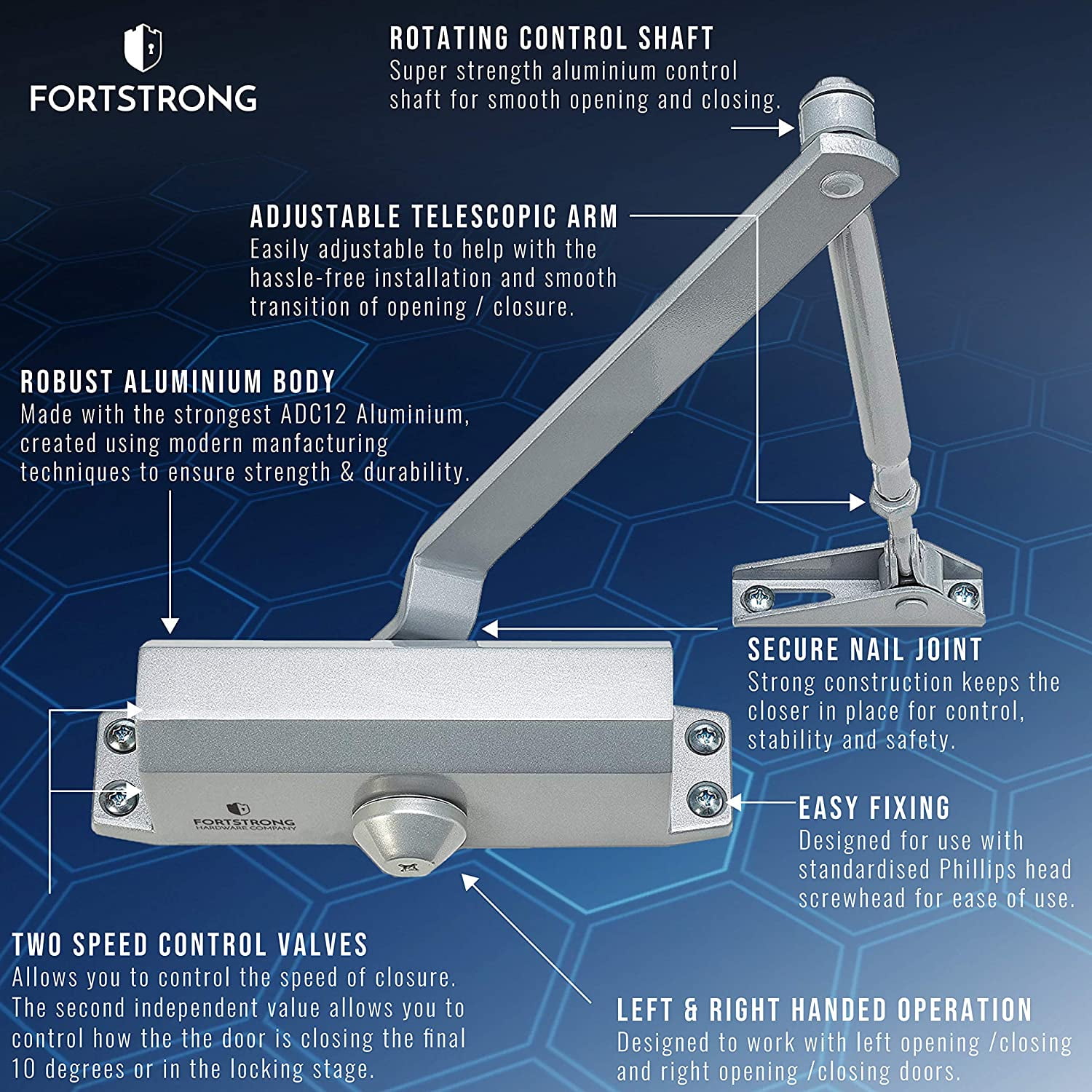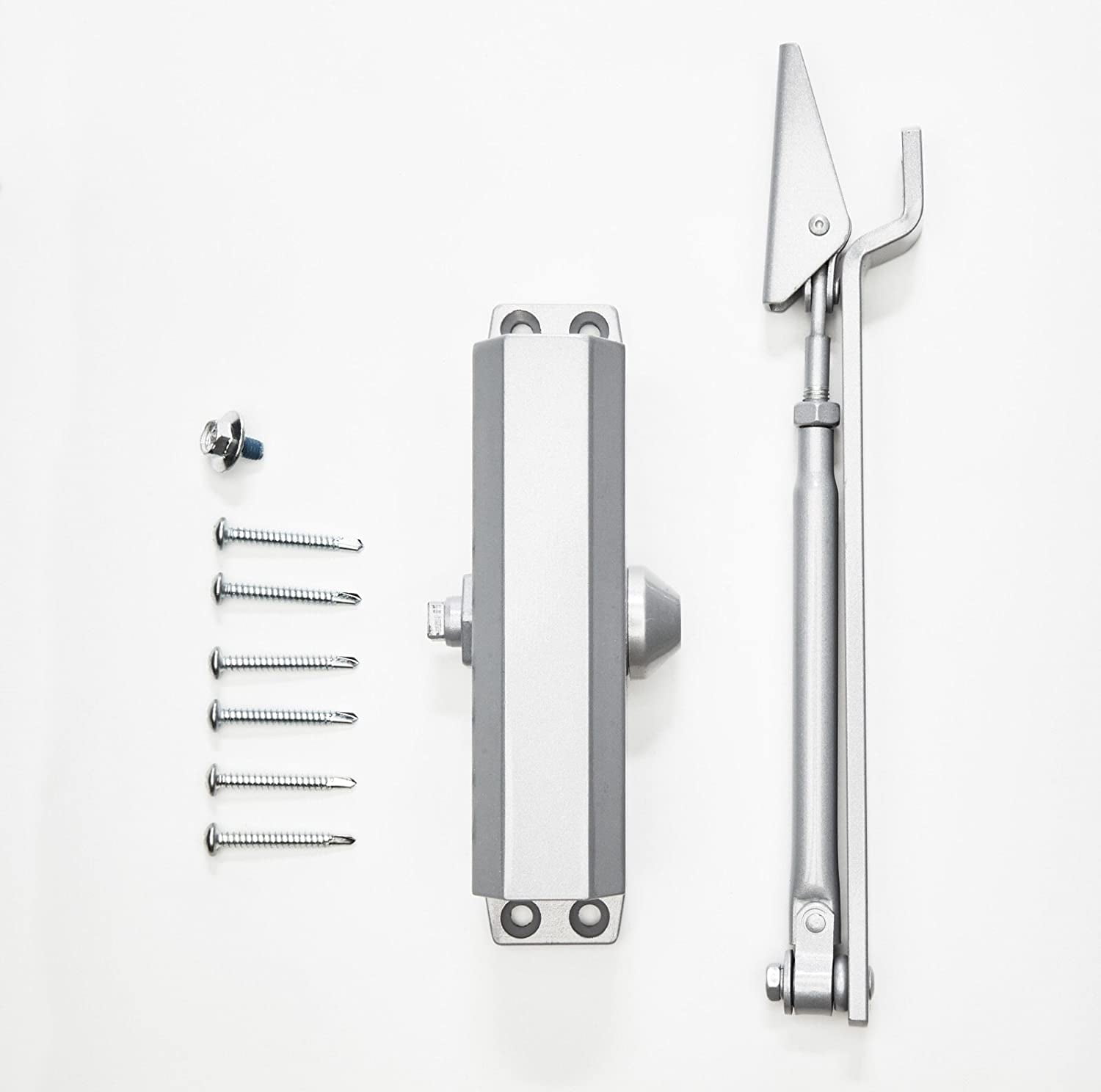 Tested And Approved: Don’t let the door hit you on the way out. Our hydraulic door closer is built to close consistently and securely and has been tested by 500,000 open-close cycles Fully Adjustable: With two independent valves, you can adjust both the sweep motion and the catch-closing mechanism of your door arm closer, so you can set the opening force and closing speed of your door Easy to Install: Each of our hydraulic door closers come with a detailed guide that includes a fitting template, saving you time and a trip to the general contractor. Watch our exclusive installation video for additional instruction Everything You Need in One Box: Our FS-1306 anti-slam door closer comes with 6 wood/metal screws, a connecting arm, connecting arm nut, and end cap. No need for a hardware store run – we’ve got you covered