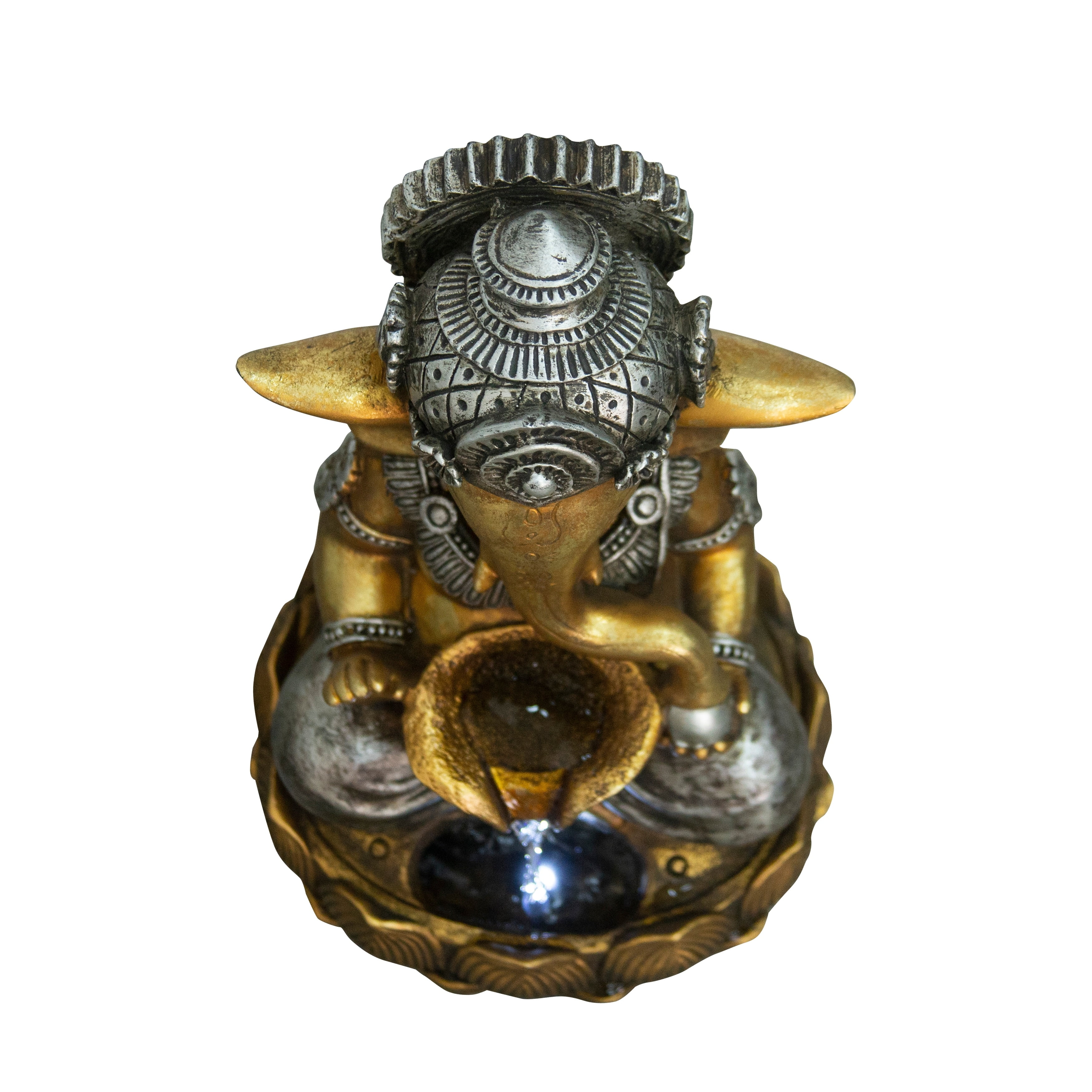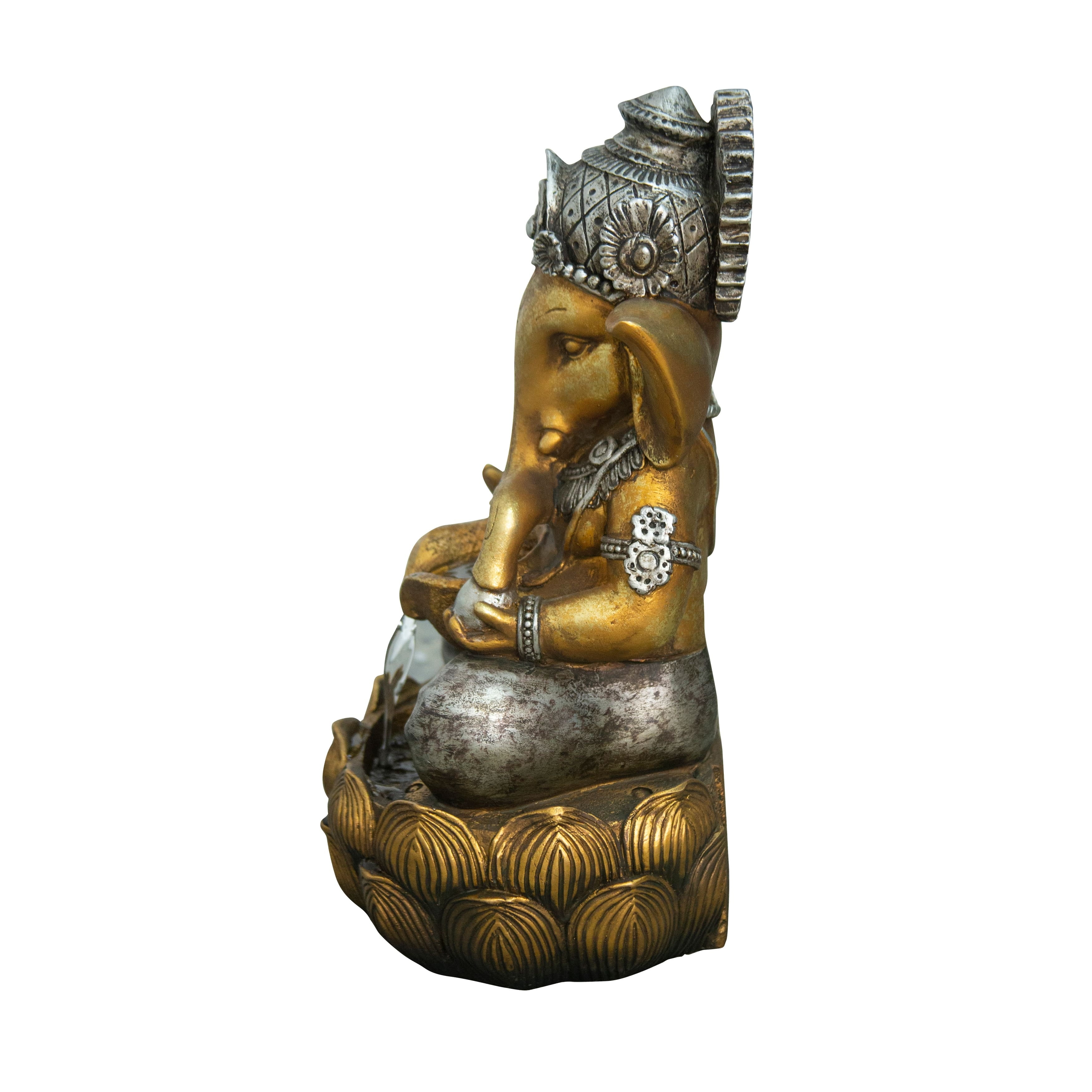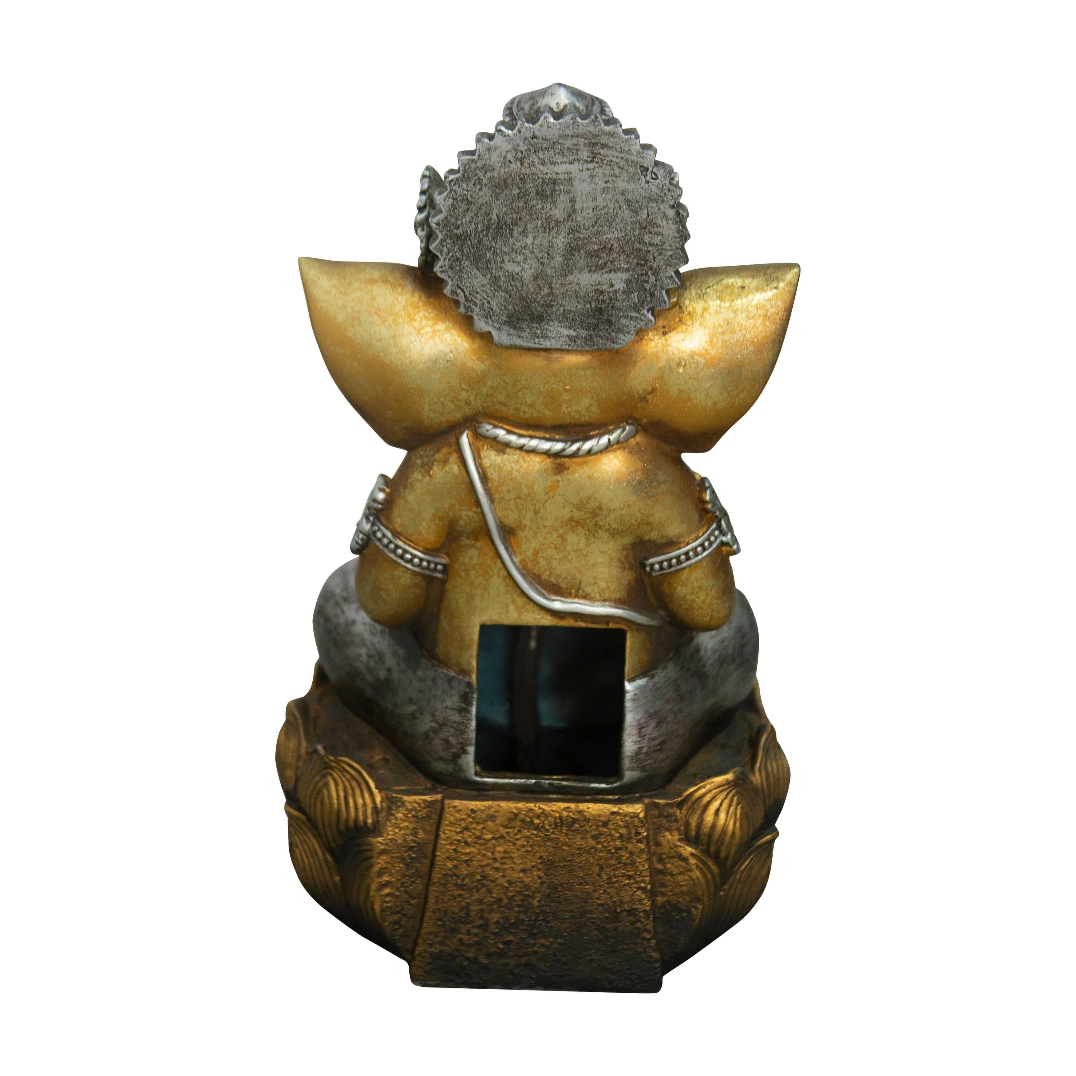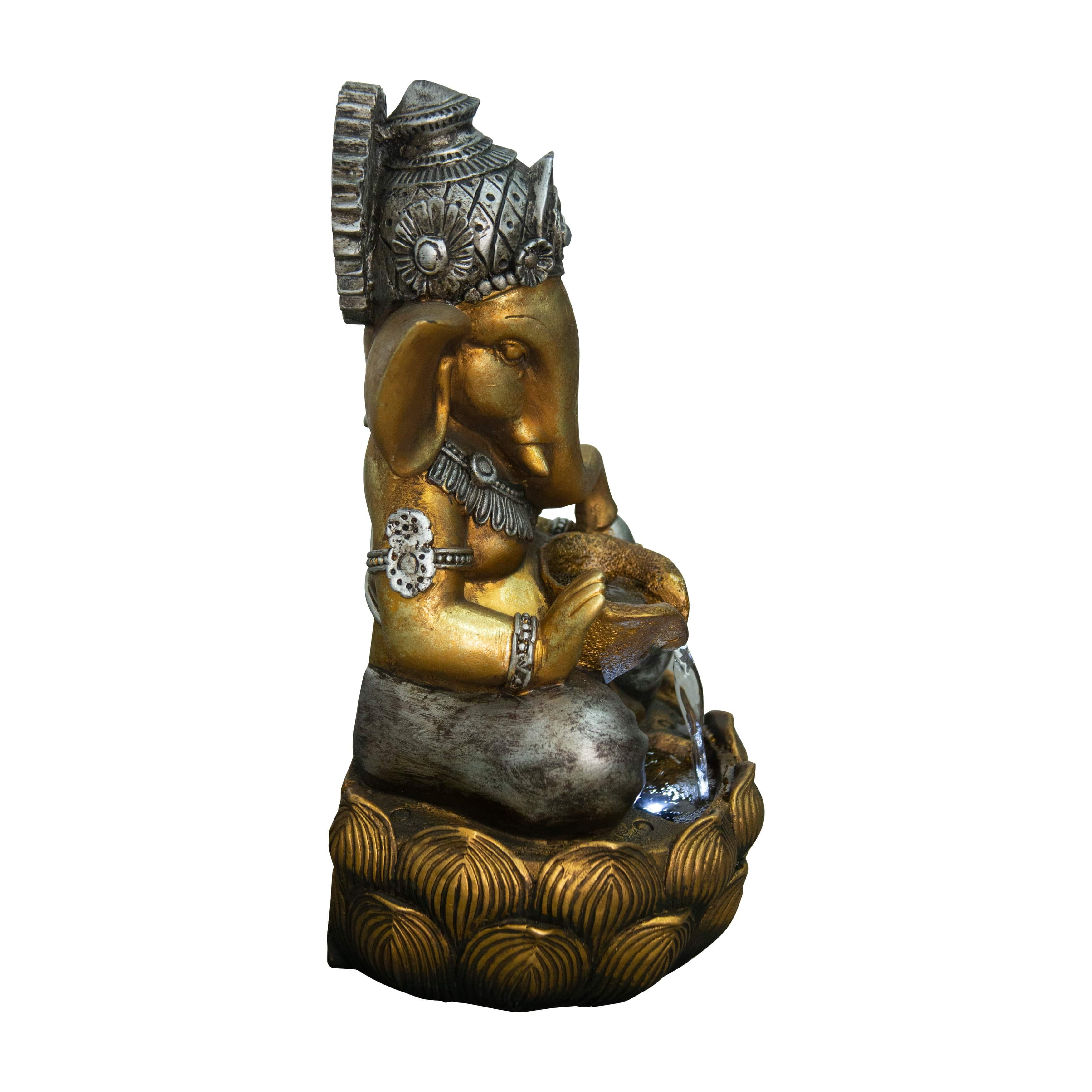 This Ganesha fountain is an intricately-detailed fountain and perfect for anyone! Features warm white LEDs, thie beautifully-crafted fountain is finished in a matte bronze colour. Includes a pump and made of durable polyresin.