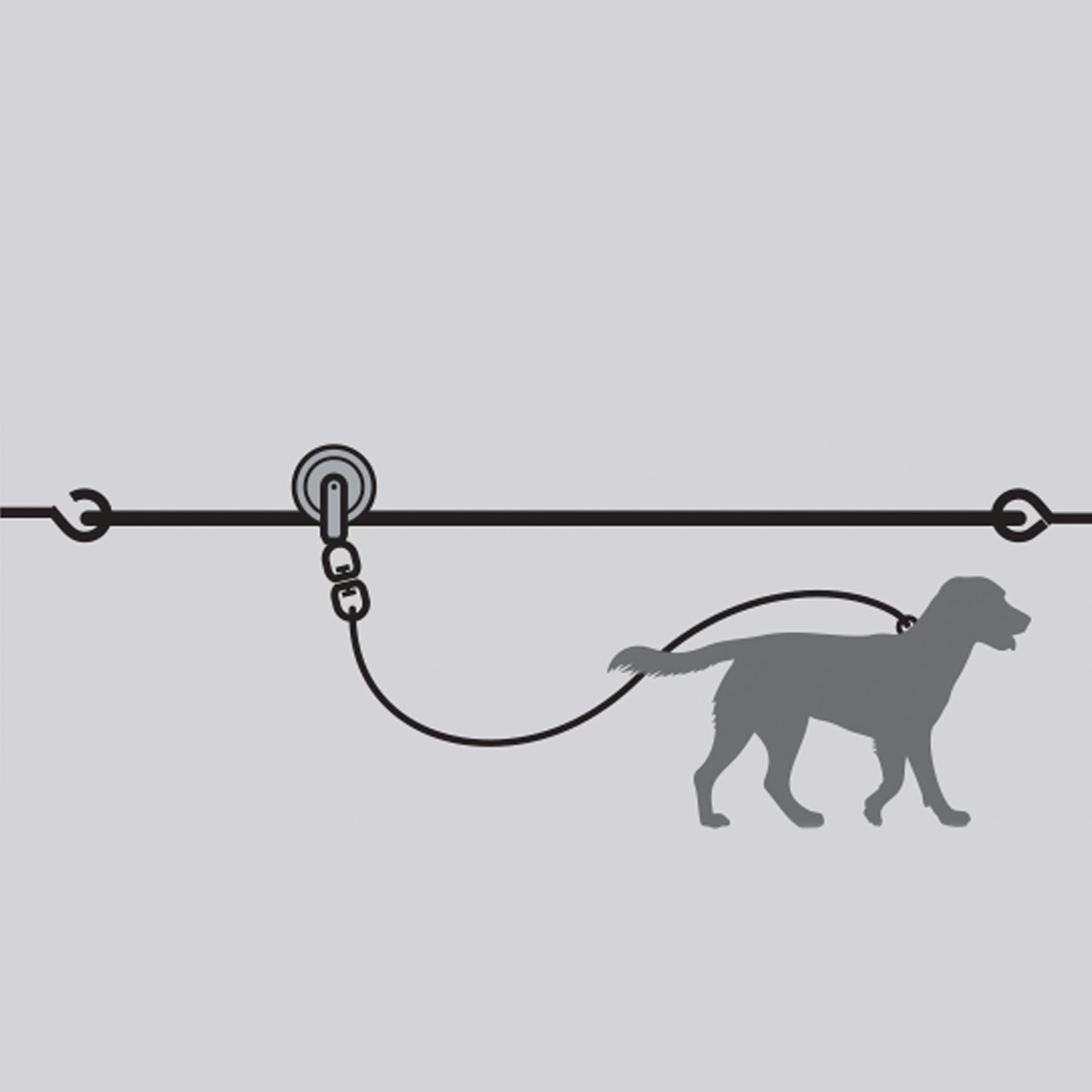 Outdoor dog cable made of durable, vinyl-coated aircraft cable Long-lasting, rust-proof dog tie out won’t fray Gives your dog freedom, safety & exercise Heavy duty dog cable with 10-ft pulley lead that supports dogs more than 50 lbs. 100-ft tie out cable for large dogs