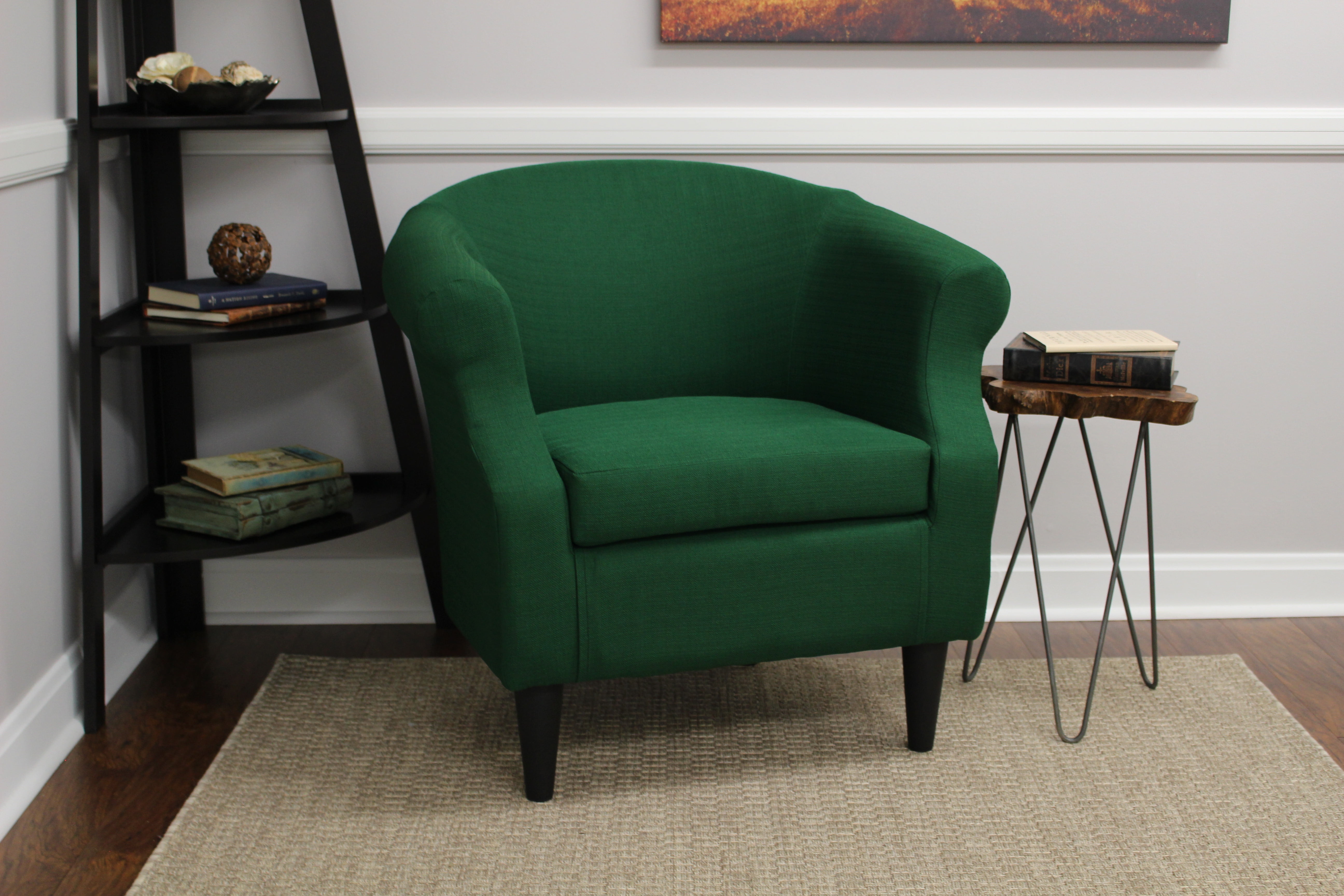 Fox Hill Nikole Club Chair, Multiple Colors: Easy assembly, simply screw on the legs Lightweight accent chair measures 32″H x 30.5″W x 27.5″D; 17.5″ seat height Easily clean with a damp cloth Premium polyester fabric Choose from available colors Frame is crafted of wood Tapered wooden legs Rolled arms and a removable seat cushion 25-year warranty Comfortable, deep bucket seat Mid-century modern feel