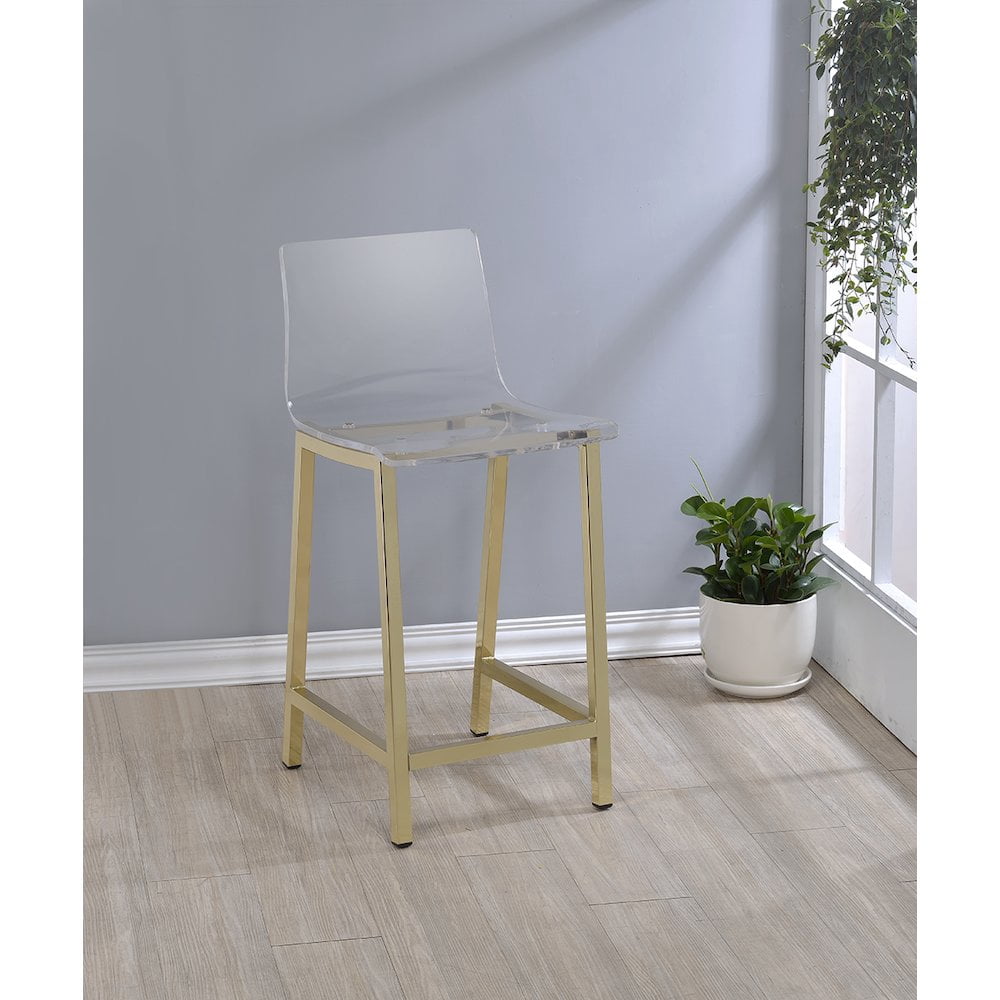 Fox Hill Trading Pure Decor 24″ Acrylic Metal Counter Stools in Gold (Set of 2)