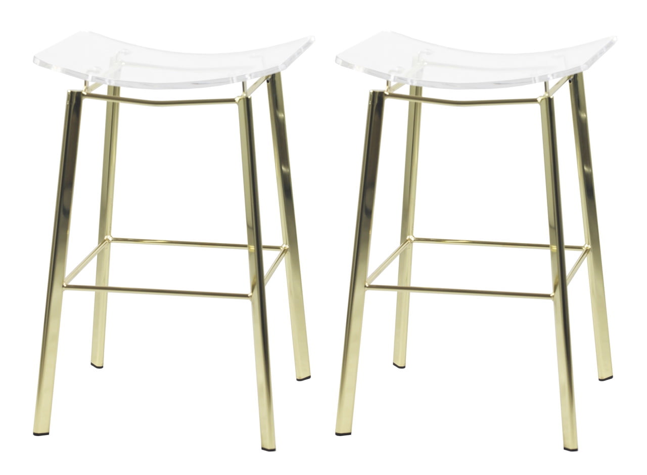 Fox Hill Trading Pure Decor Metal Barstools Saddle Seat Clear (Set of 2)