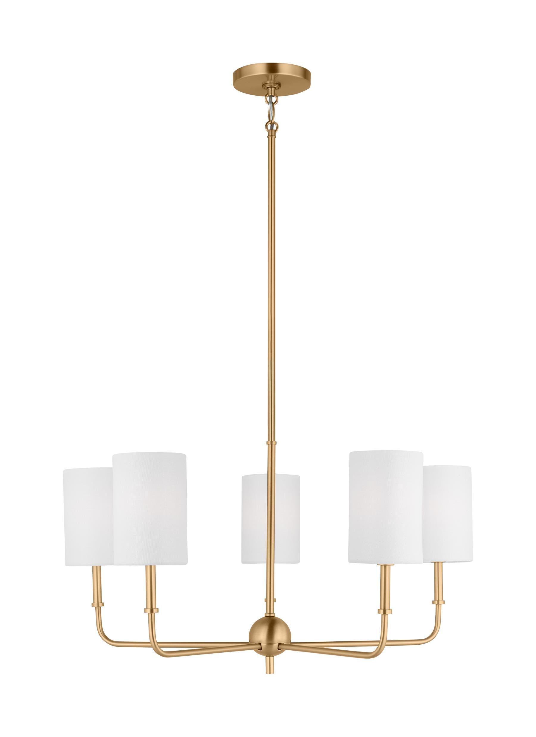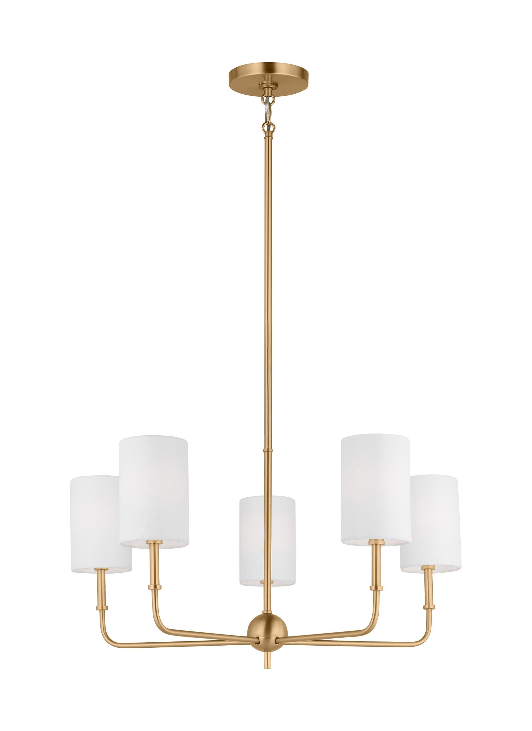 The Foxdale five light single tier chandelier in Satin Brass encompasses the new traditional style with flawless execution. Refined and clean-lined, this classic silhouette is timeless without being stuffy. Perfectly transitional, this collection can be placed in any home regardless of style. Topped with White Linen Shades to complete the design.
