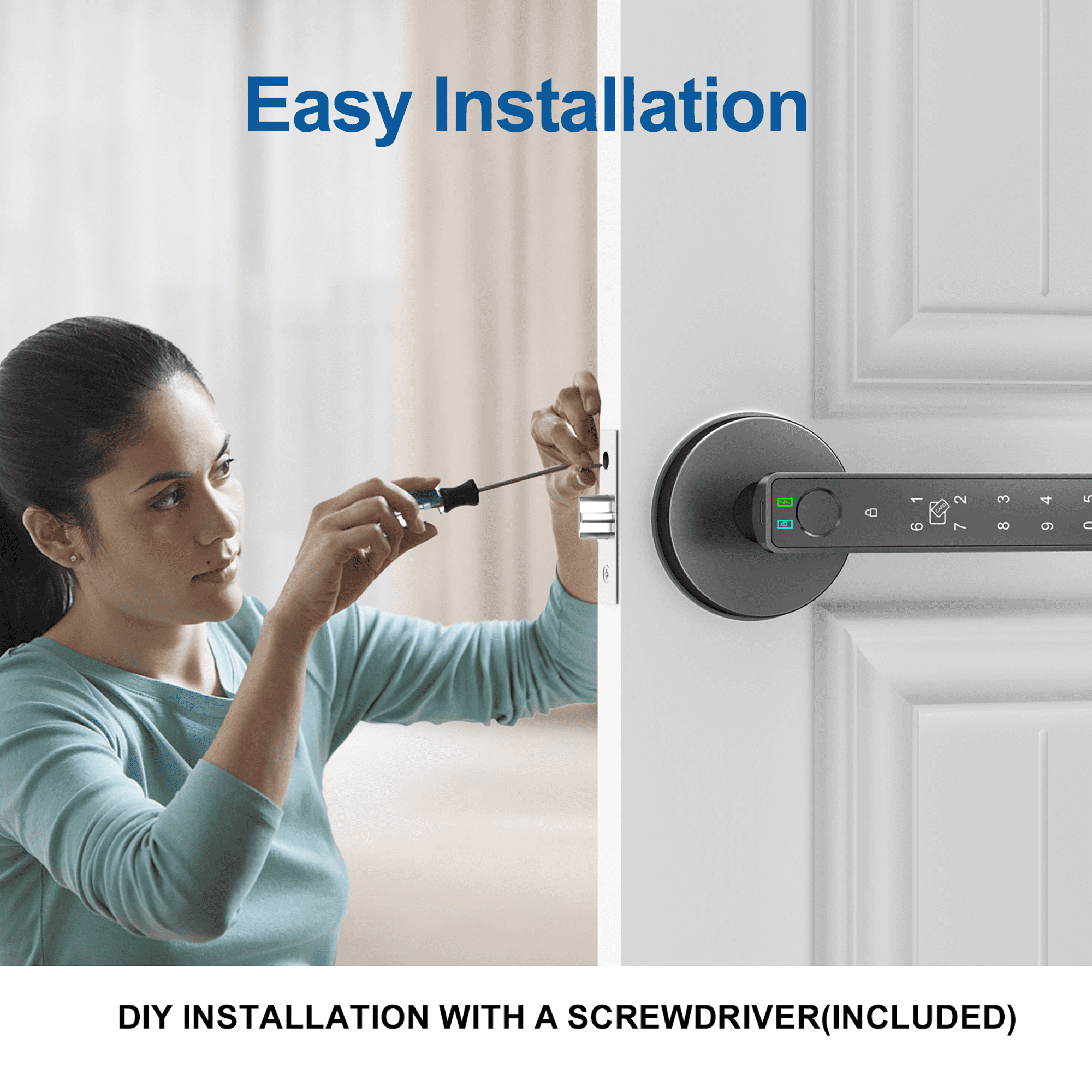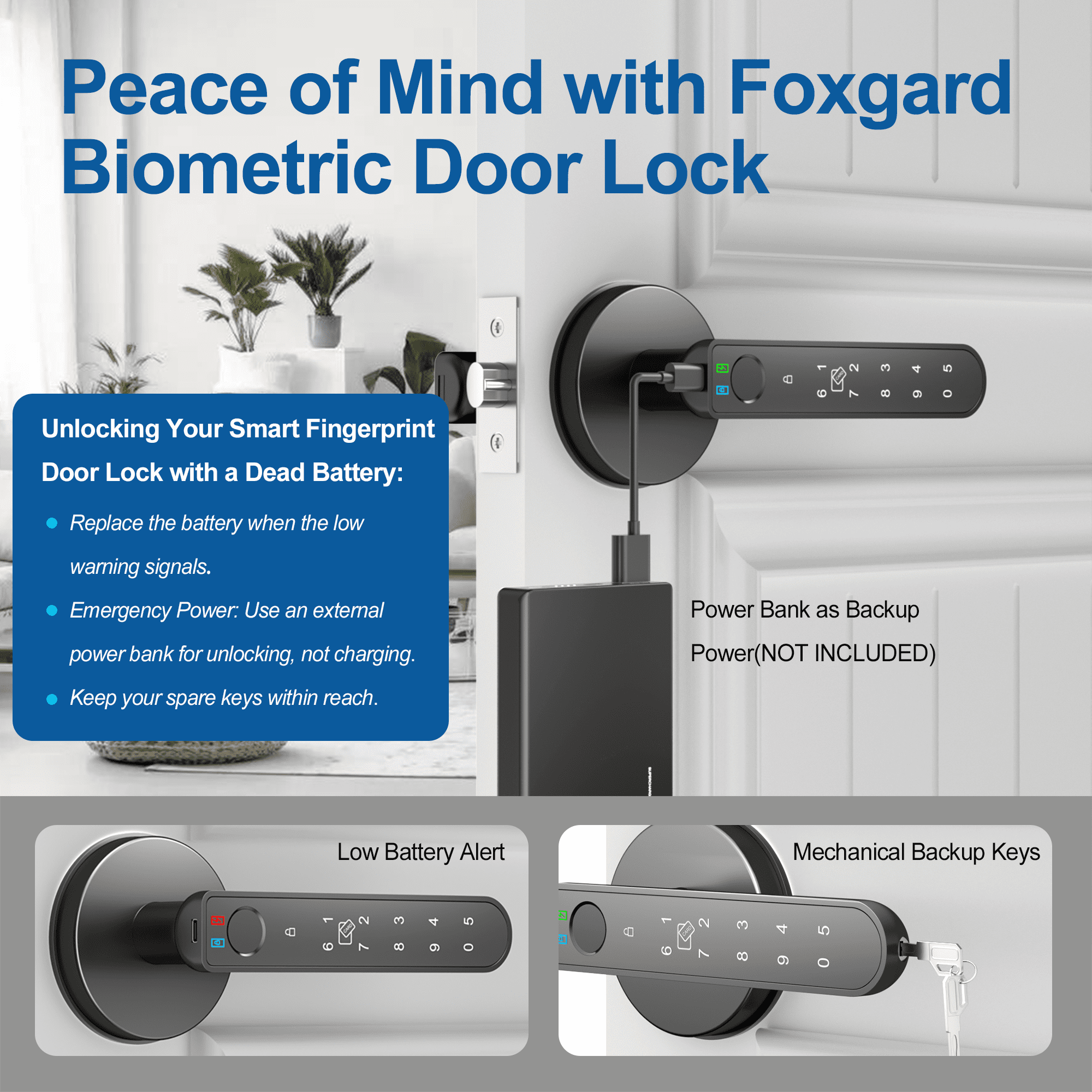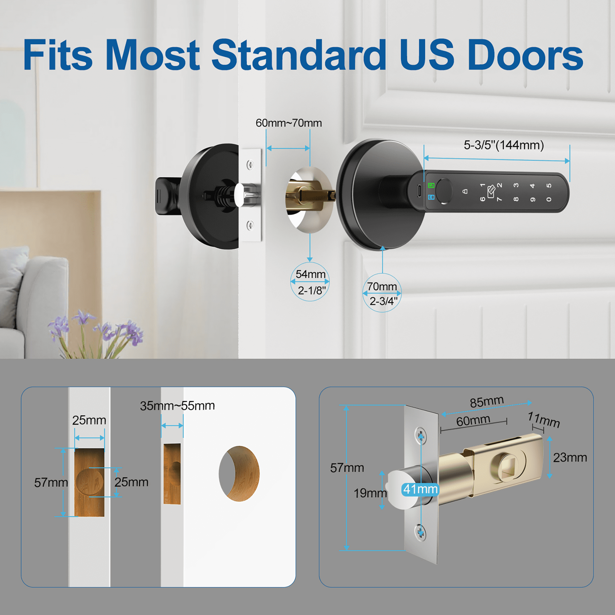 【APP Control for All】:Foxgard fingerprint door lock supports APP full control, including APP unlock, user management, fingerprint add or remove. Bring you a much more convenient and smarter life. 【5 Ways to Unlock】:Advanced 5-in-1 Biometric Door Lock. APP Unlock, Fingerprint Unlock, Card Unlock, Code Unlock and Backup Key (Please put at least 1 key in the available place in case of emergency such as the battery runs out). 【Upgraded Fingerprint Sensor】:The smart door knob is equipped with an upgraded 360° fingerprint reader with 100 fingerprints and recognition accuracy rate of up to 98.5%, and recognizes your fingerprint within 0.3 second. 【DIY installation】:Fits most standard single-cylinder US doors. Door thickness: between1-3/8″ (35mm) to 2-3/16″(55mm), adjustable latch 2-3/8″(60mm) or 2-3/4″(70mm). Please check your door size before purchase. 【Buy with Confidence】:We not only provide detailed installation guide and clear user instruction but also 12 months warranty and free life-time technical support. If you have any questions, please feel free to contact Foxgard customer service