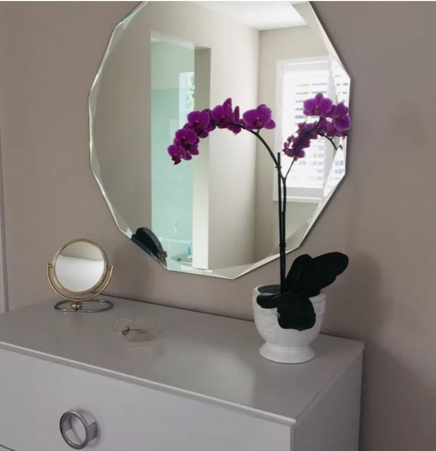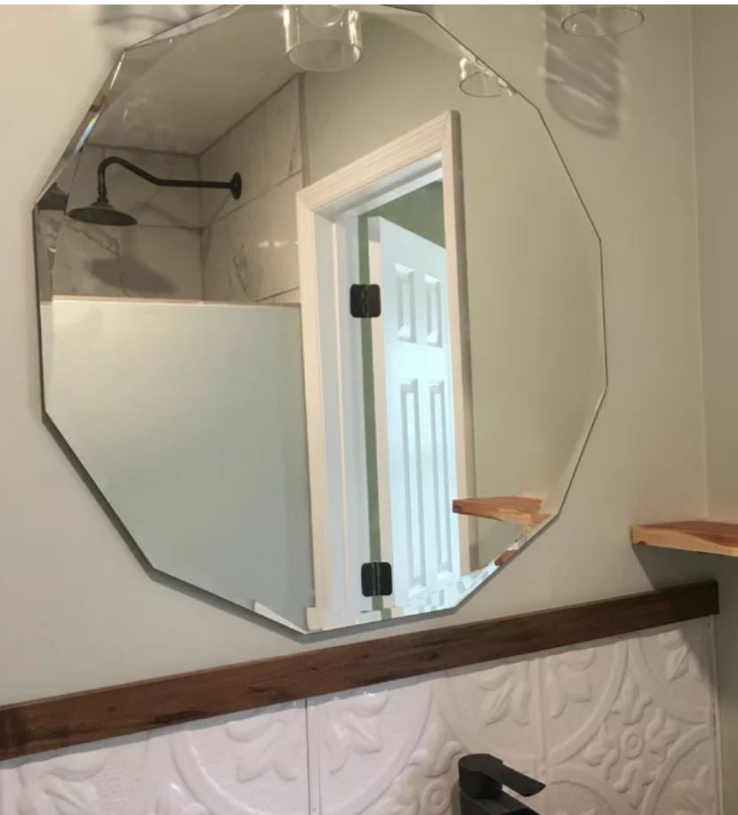This mirror is made using real silver, not aluminum. Silver mirrors last longer and provide a warmer reflection. Distortion free. We use high quality glass so you wont get that funhouse effect that is common in inferrior cheap mirrors The invisible mounting hardware is designed to keep your mirror secure and keeps the hardware out of sight Mounting hardware included, comes ready to hang. Crafted of thick, strong 3/16 float glass Unique double bevel, extremely rare cut Great for Bathroom mirror, Vanity mirror, Living Room mirror or Bedroom mirror