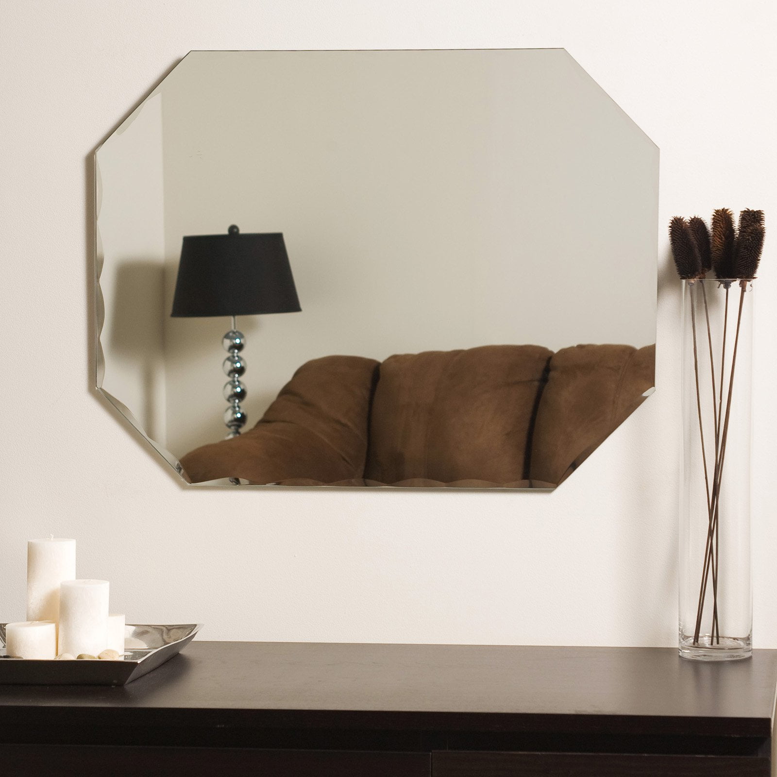 Mirror mirror on the wall this is the most unique of them all. This octagon shaped frameless wall mirror has scallop beveled edges perfect for your hallway, living room or bathroom.